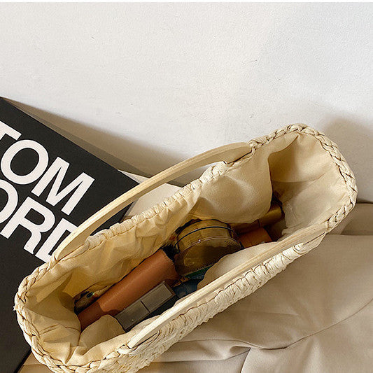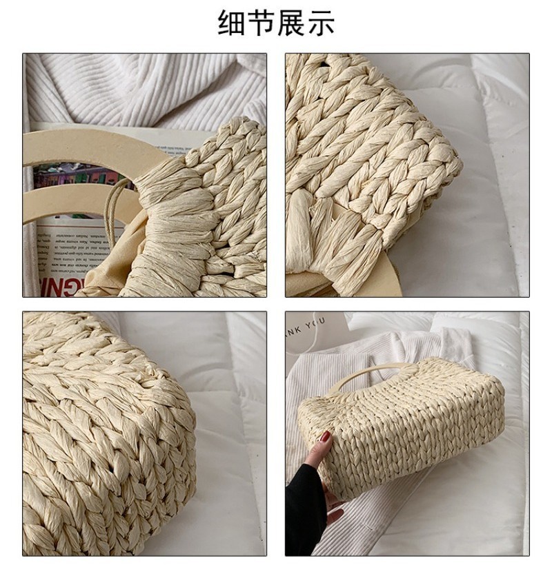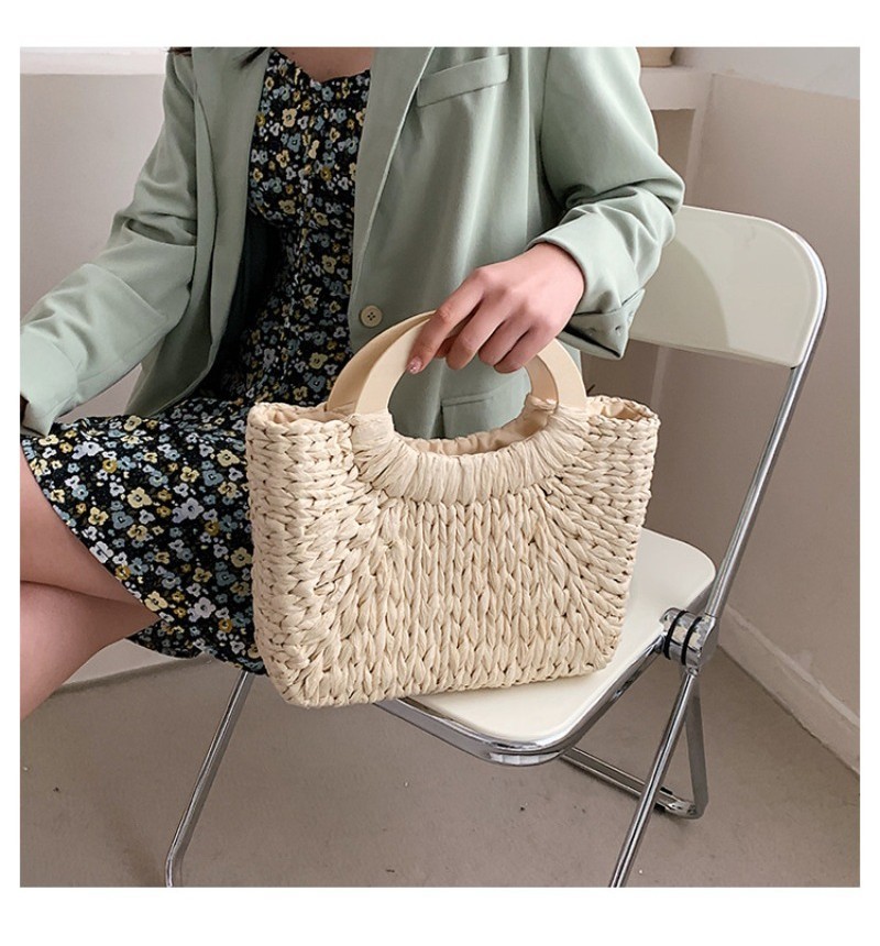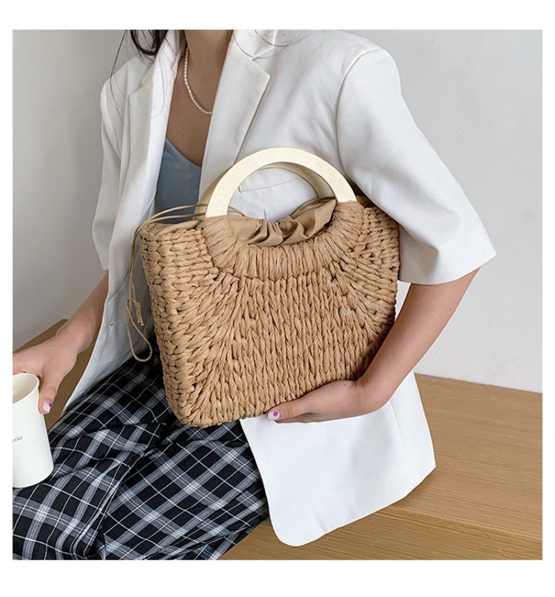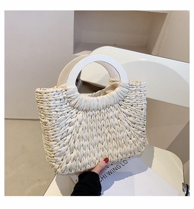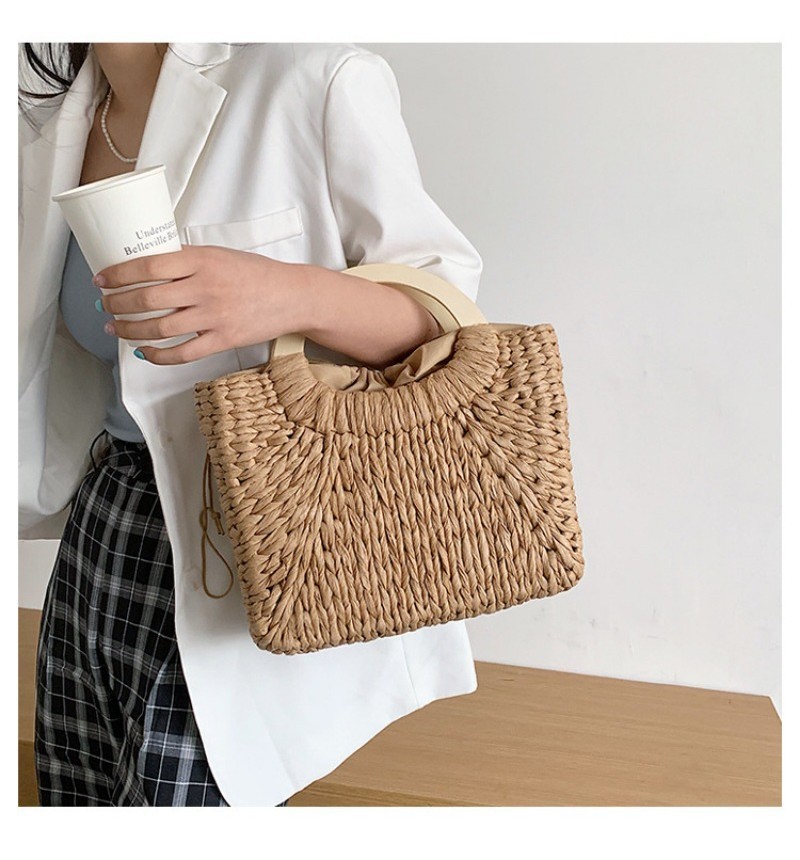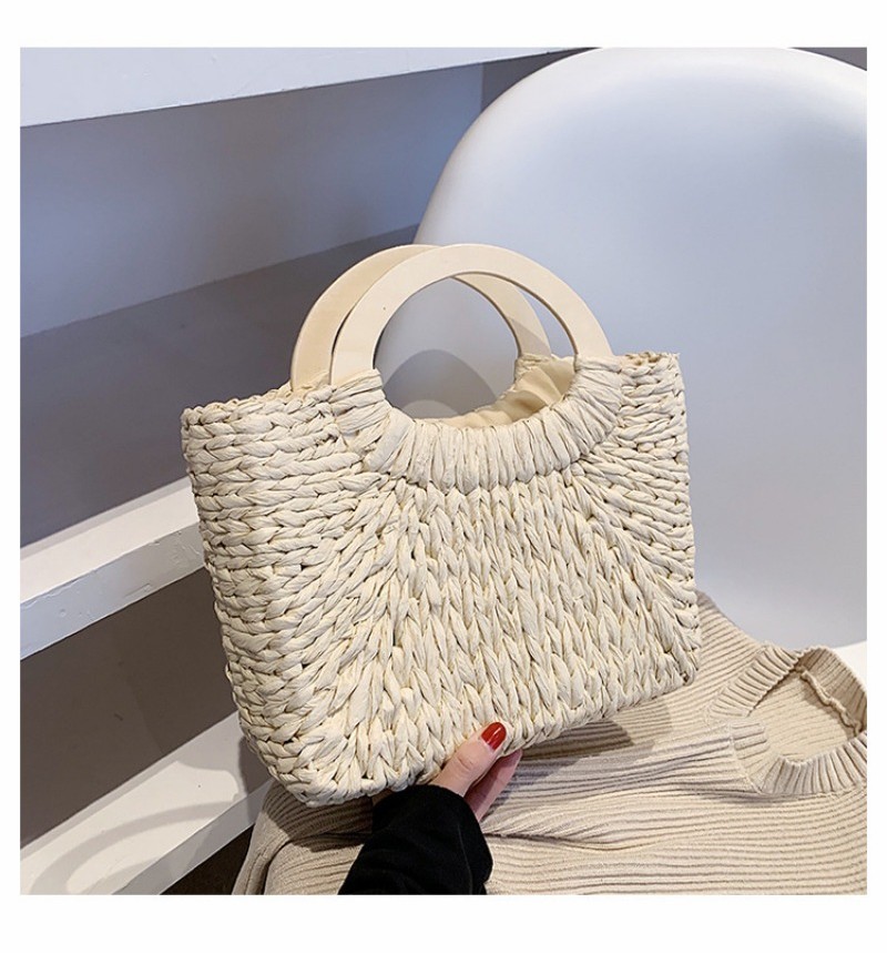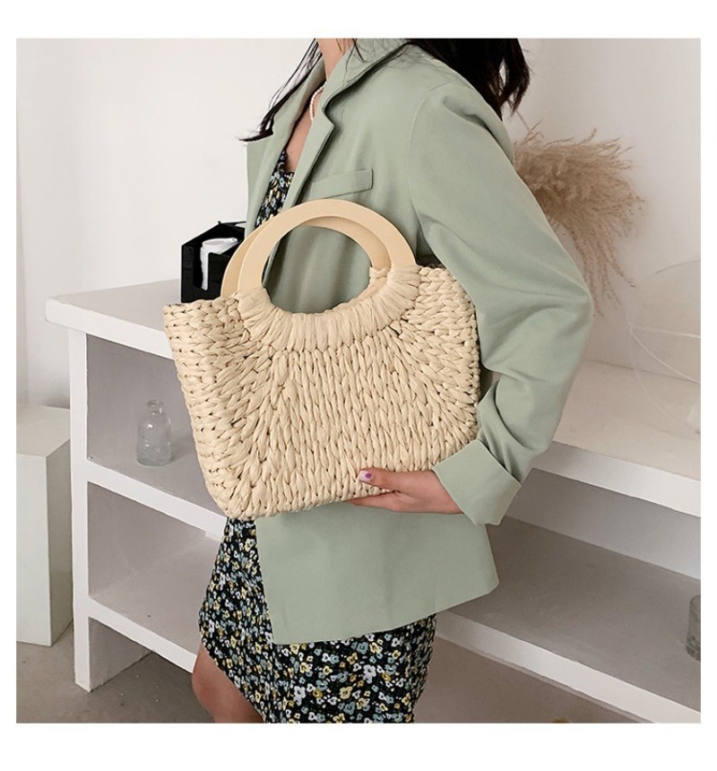 Ielgy Hand-Woven Bag Summer Beach Bag Fashion Retro Portable Straw Bag