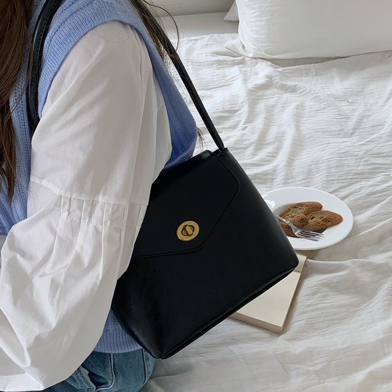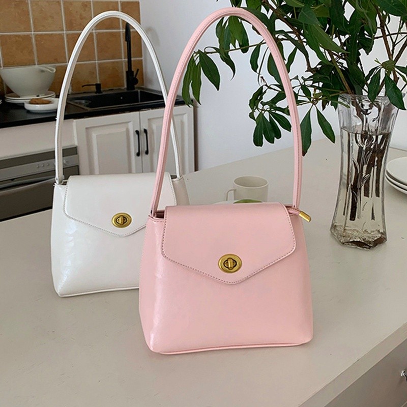 IELGY handbag female korean niche pink sweet all-match armpit texture bucket bag