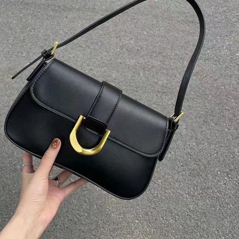 IELGY handbag women's high-end texture baguette retro horseshoe buckle fashion temperament all-match shoulder bag