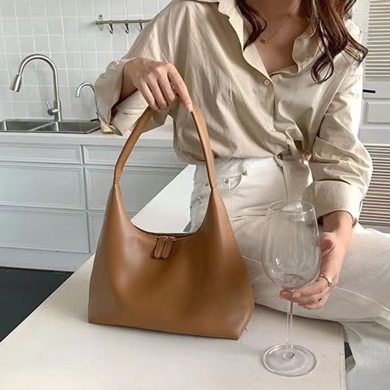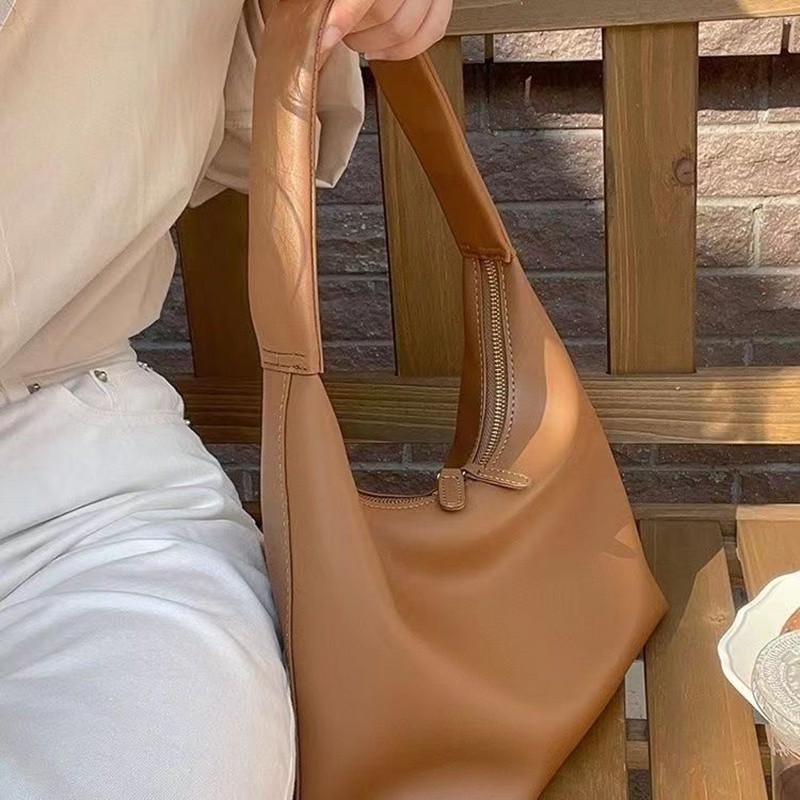 IELGY handbag women's milk tea color gentle wind Korean style simple and versatile soft leather dumpling bag