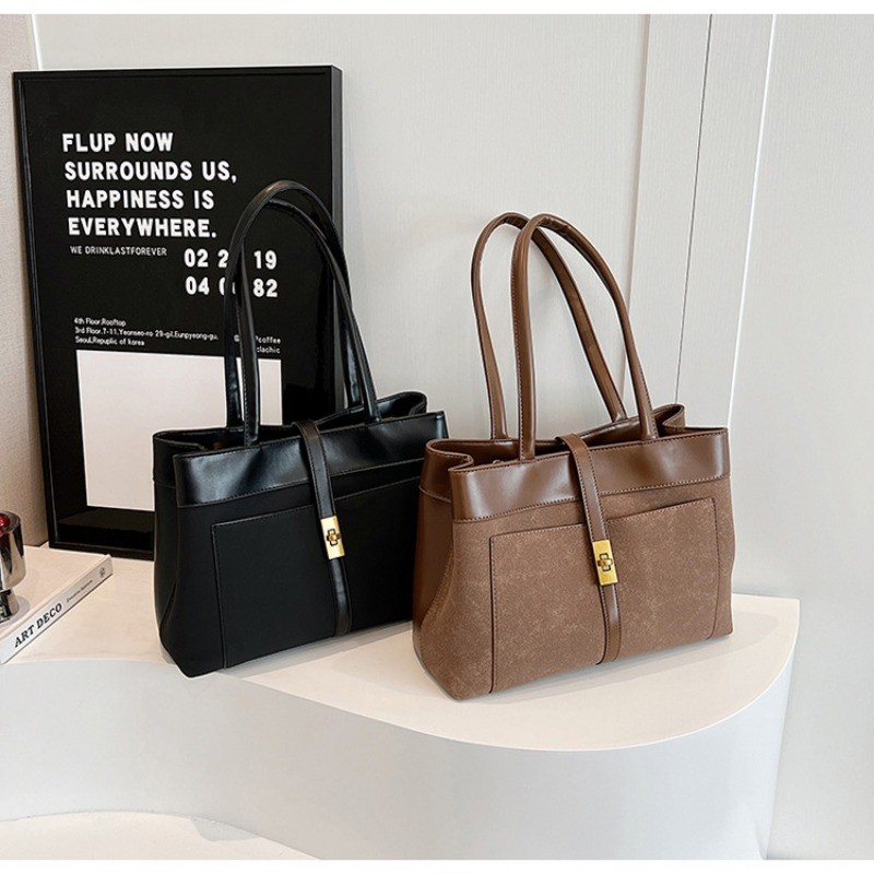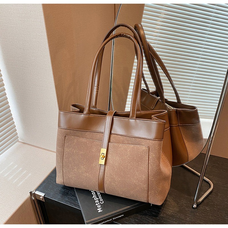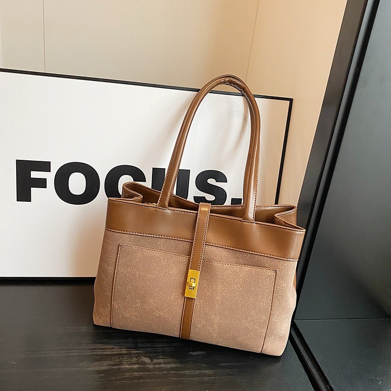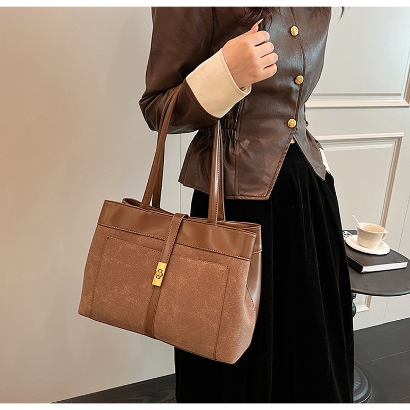 Ielgy High-End Feeling Large-Capacity Commuter Bag Fashion Portable Tote Bag All-Match Retro Shoulder