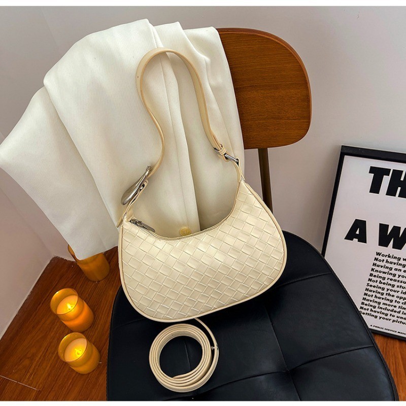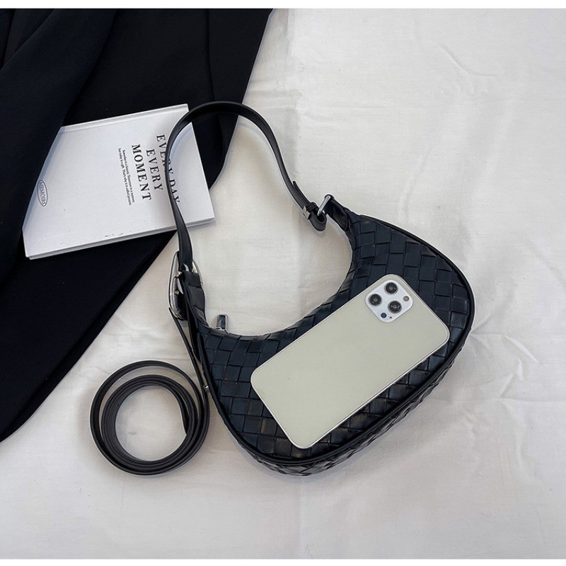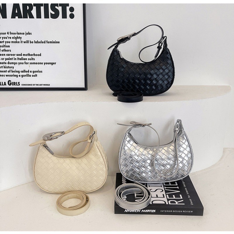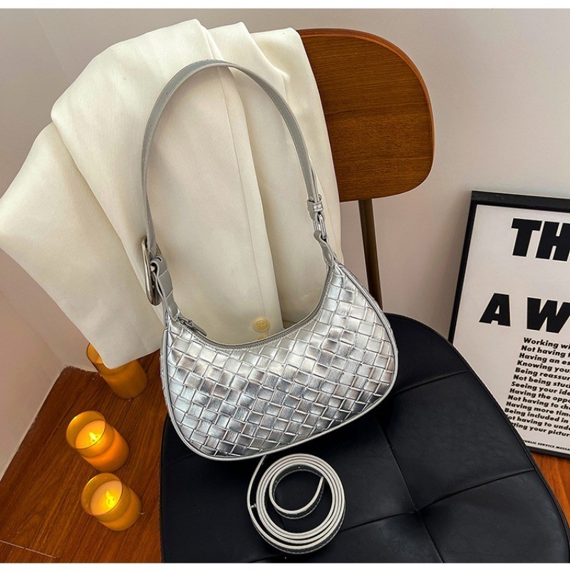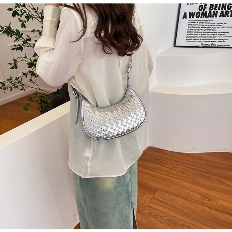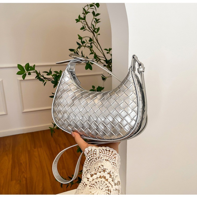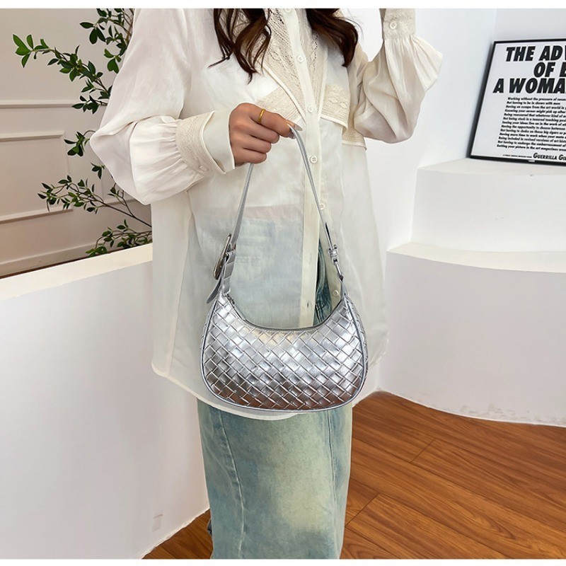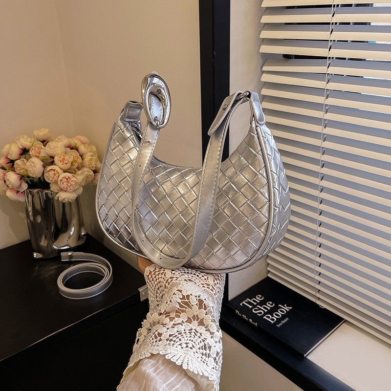 Ielgy High-End Feeling Silver Underarm Bag Korean Version Fashion Trendy Dumpling Bag Niche Woven Large-Capacity Simple Shoulder Bag