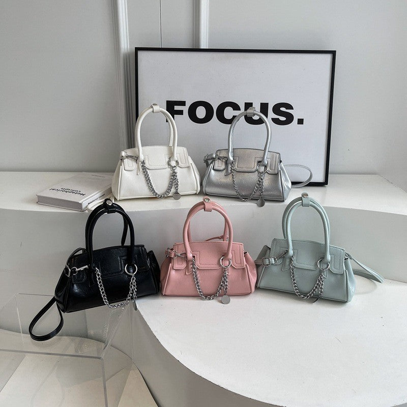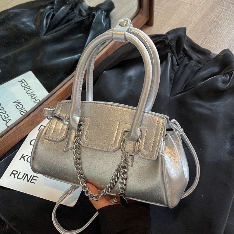 Ielgy High-End Niche Design Silver Handbag Crossbody Fashion All-Match Handbag