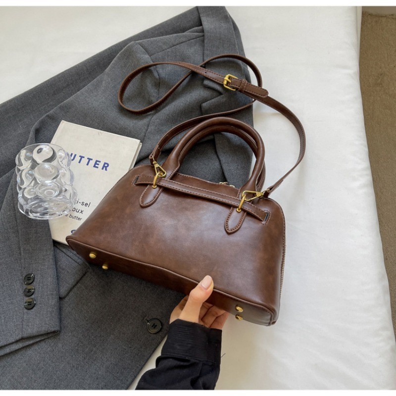 Ielgy High-End Retro Brown Fashionable All-Match Women's Cross-Body Bag Portable Shell Bag