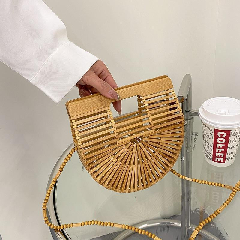 IELGY Hollow Fashion Messenger Bag Women's Bamboo Half Round Beach