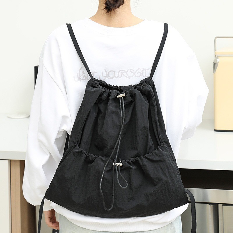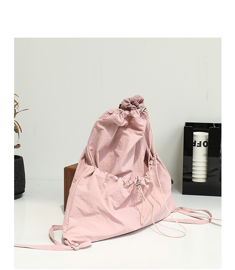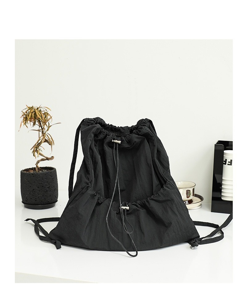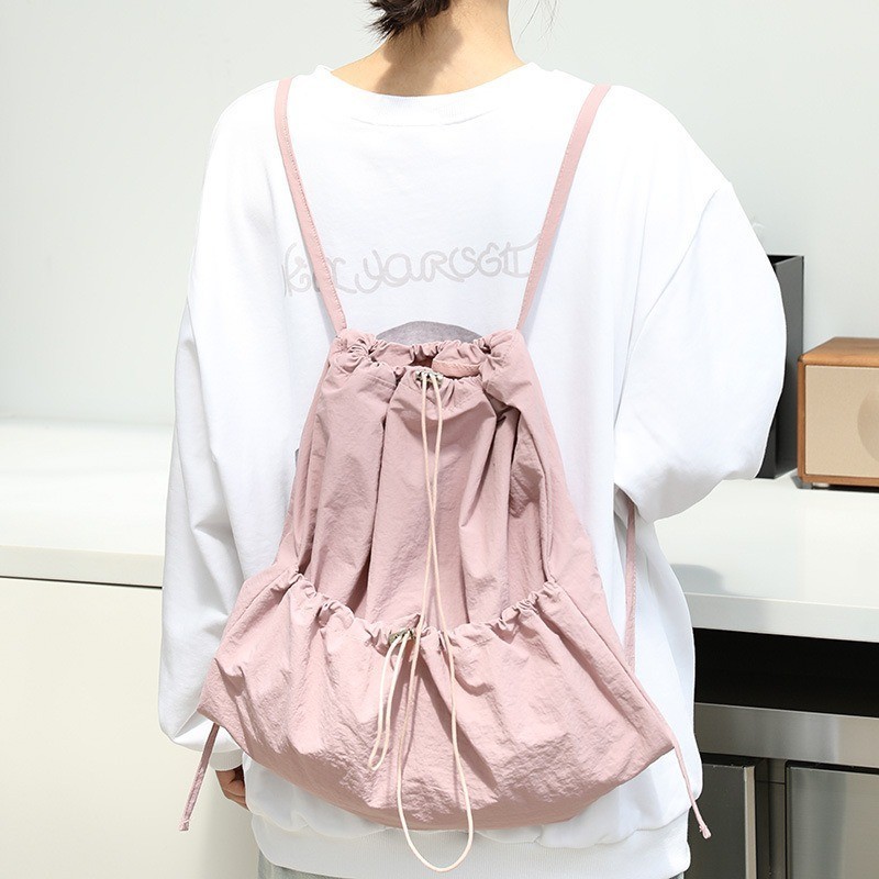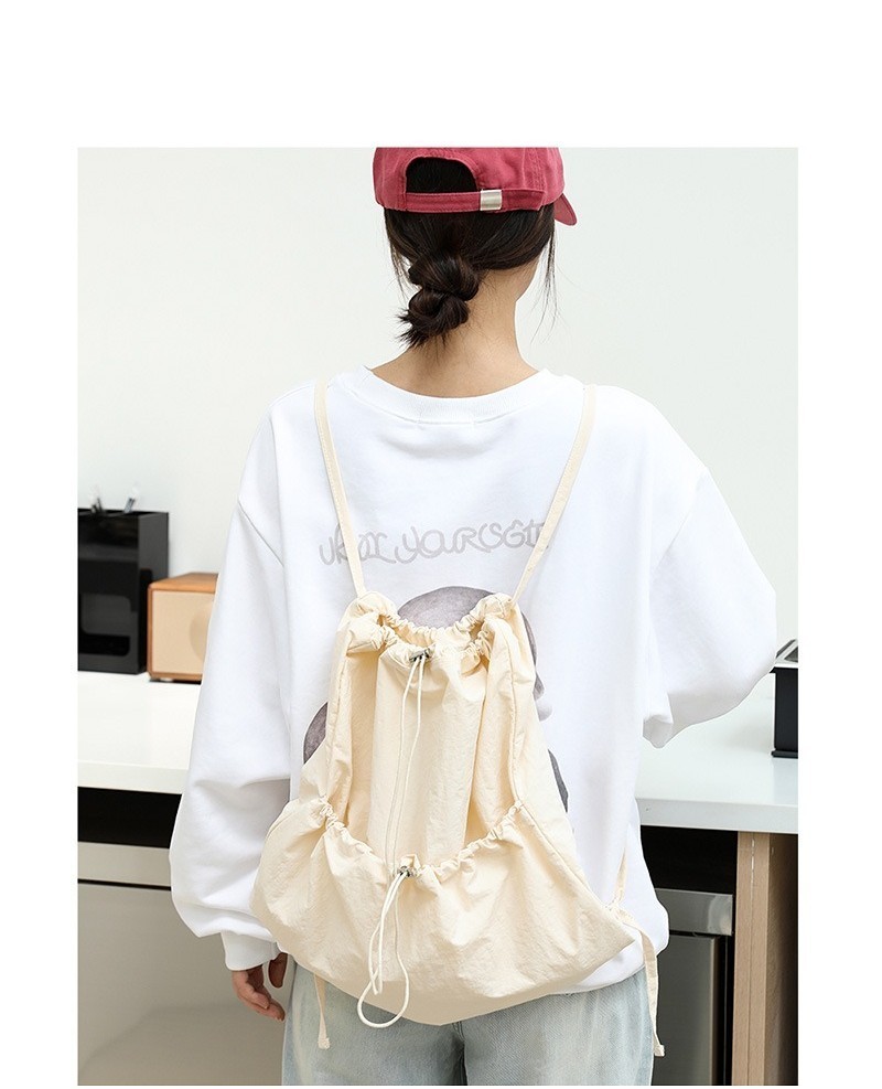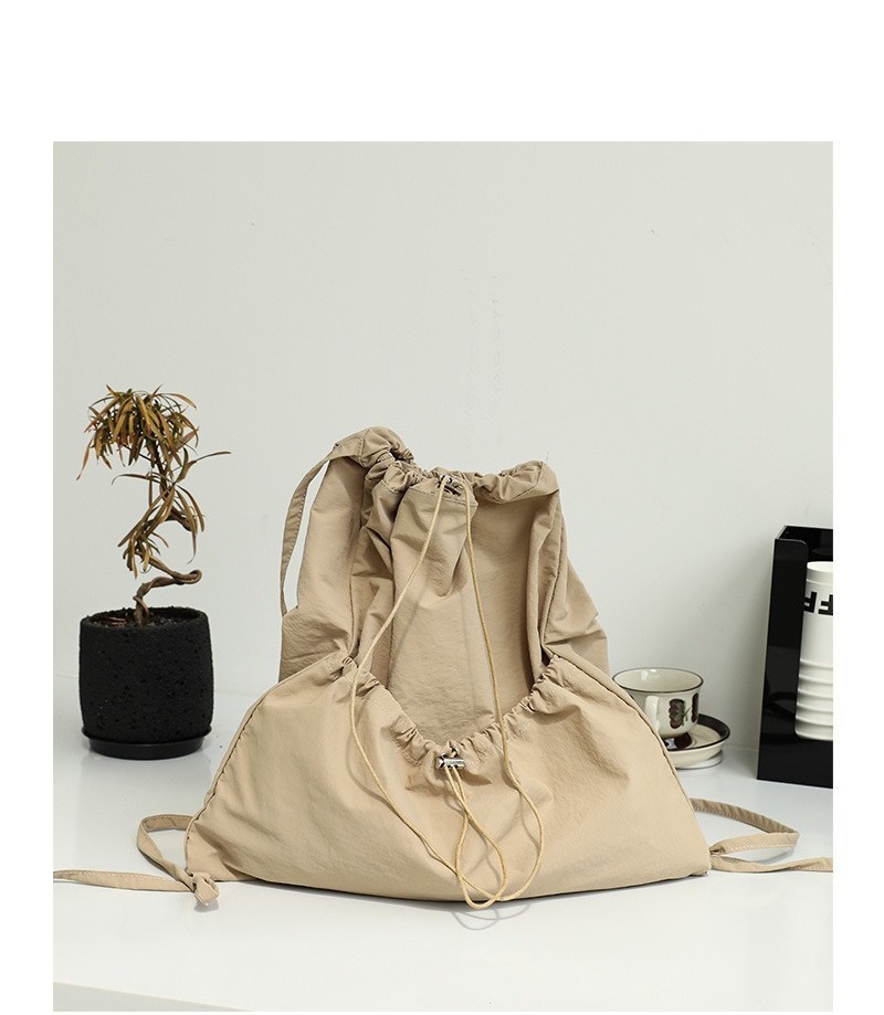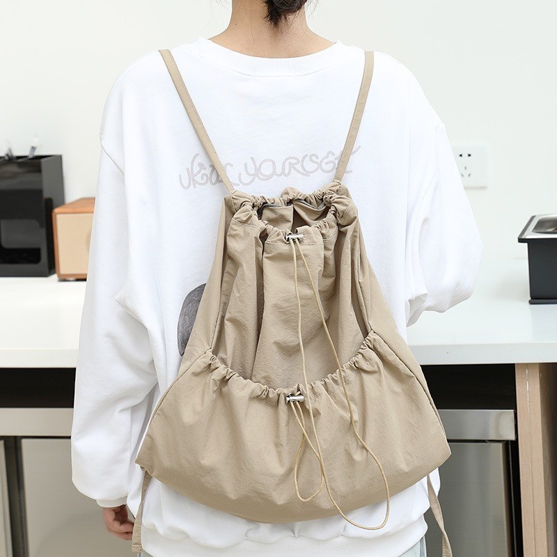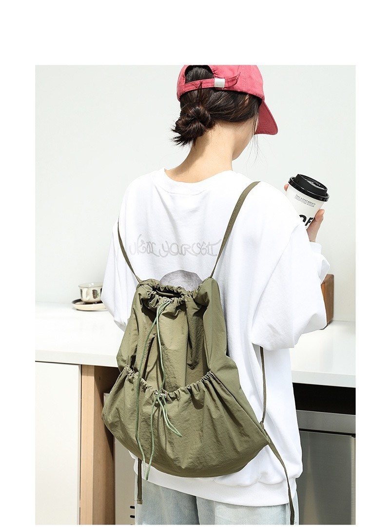 Ielgy Japanese Casual Art Canvas Backpack Fashion Drawstring Pleated School Bag Nylon Large-Capacity Backpack Khaki