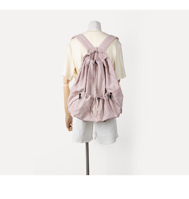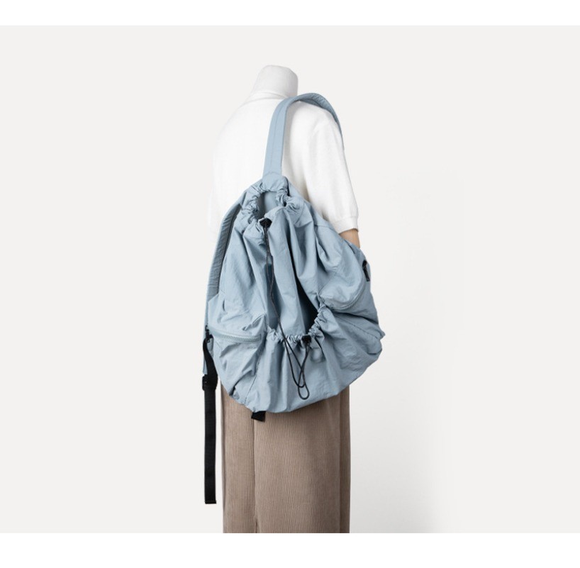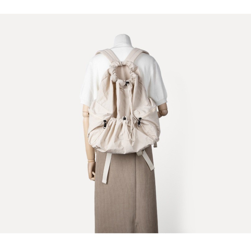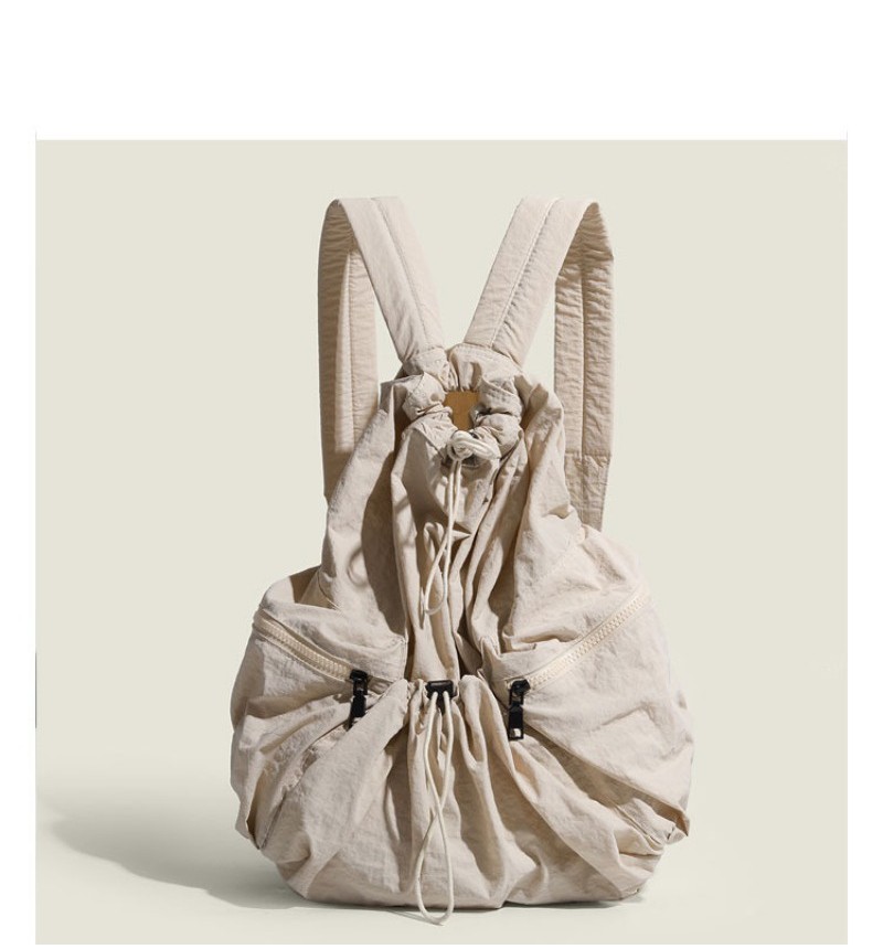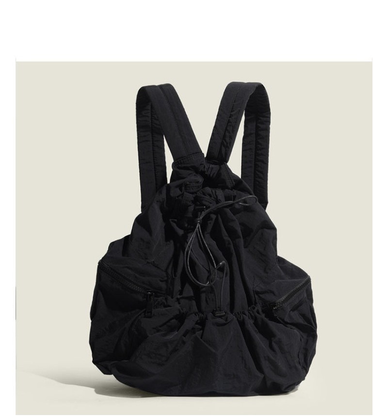 Ielgy Japanese Korean Drawstring Backpack Harajuku Style Large Capacity School Bag Casual All-Match Pleated Nylon Canvas Backpack