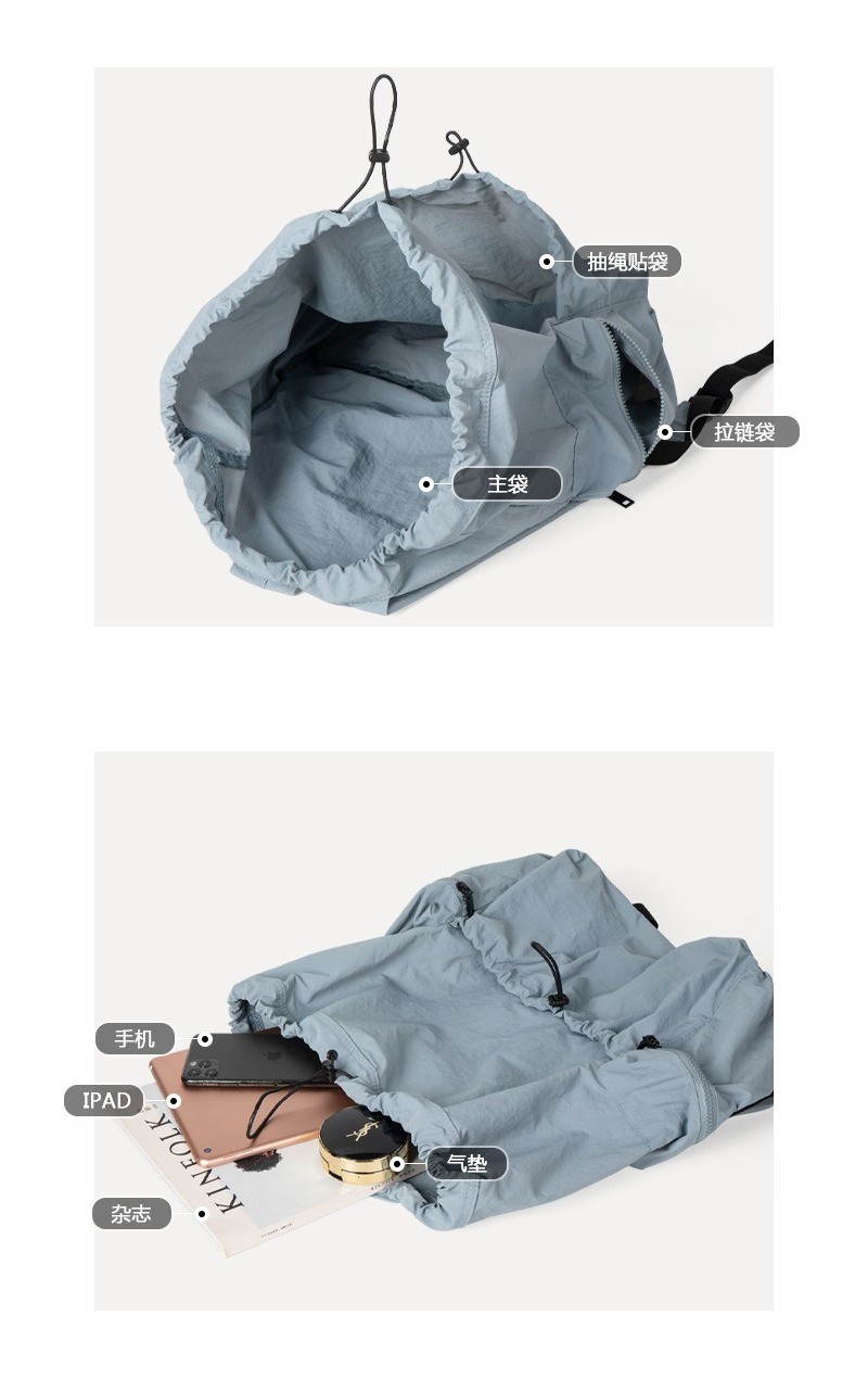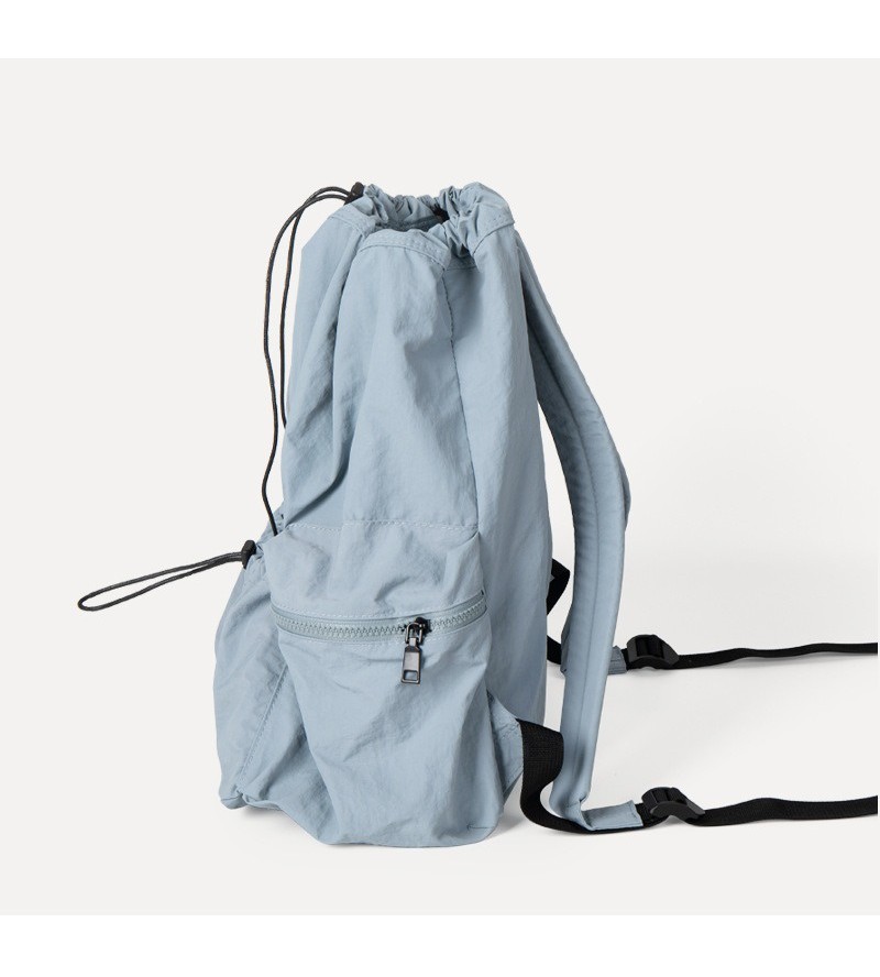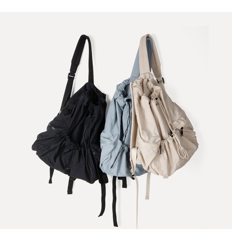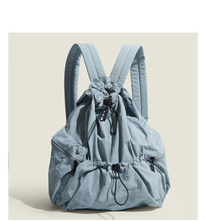 Ielgy Japanese Korean Drawstring Backpack Harajuku Style Large Capacity School Bag Casual All-Match Pleated Nylon Canvas Backpack