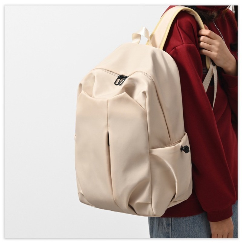 Ielgy Japanese Korean Simple Large-Capacity Solid Color Backpack University School Bag Campus Backpack