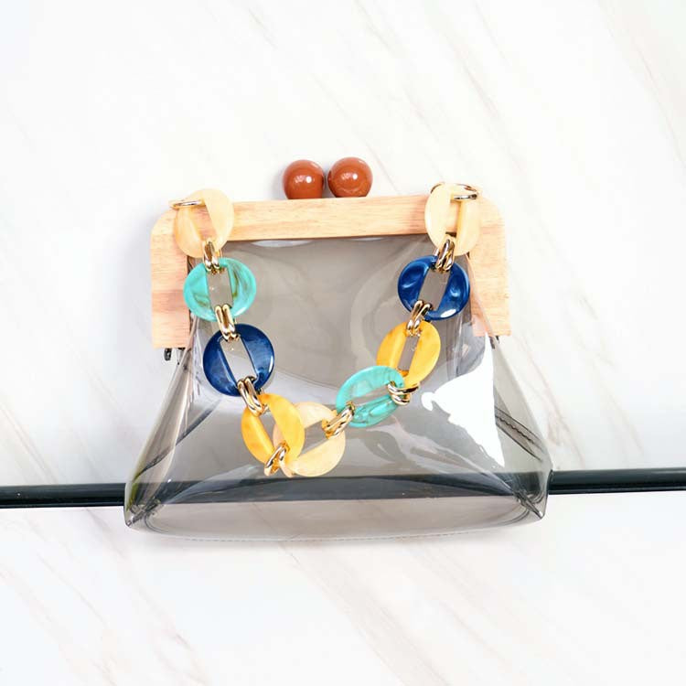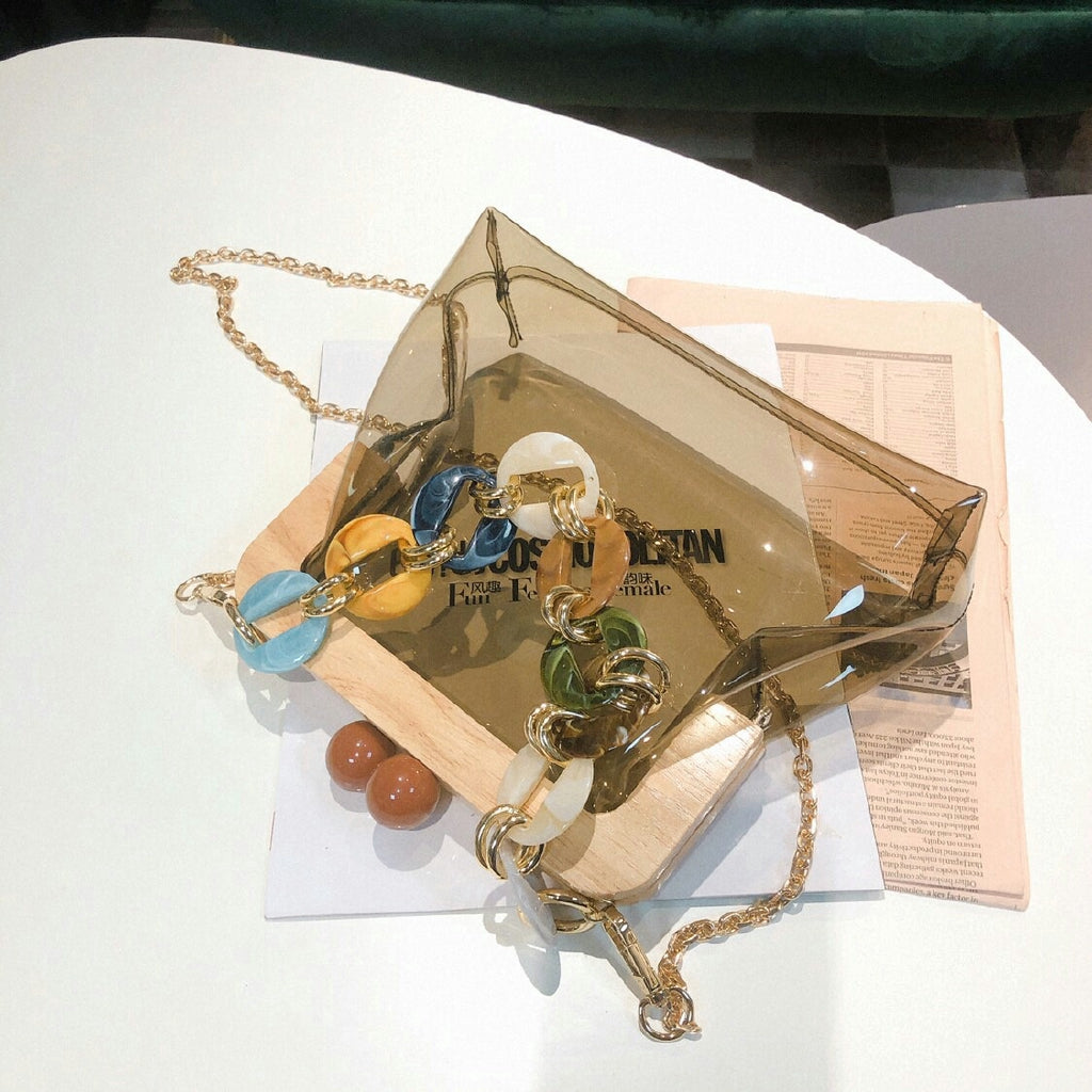 IELGY Korea Acrylic Wood Clip Transparent Jelly Pack Handbag Shoulder Messenger Bag