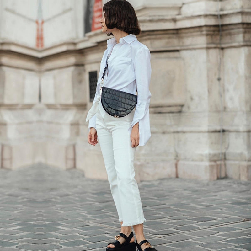 IELGY Korean crocodile pattern wide shoulder strap Messenger bag semicircle