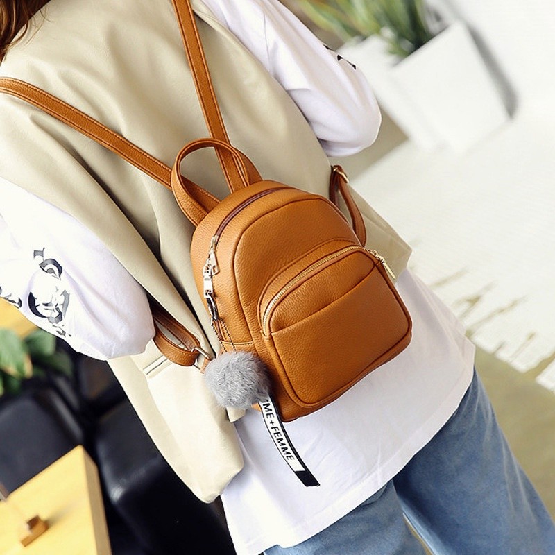 IELGY Korean Mini Backpack Versatile Solid Soft Leather Fashion Women's Backpack