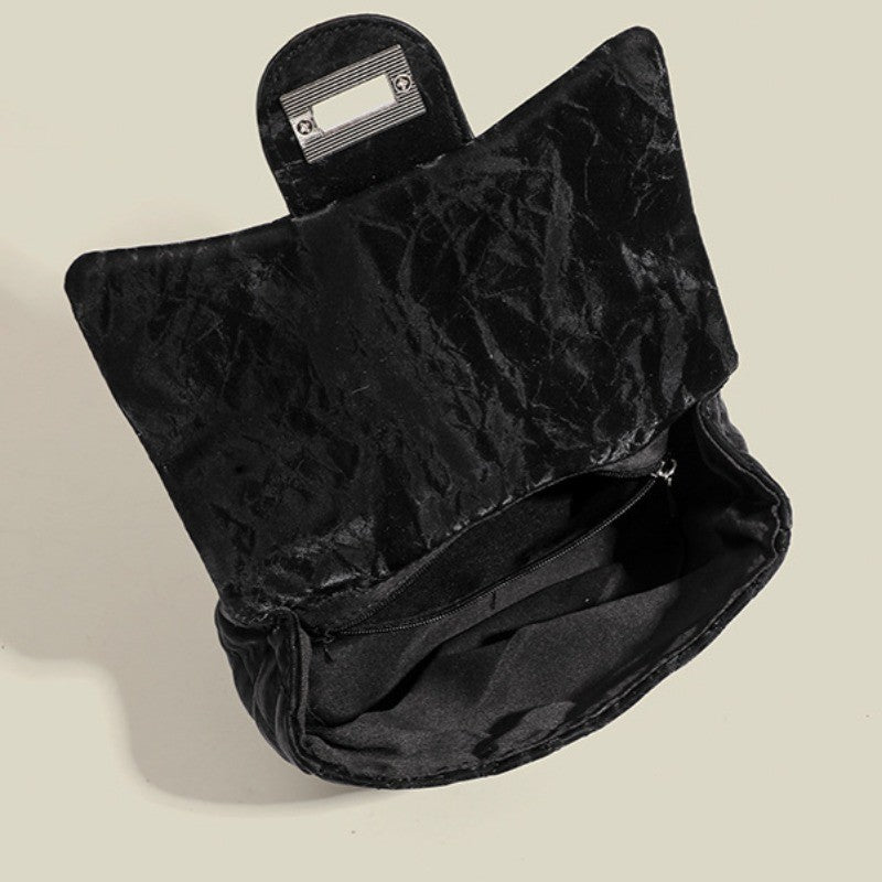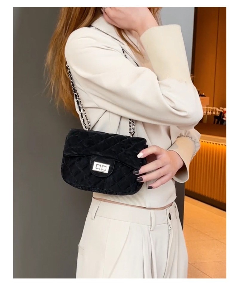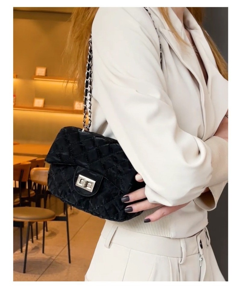 Ielgy Korean Style High-End Chain Small Square Bag Shoulder Crossbody Black Fashion Bag