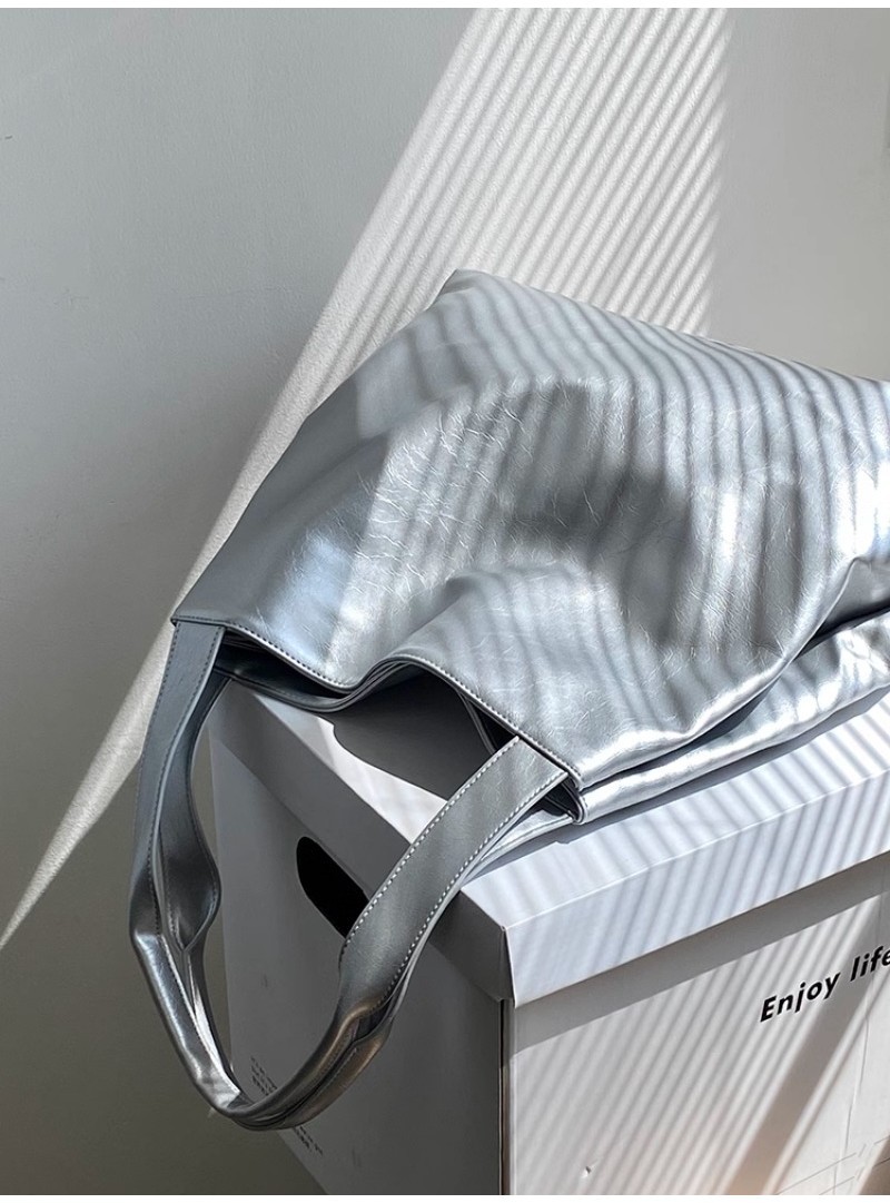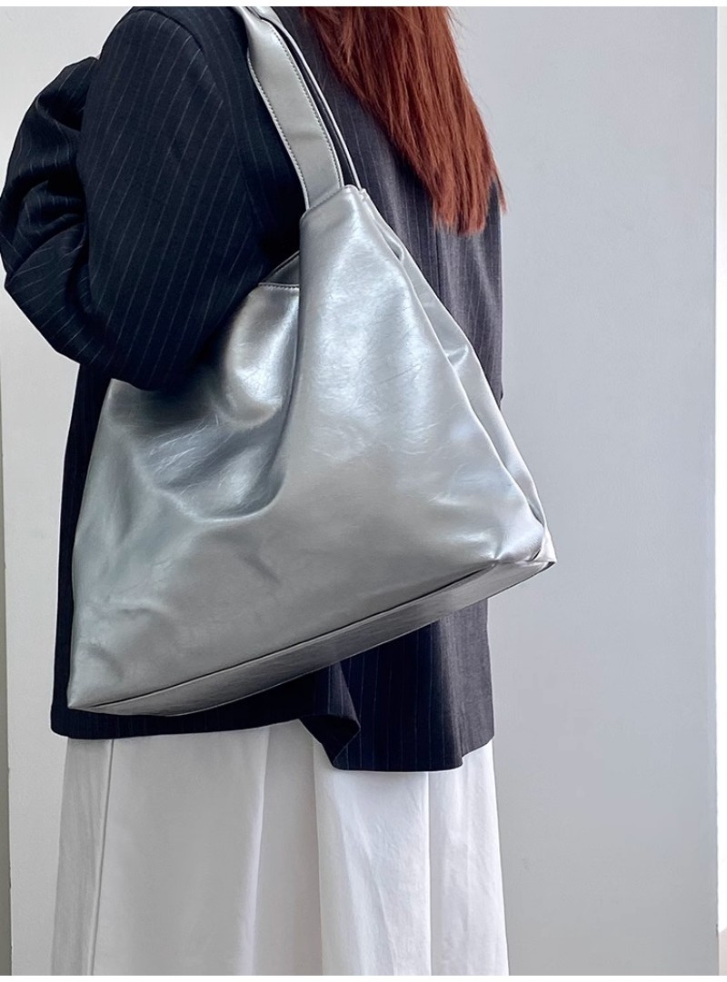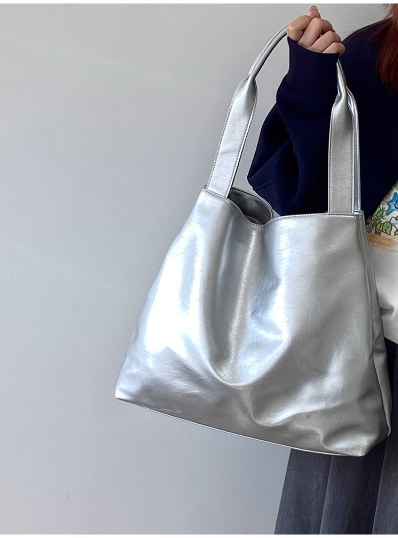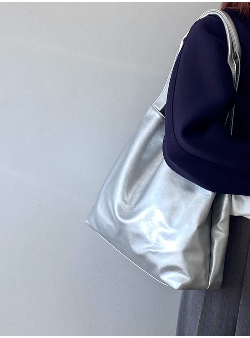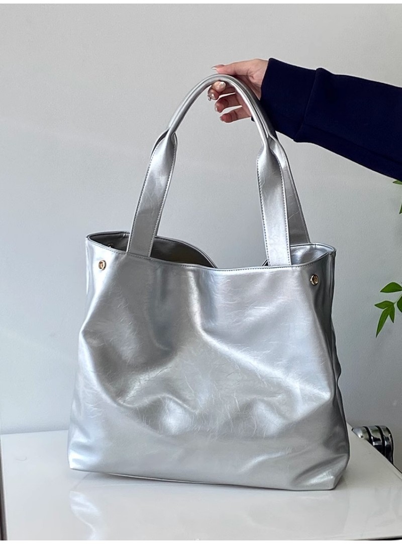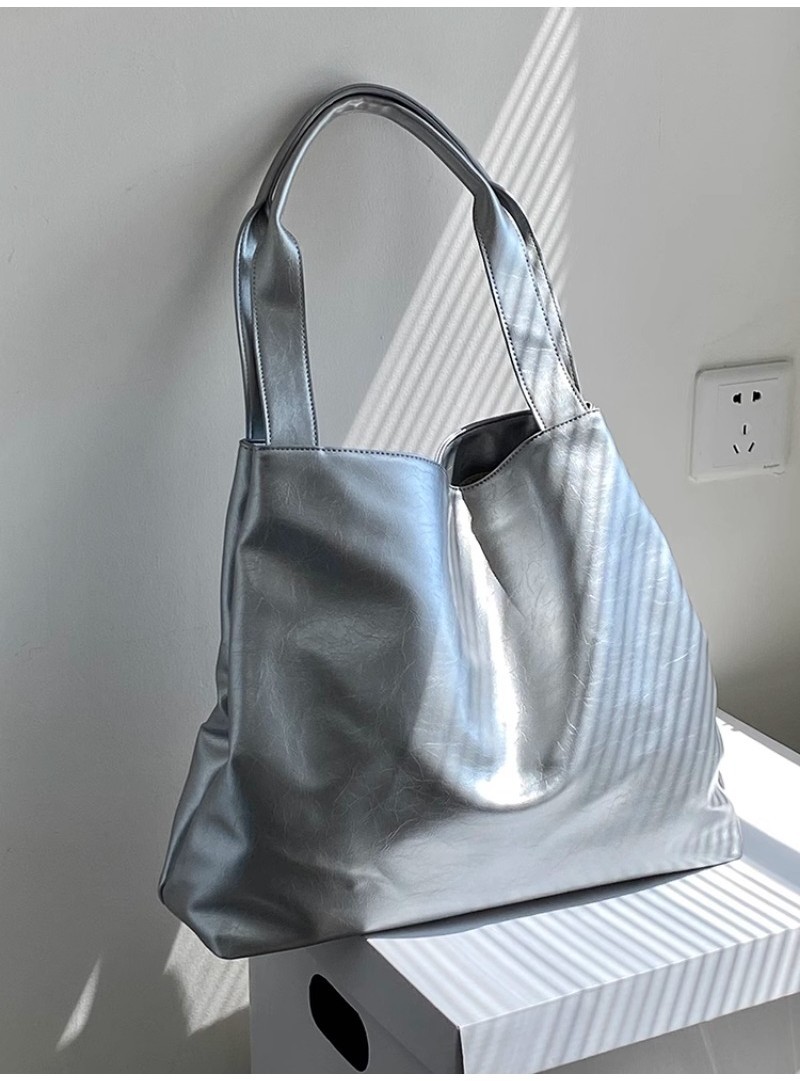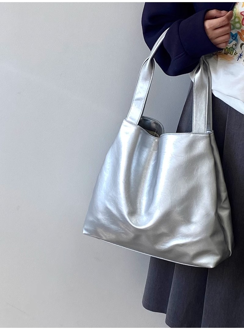 Ielgy Korean Style Silver Commuter Large Capacity Casual Tote Bag Shoulder