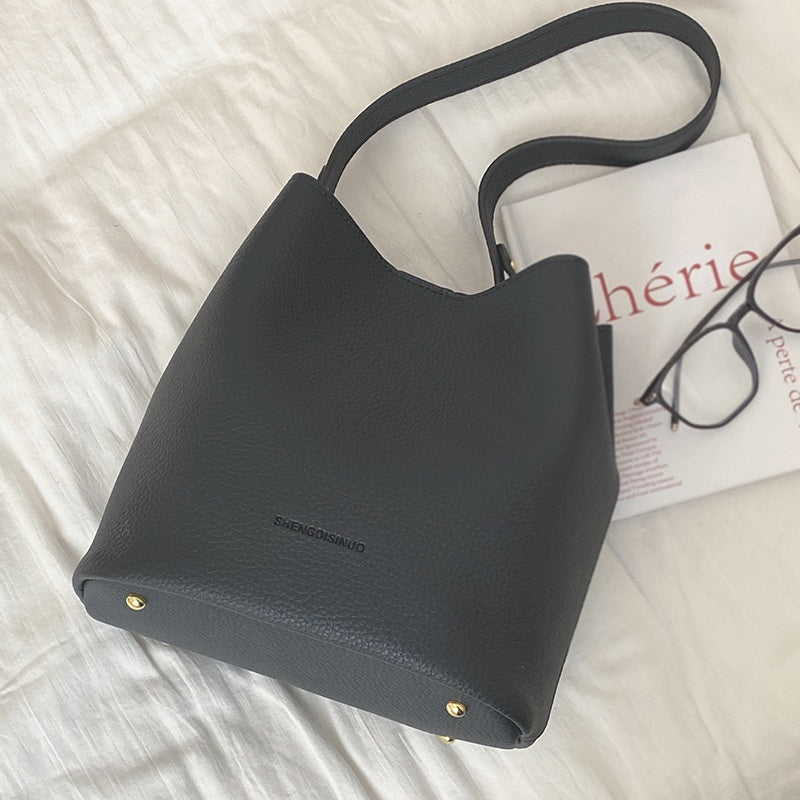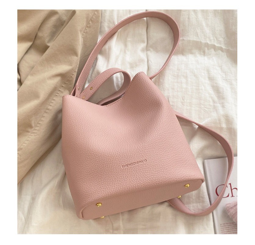 Ielgy Korean Version Fashion Sweet Pink Underarm Bucket Bag Large Capacity Shoulder Bag