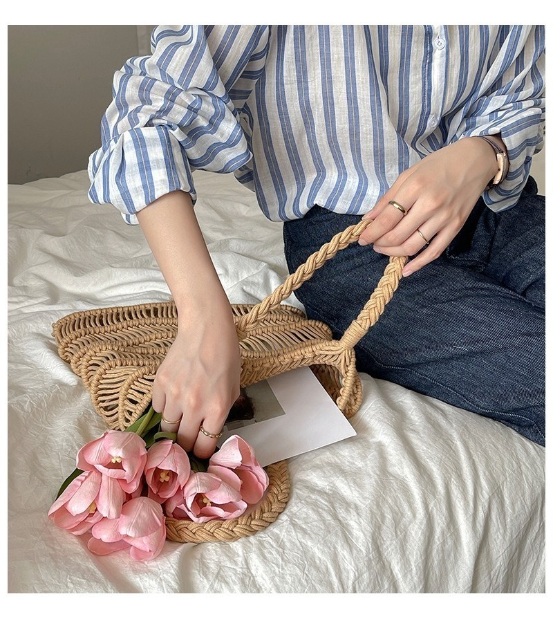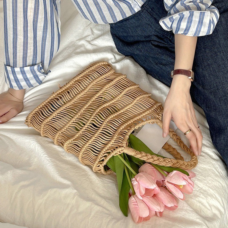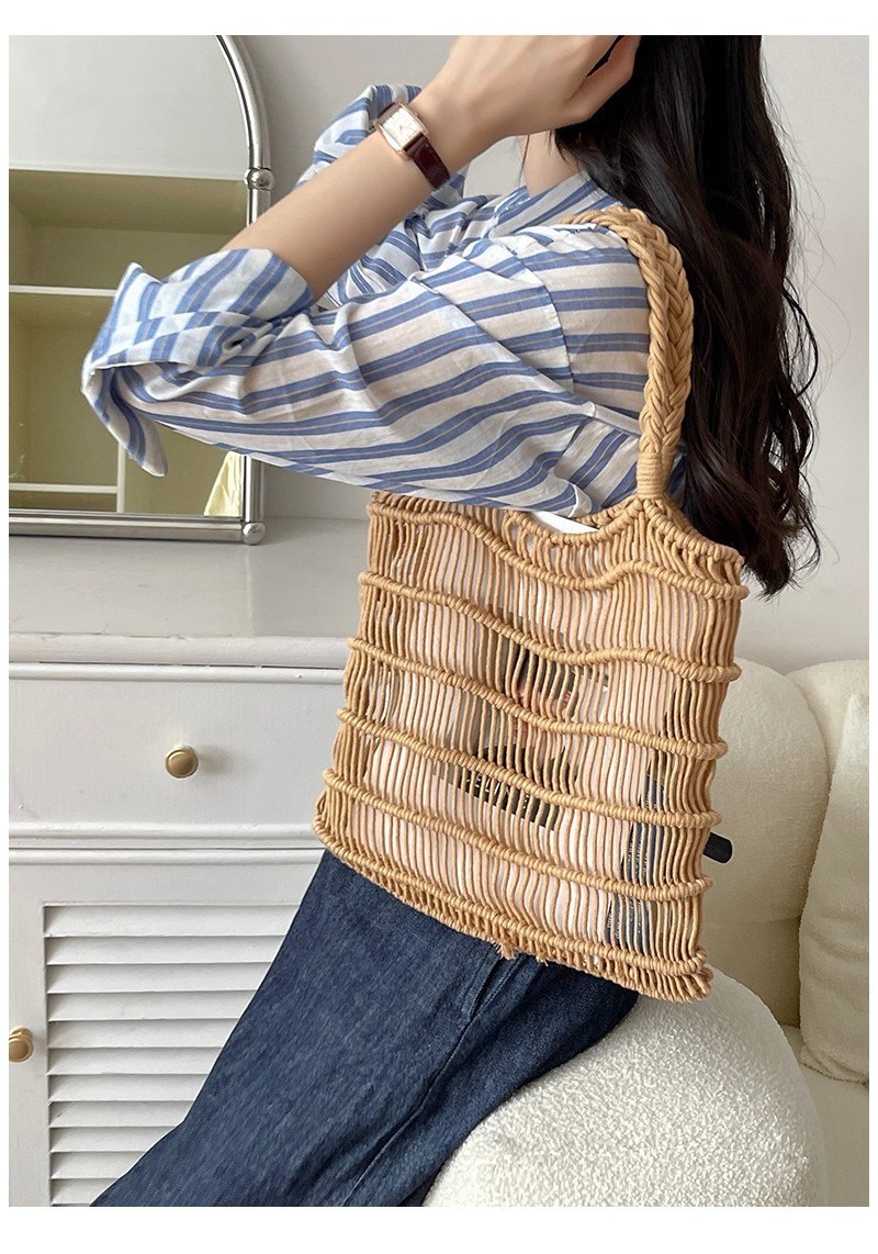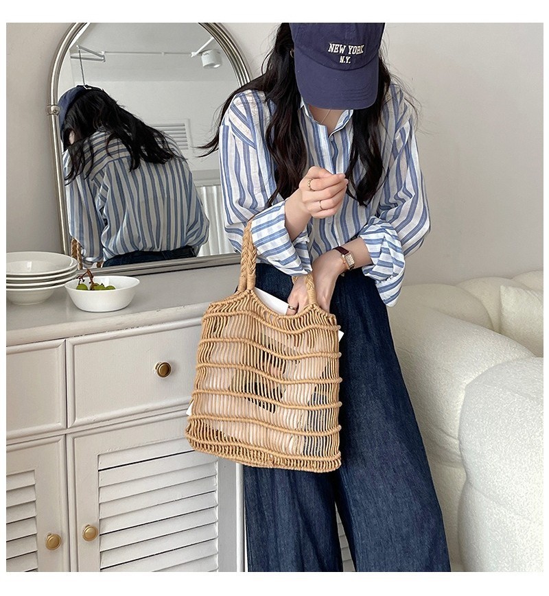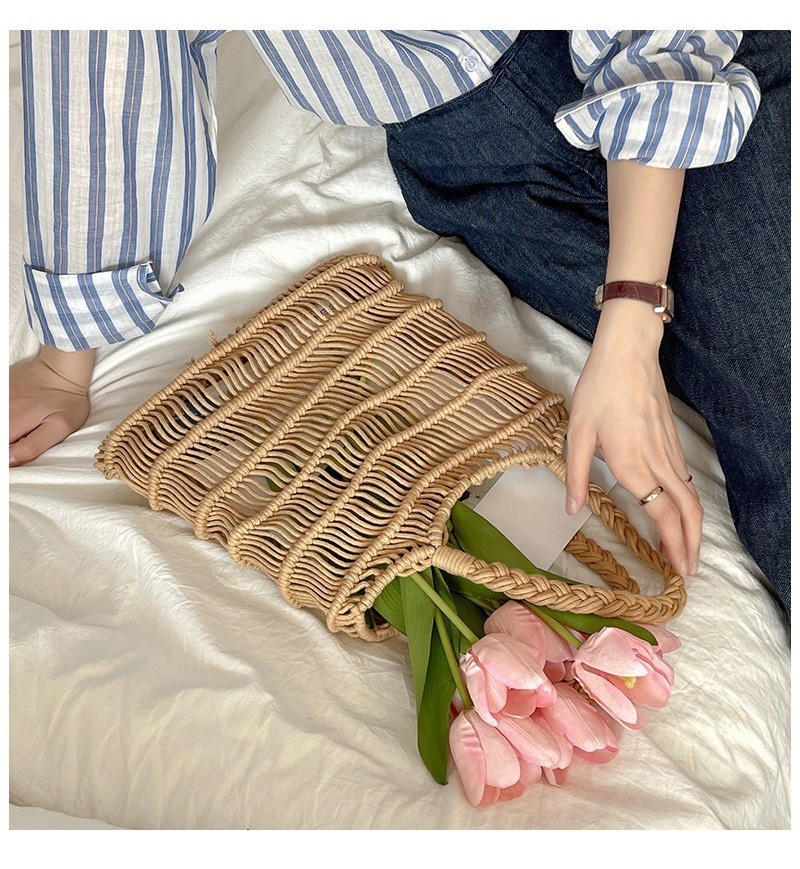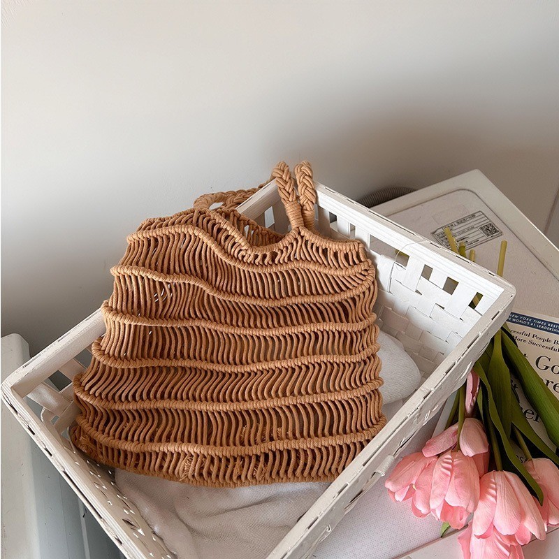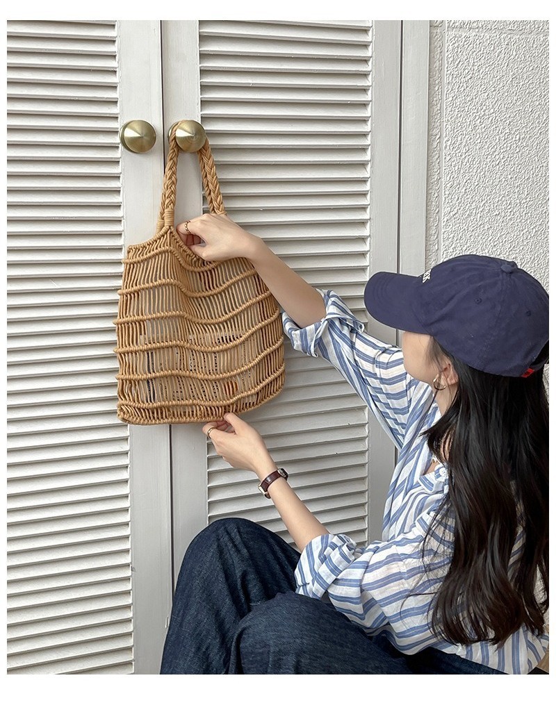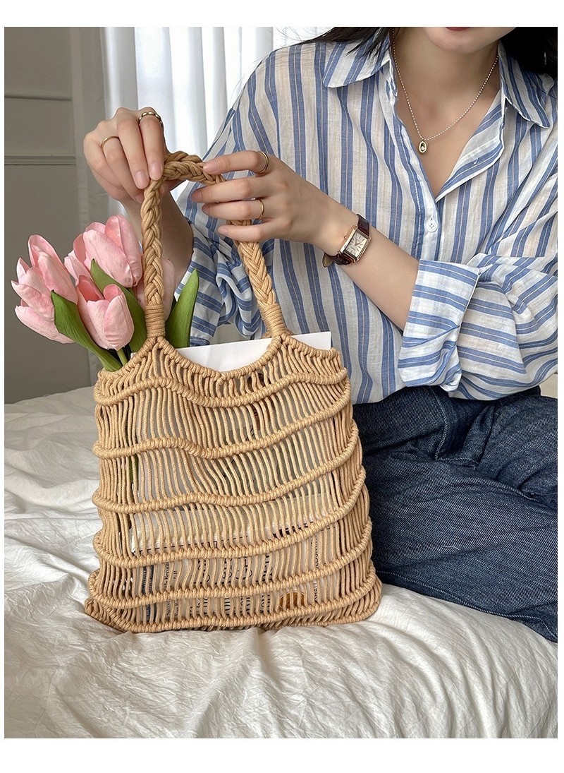 Ielgy Korean Version Retro Hollow One-Shoulder Cotton Thread Woven Bag Lazy Style Portable Straw Seaside Vacation Beach Bag