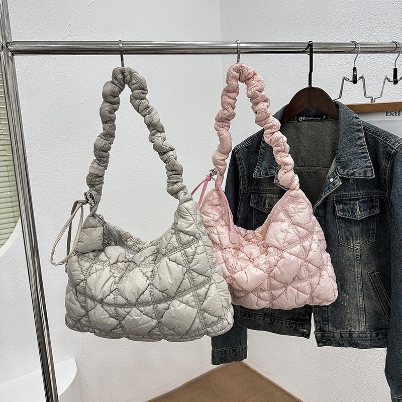 Ielgy Korean Version Stray Cloud Bag Puff Pleated Down Bag Shoulder Messenger Bag Portable Underarm Bag
