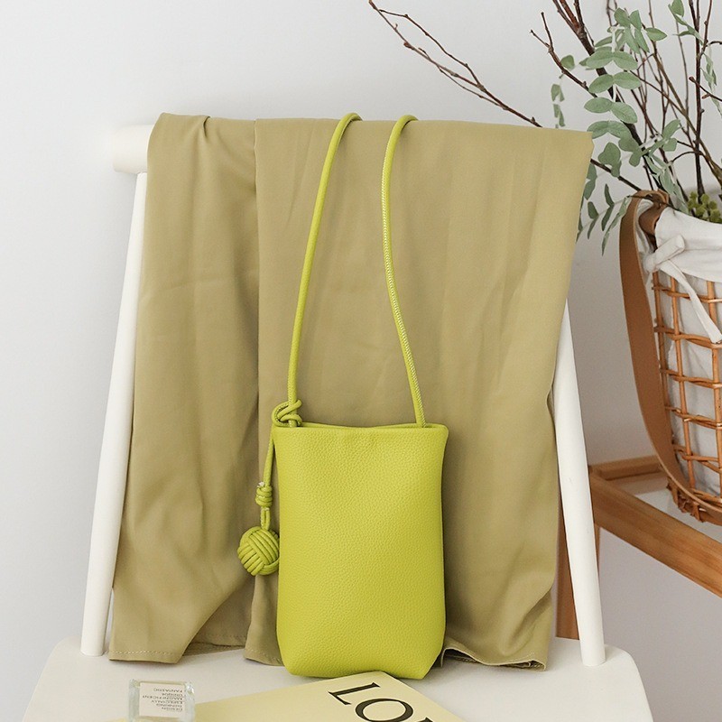 Ielgy Korean Version Summer All-Match Soft Leather Mobile Phone Bag Portable Shopping Small Shoulder Bag Retro Lychee Pattern Shoulder Crossbody
