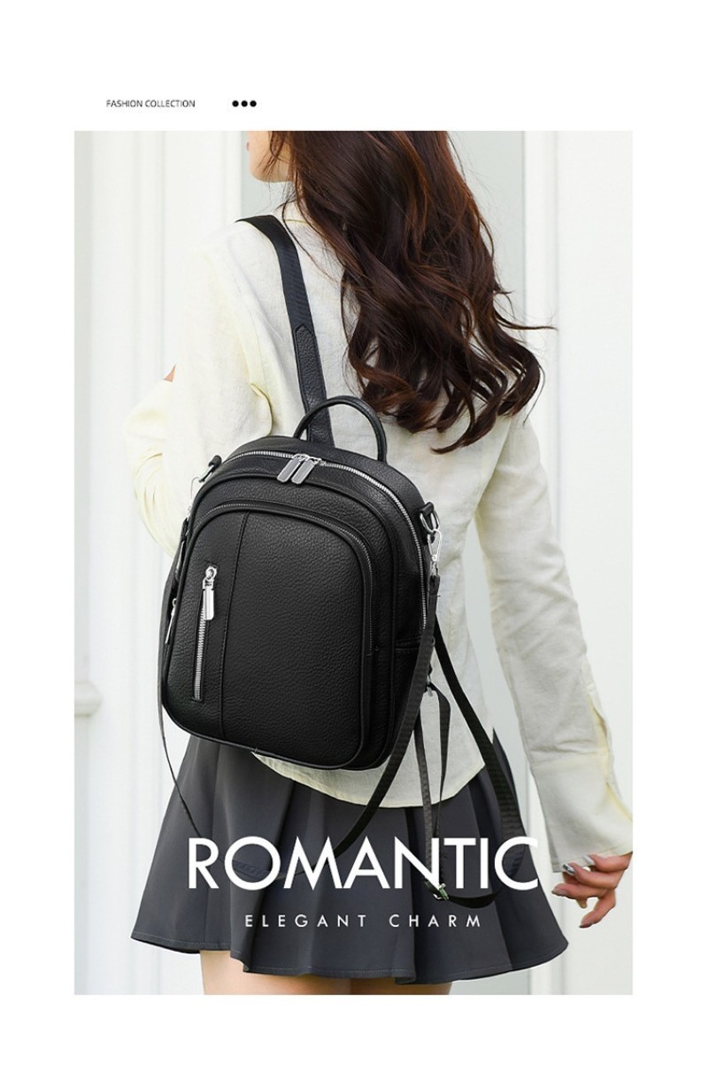 Ielgy Ladies Backpack Korean Version Soft Leather All-Match Simple Backpack Candy Color Cute Small Bag Travel Backpack