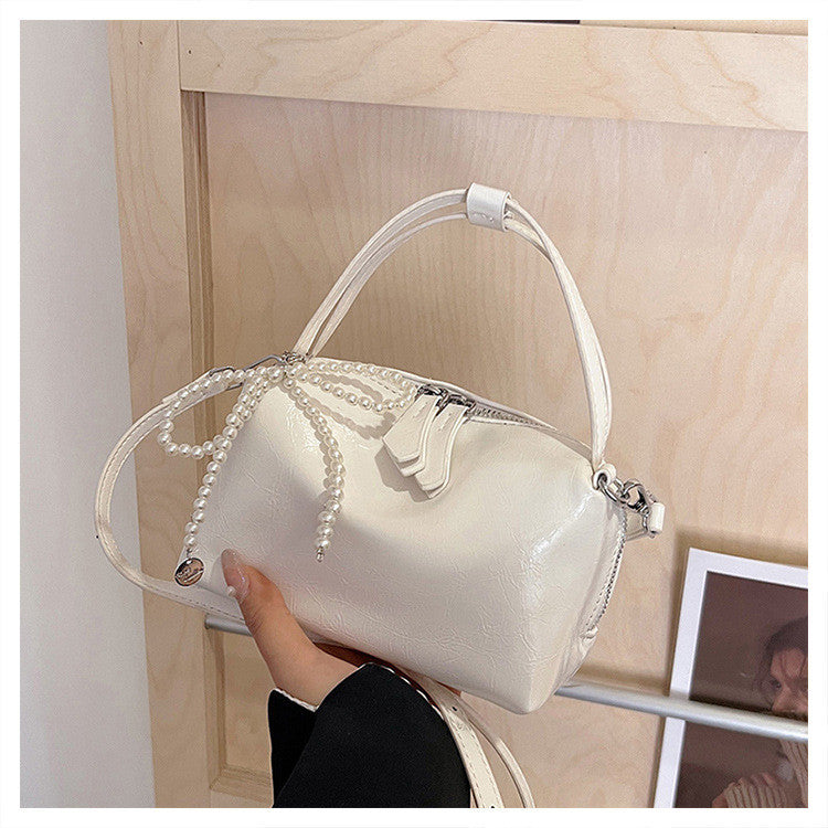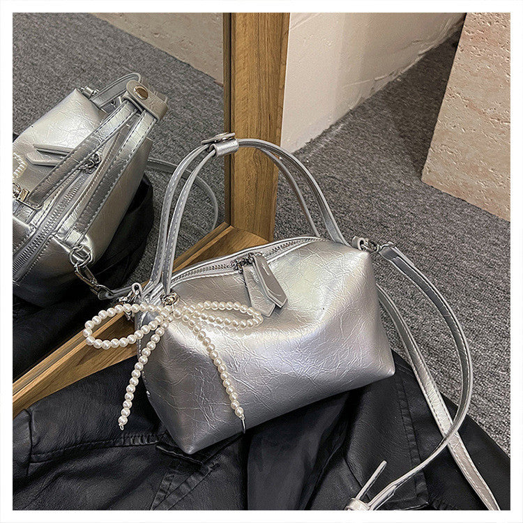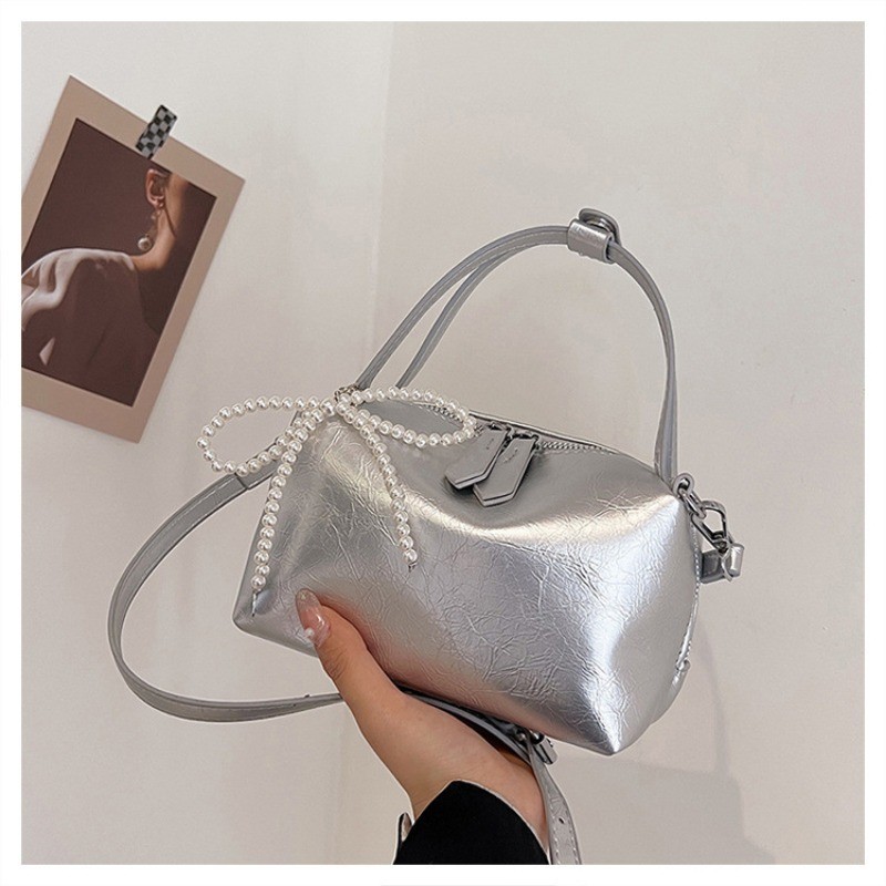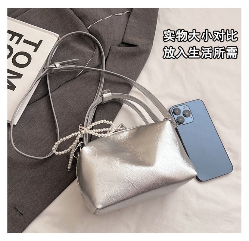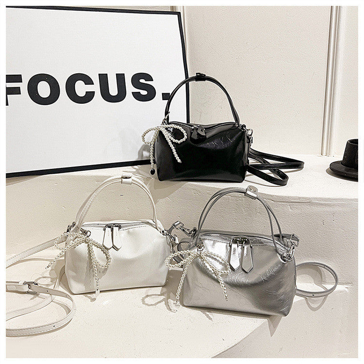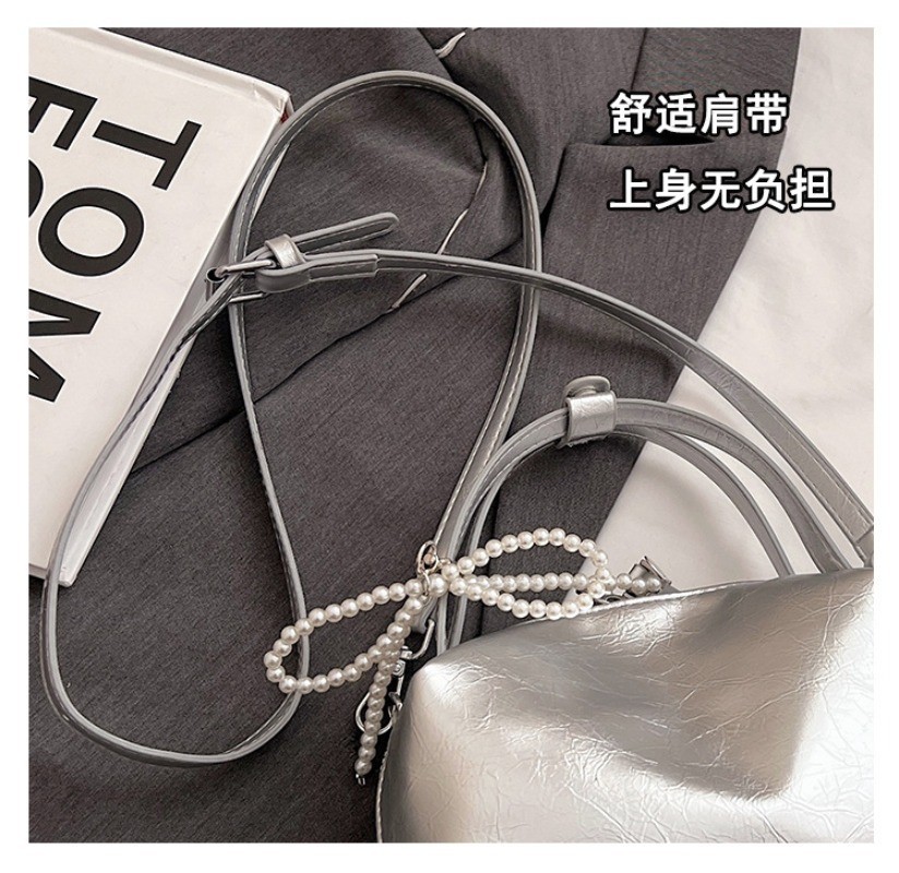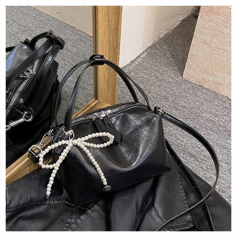 Ielgy Ladies Black All-Match Simple Messenger Bag Texture Chain Soft Leather Pillow Bag