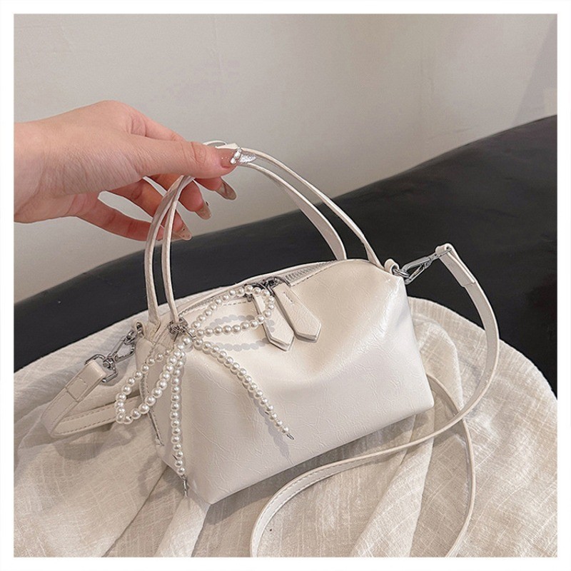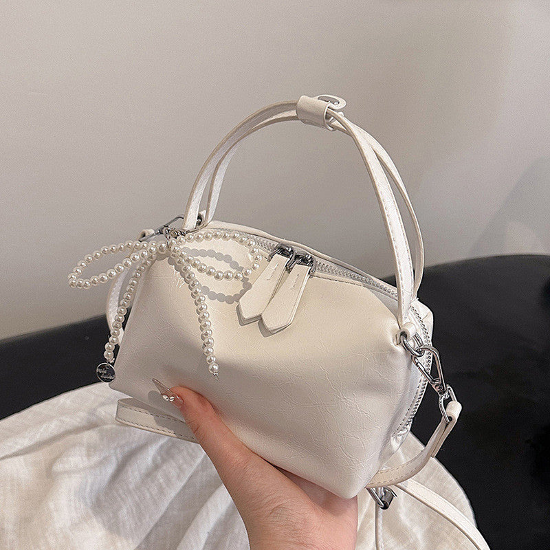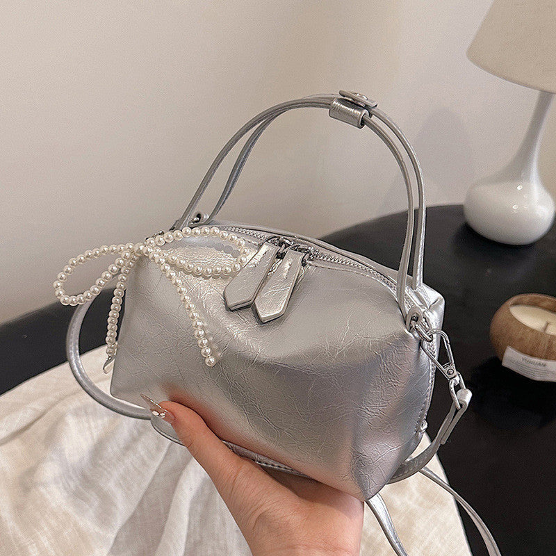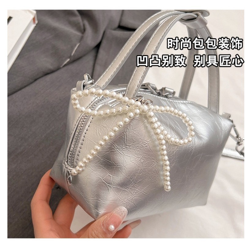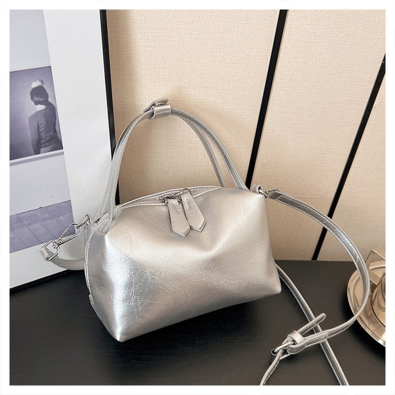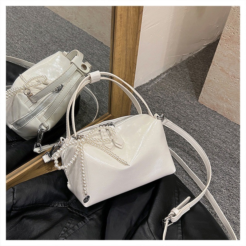 Ielgy Ladies Black All-Match Simple Messenger Bag Texture Chain Soft Leather Pillow Bag