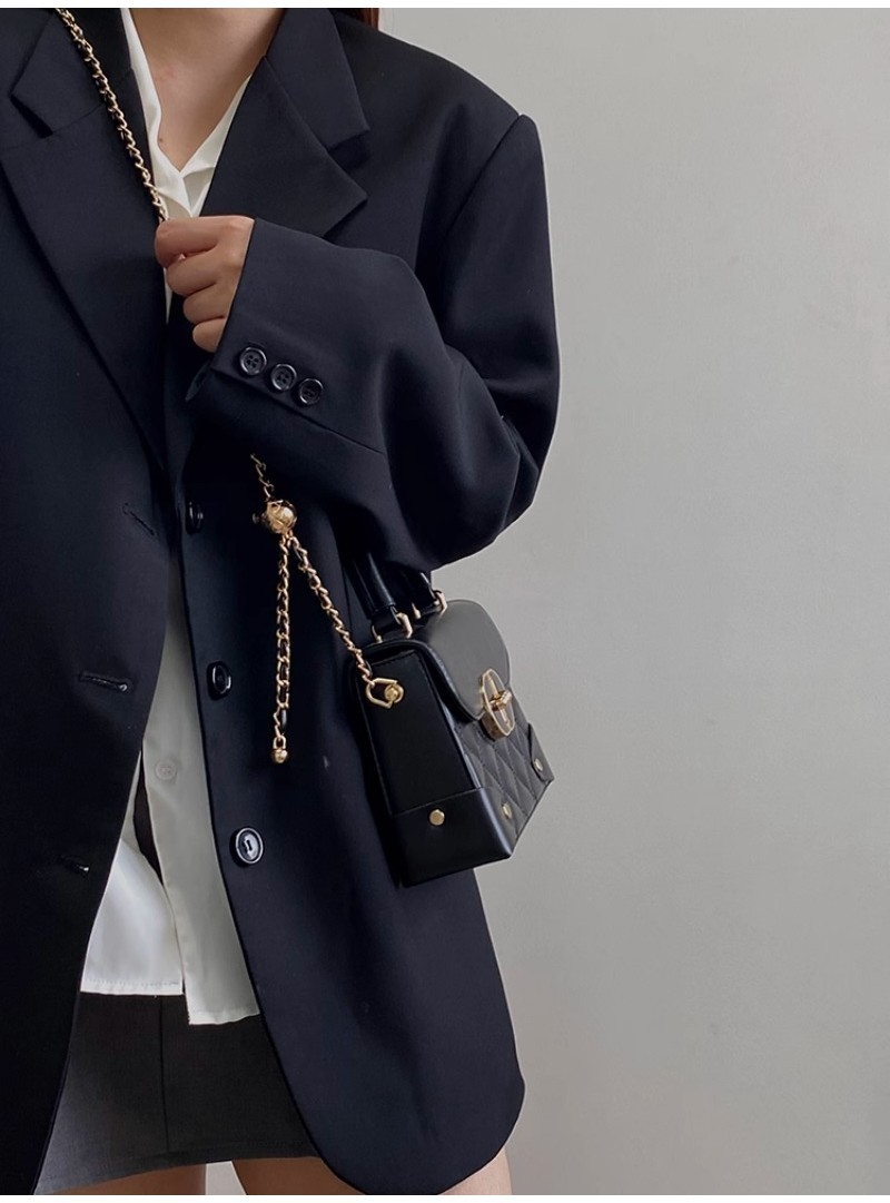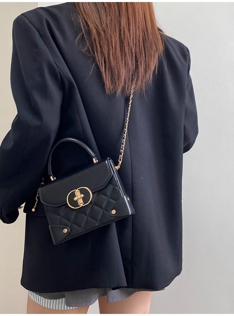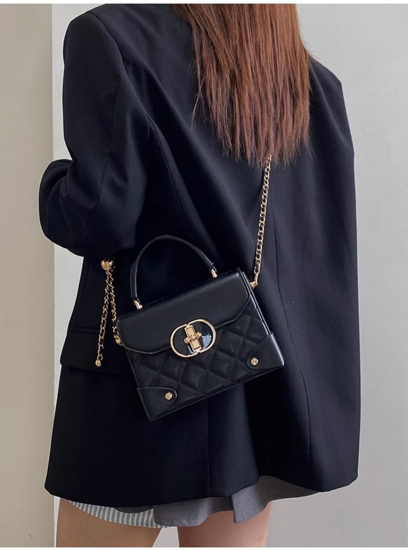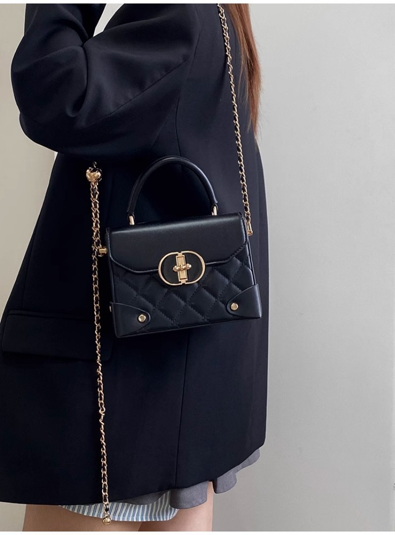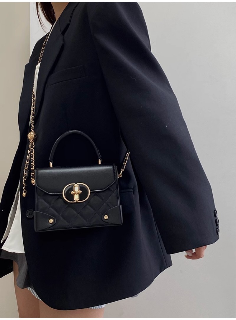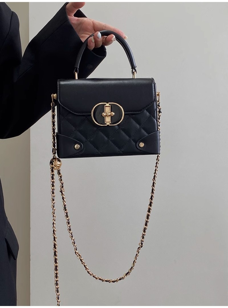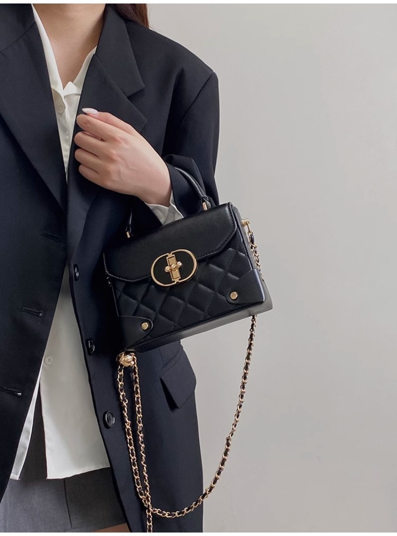 Ielgy Ladies Black Box Bag High-End Feeling All-Match Diamond One-Shoulder Messenger Bag