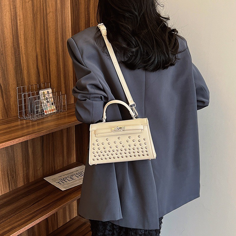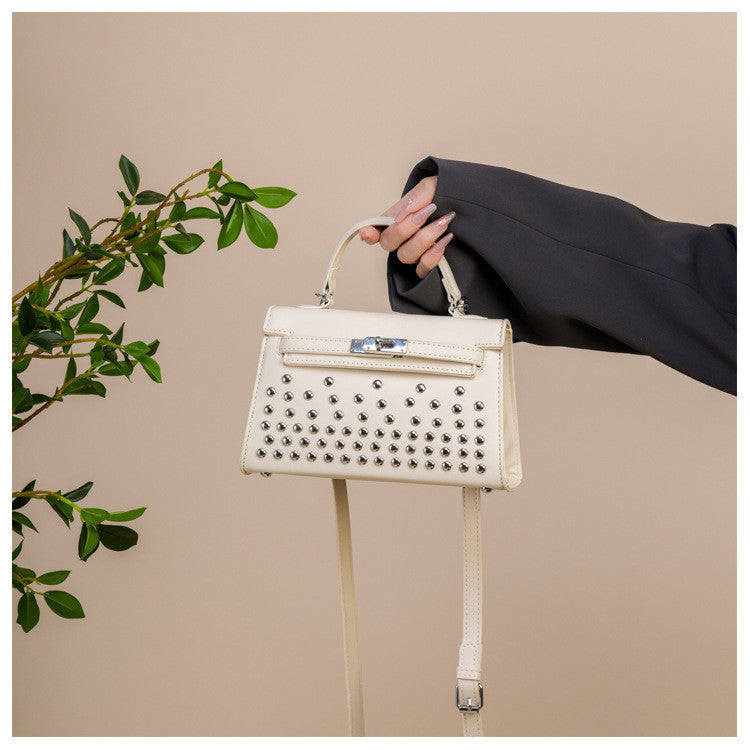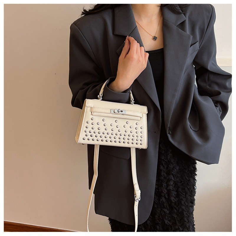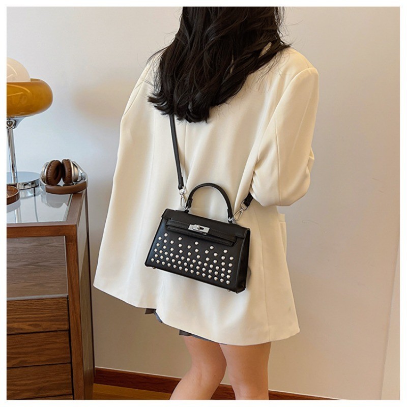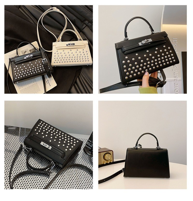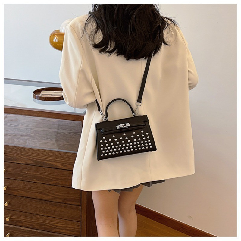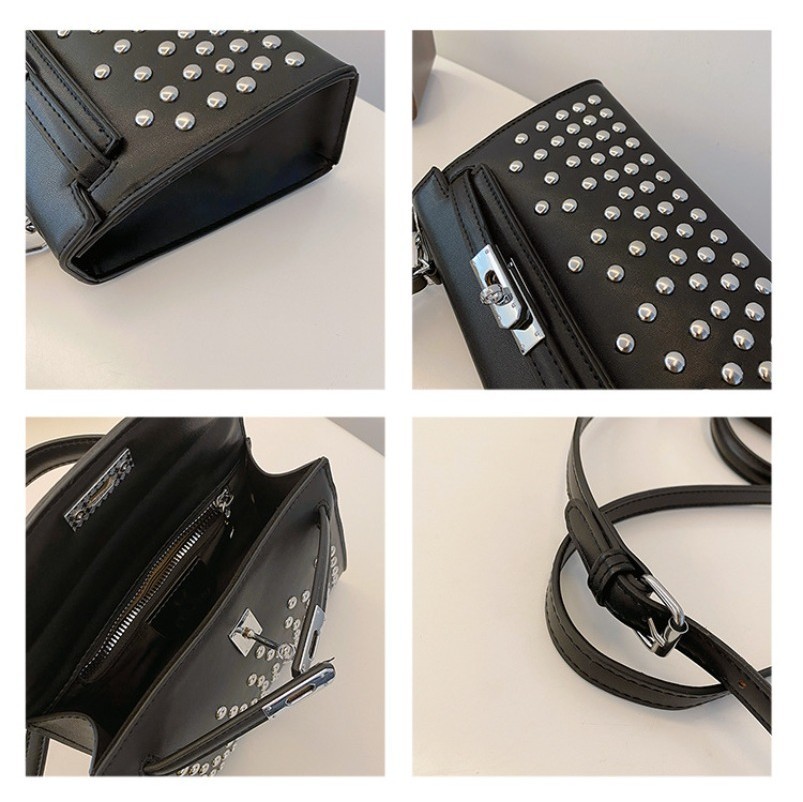 Ielgy Ladies Black Rivet Silver Buckle Messenger Bag