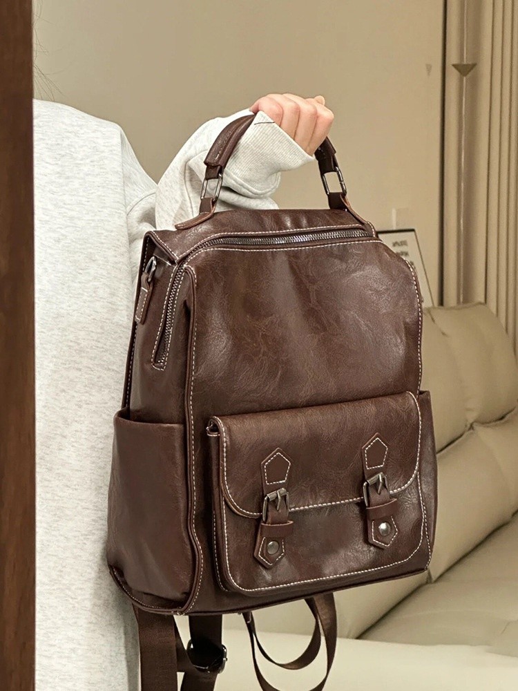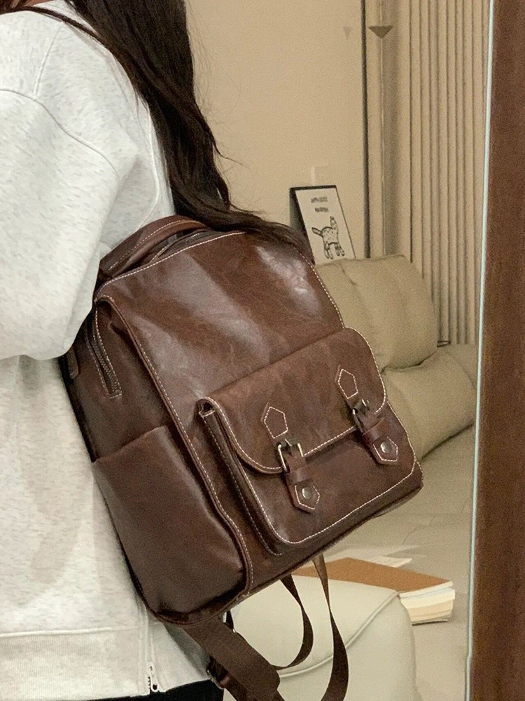 Ielgy Ladies Brown Backpack Retro British Style College Student Schoolbag Korean Version Simple Fashion Travel Backpack