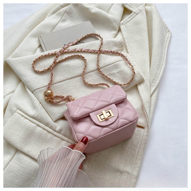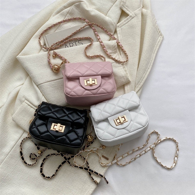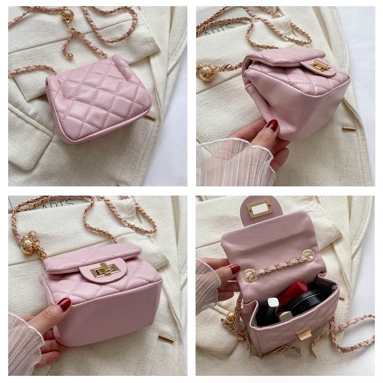 Ielgy Ladies Diamond Chain Mini Bag Lock Fashion Simple One-Shoulder Cross-Body Small Square Bag