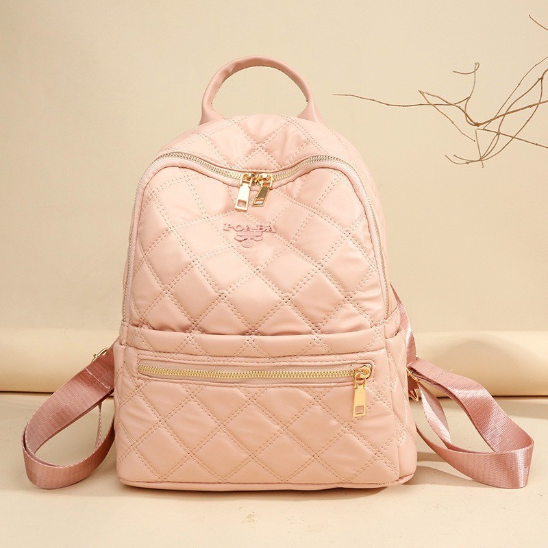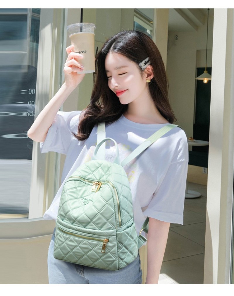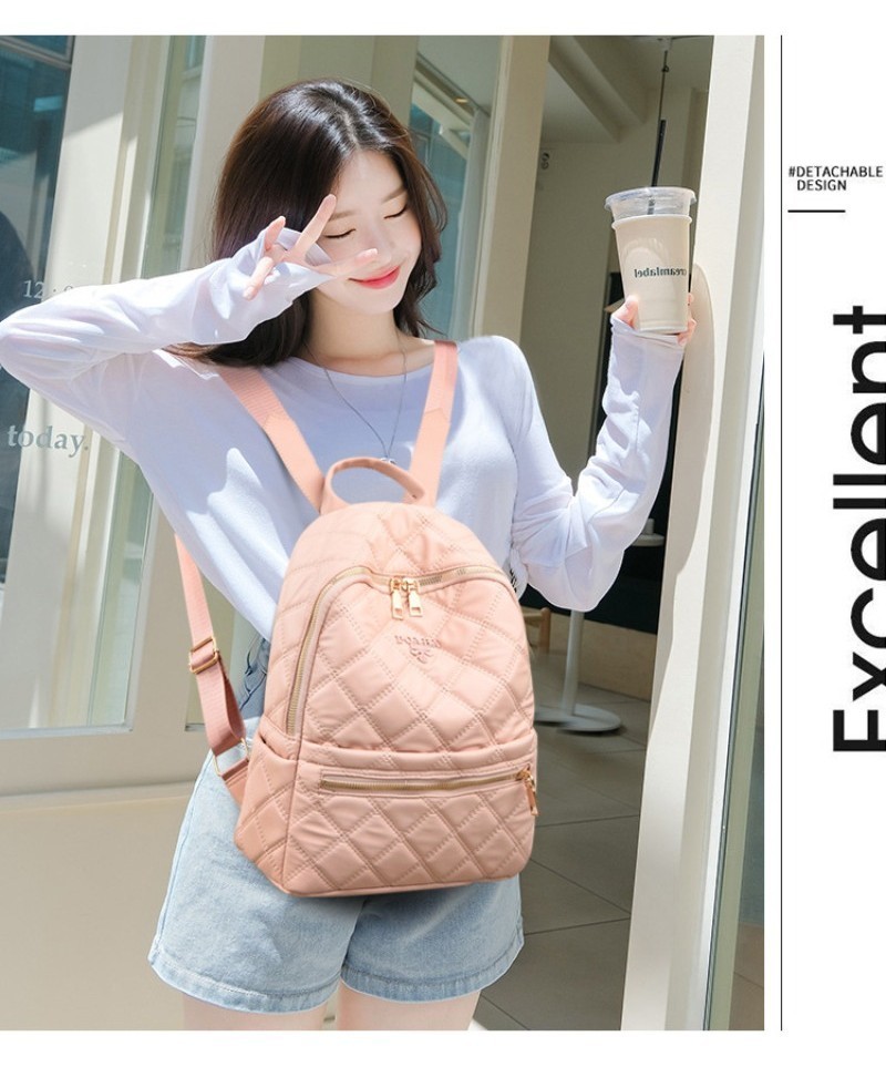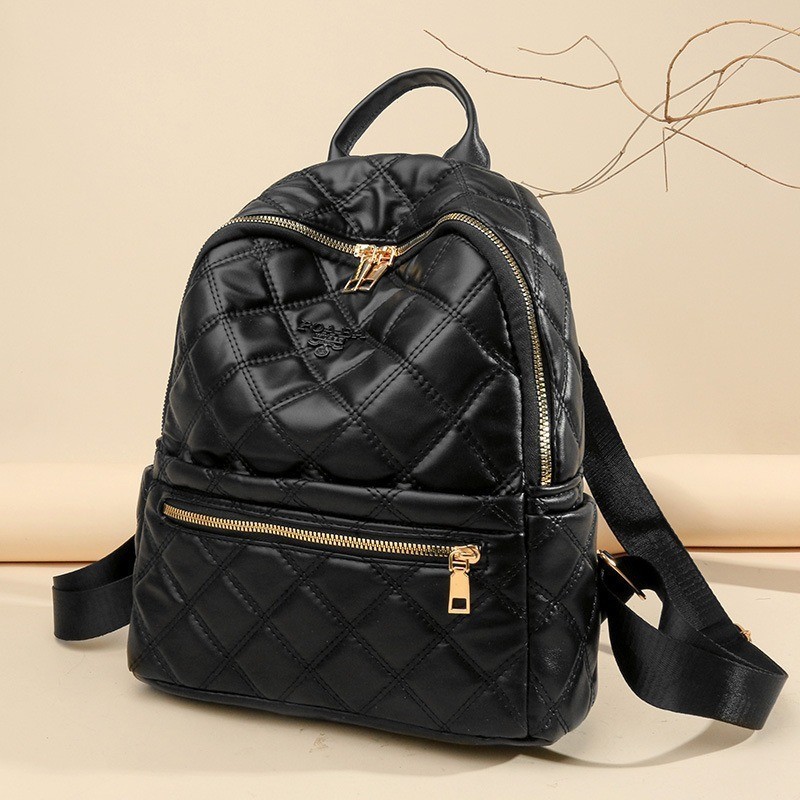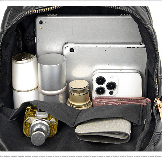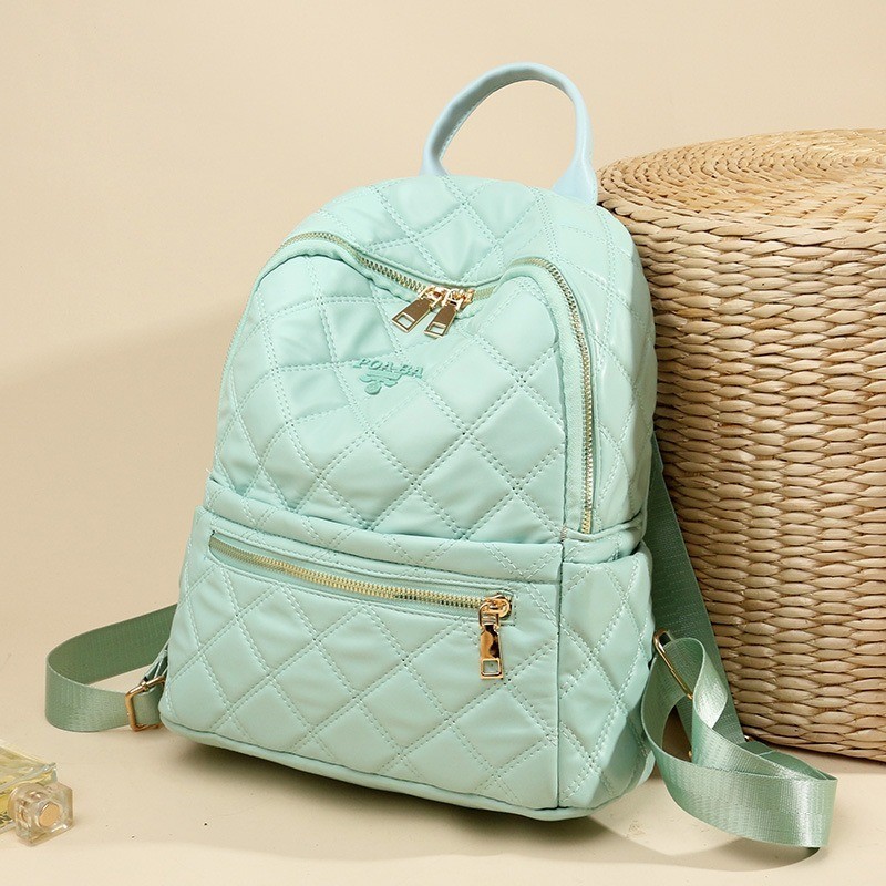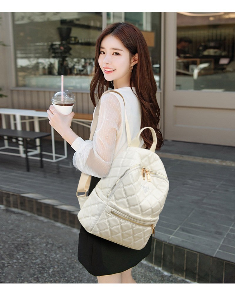 Ielgy Ladies Fashion Rhombus School Bag PU Soft Leather Texture Commuter Simple Leisure Travel Backpack