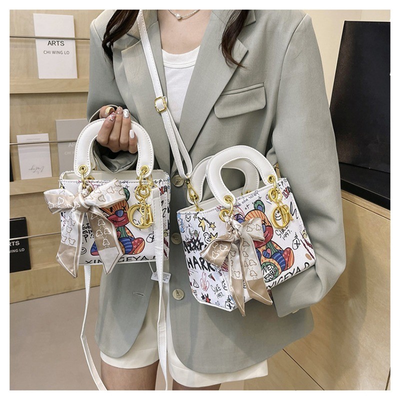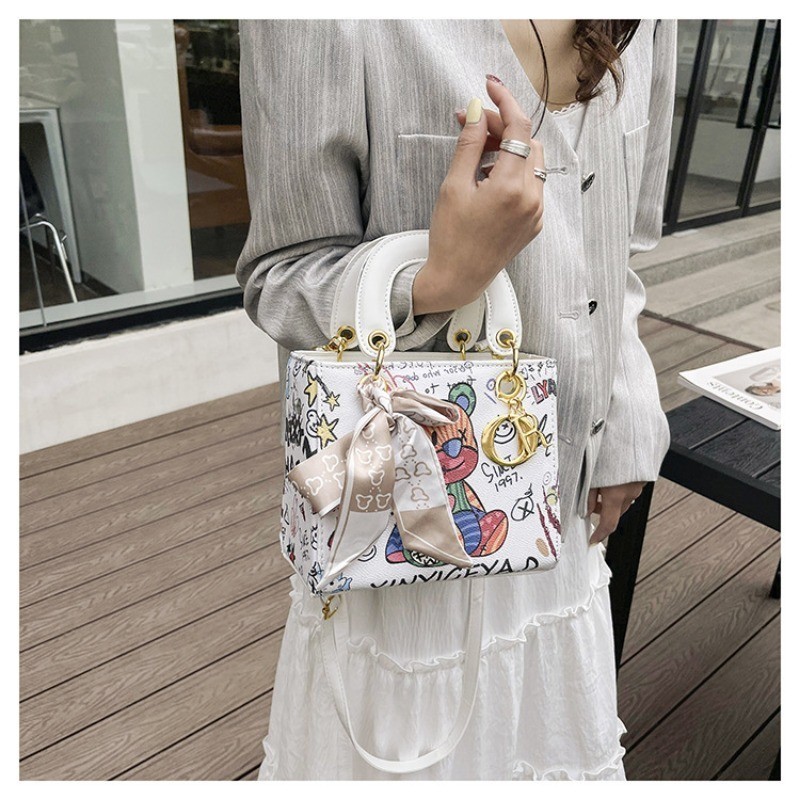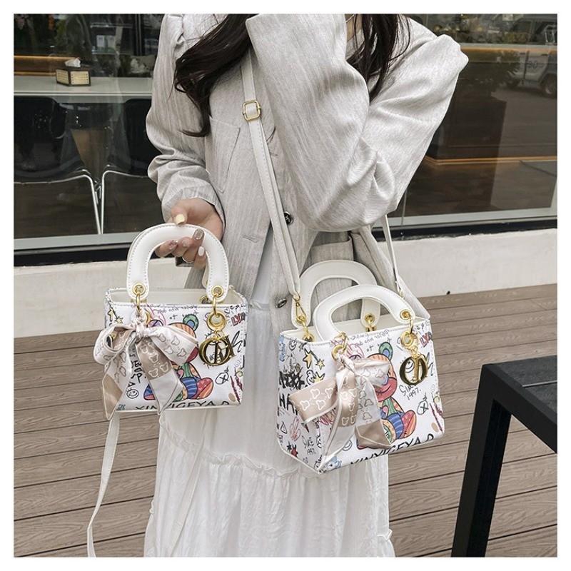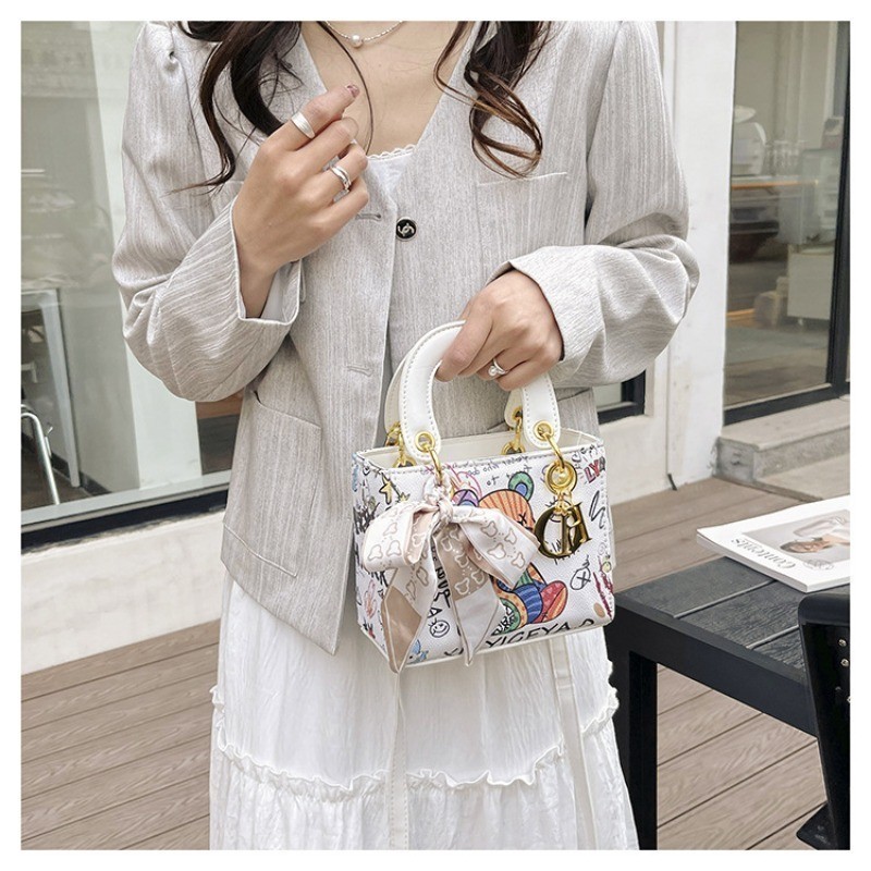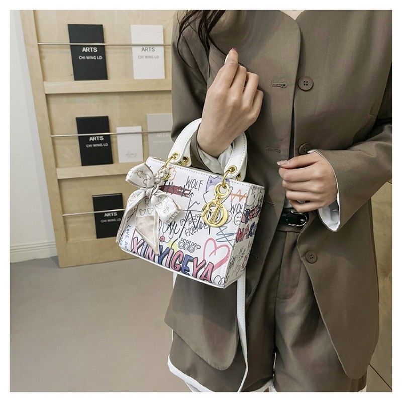 Ielgy Ladies Fashion Silk Scarf Graffiti Contrast Color Diana Bag Portable One-Shoulder Diagonal