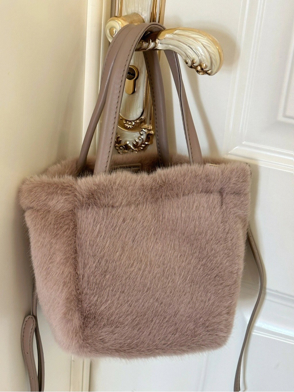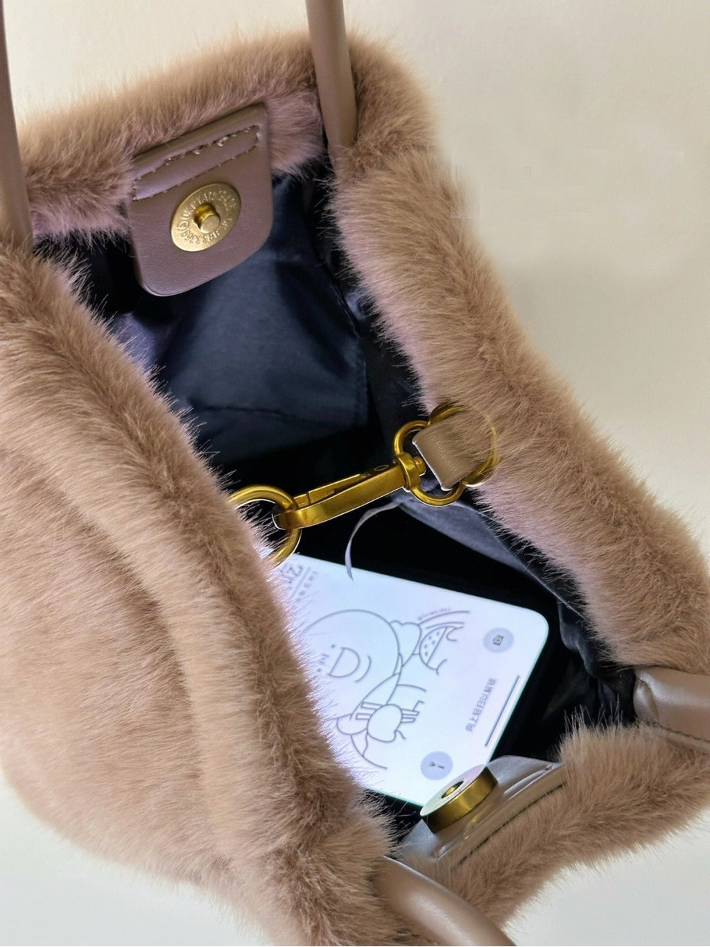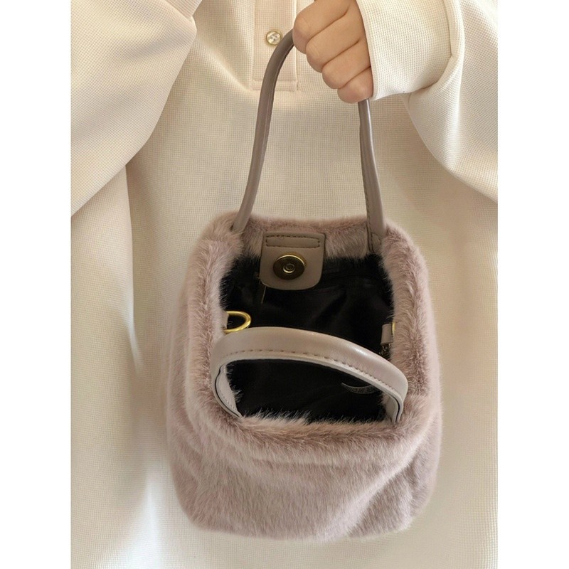Ielgy Ladies Furry Messenger Bag Portable Bucket Bag