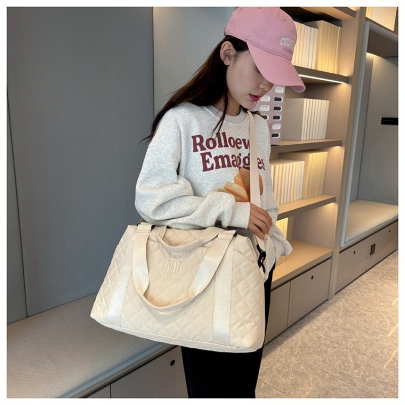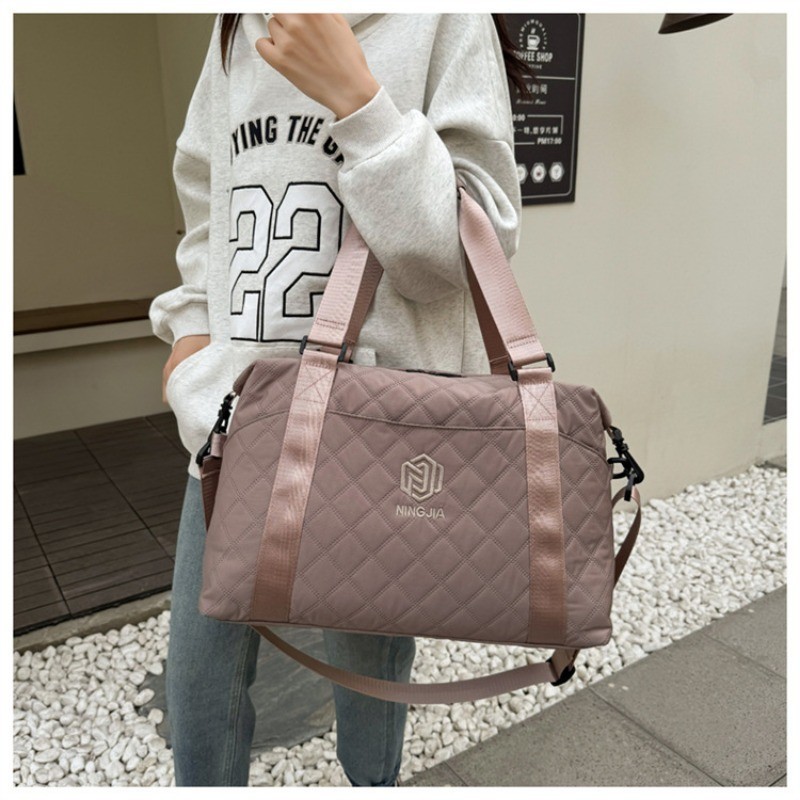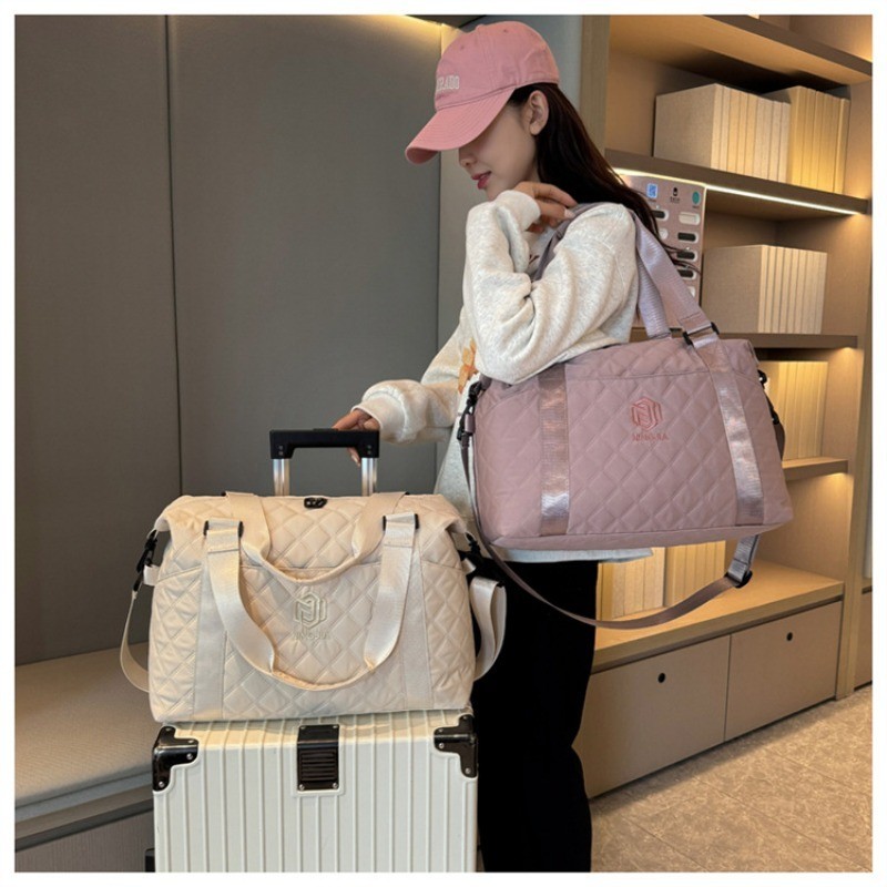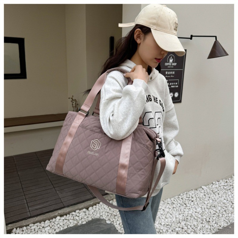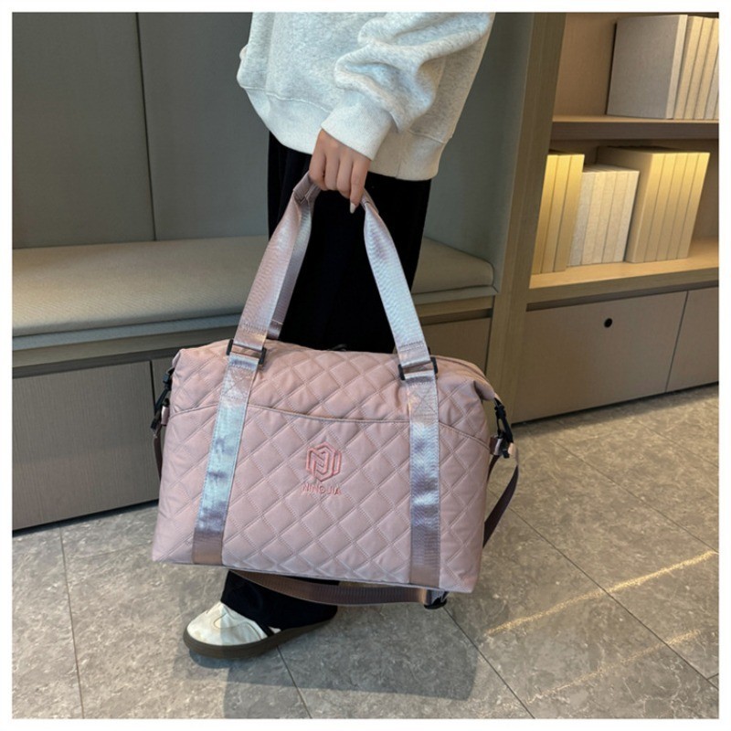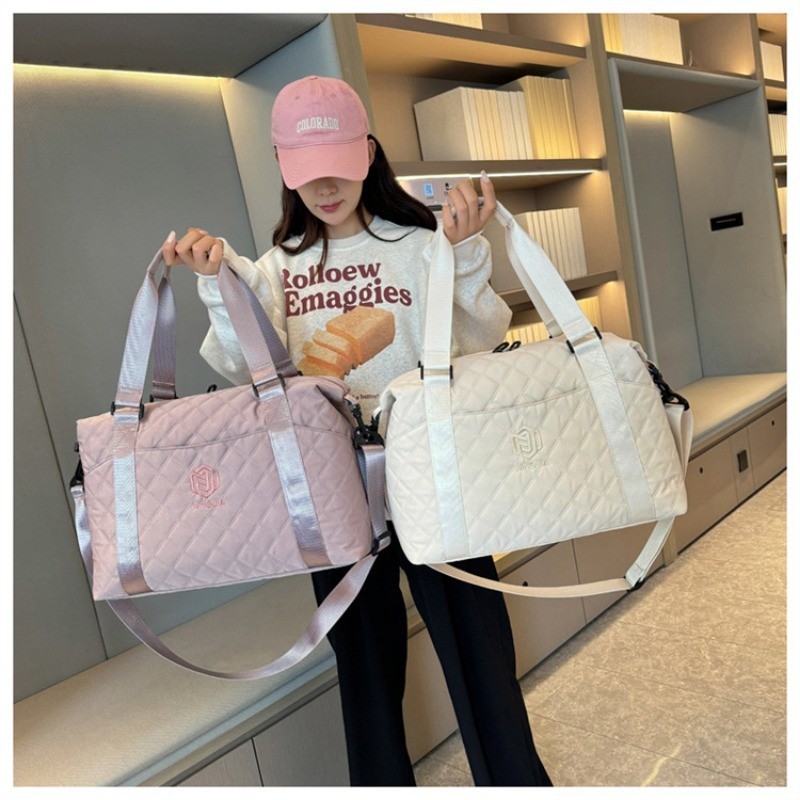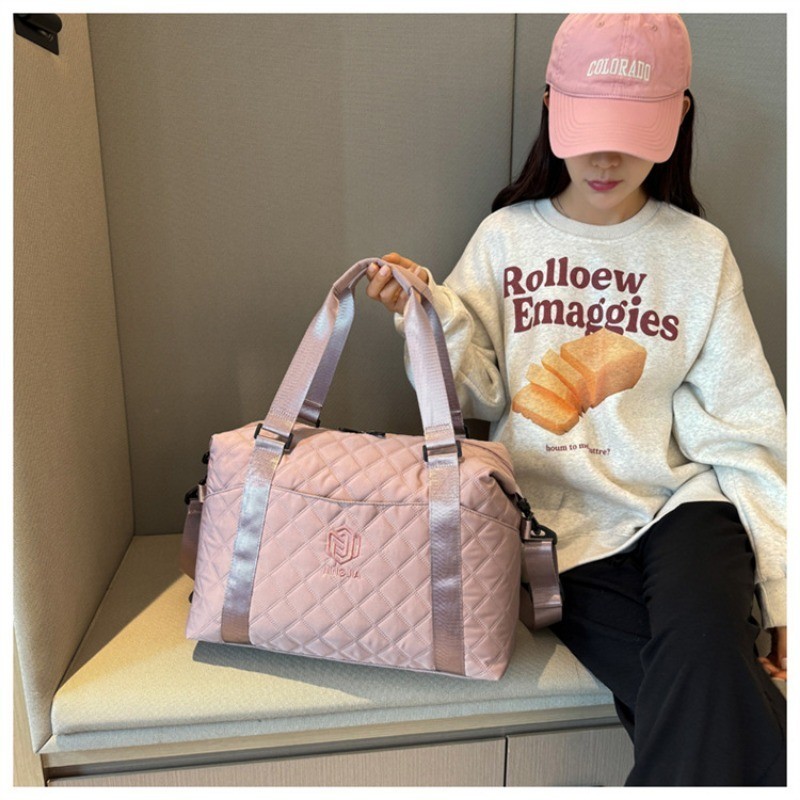 Ielgy Ladies Gym Bag Fashion Portable Travel Storage Bag Diamond Oxford Cloth Lightweight Dry Wet Separation Travel Duffel Bag