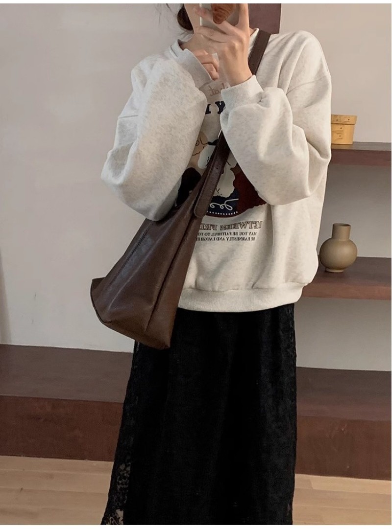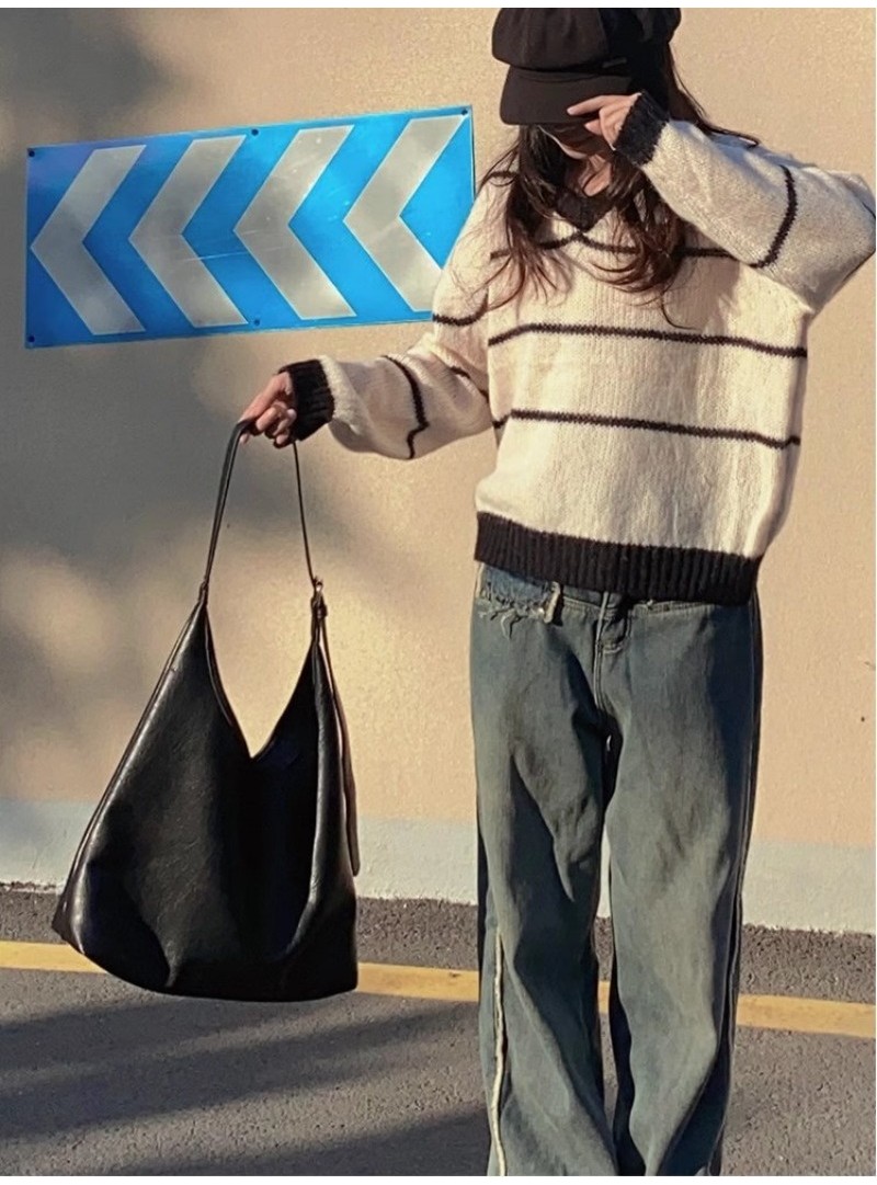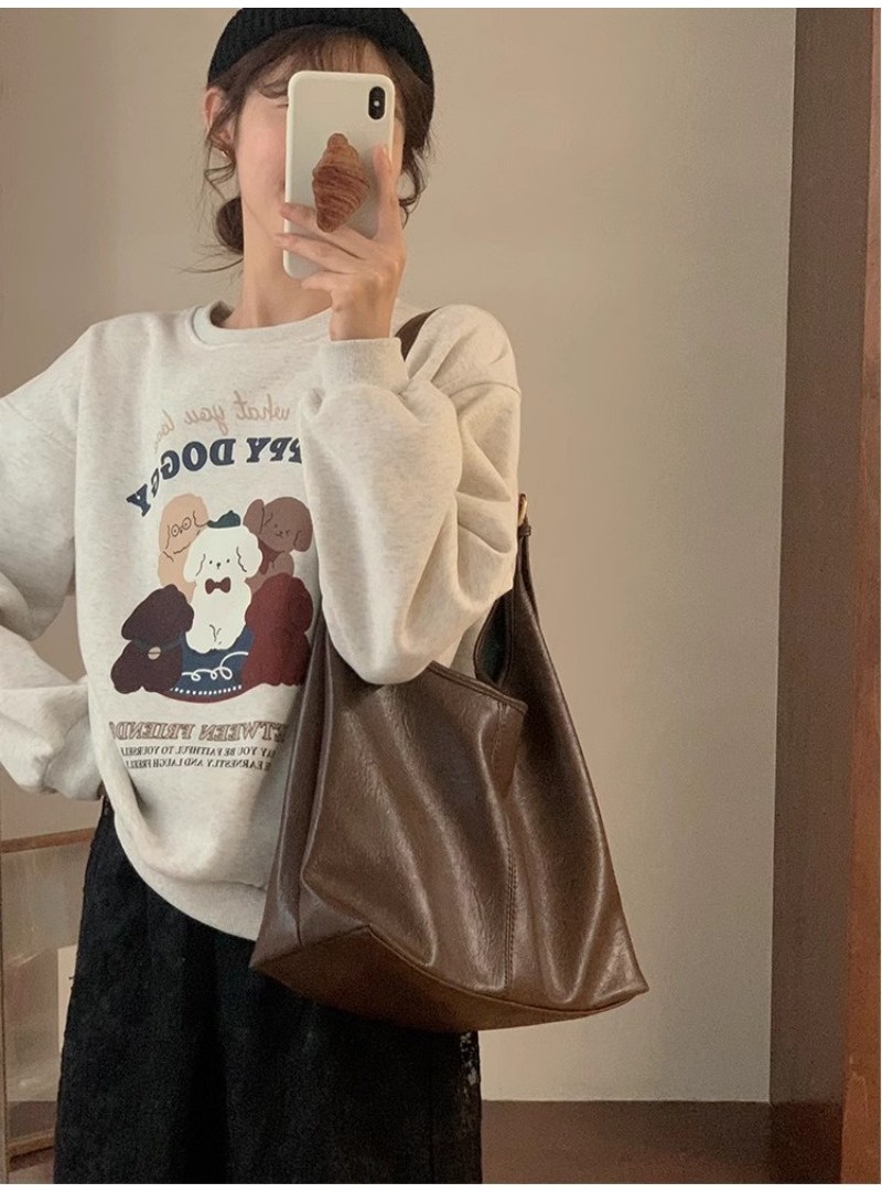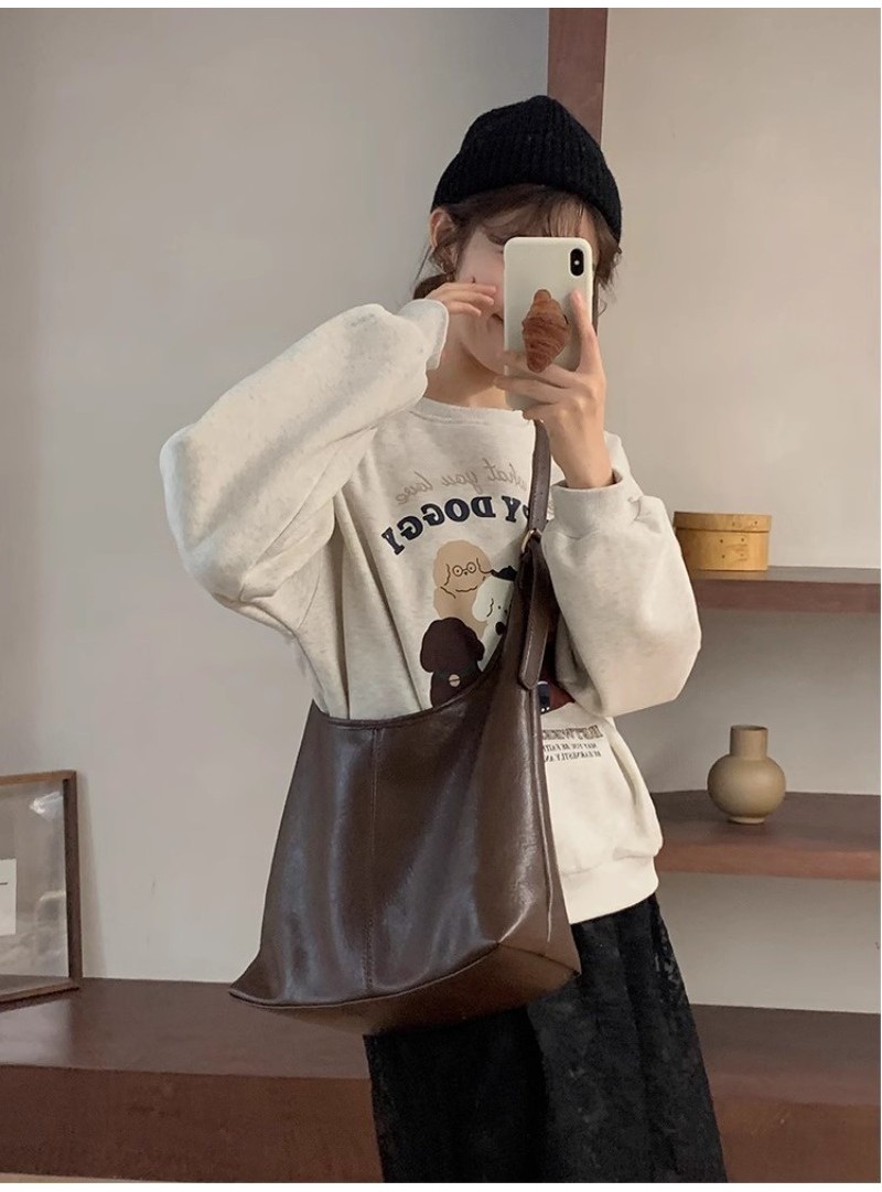 Ielgy Ladies Large-Capacity Bag Simple Soft Leather One-Shoulder Underarm Bag Retro Commuter Diagonal Child-Mother Bag
