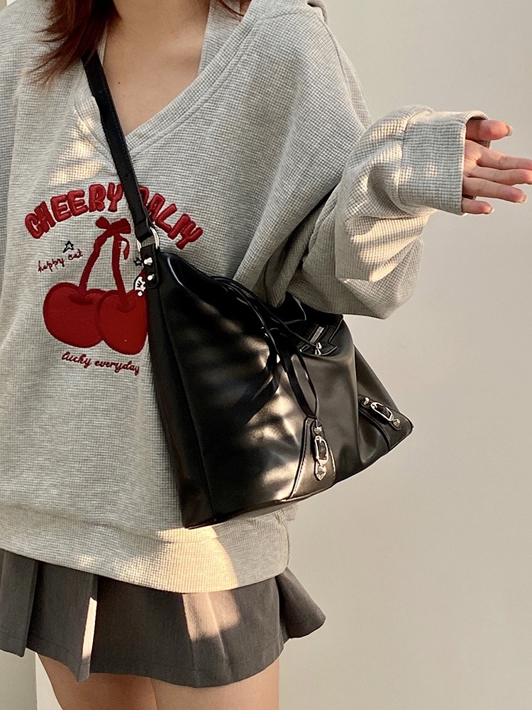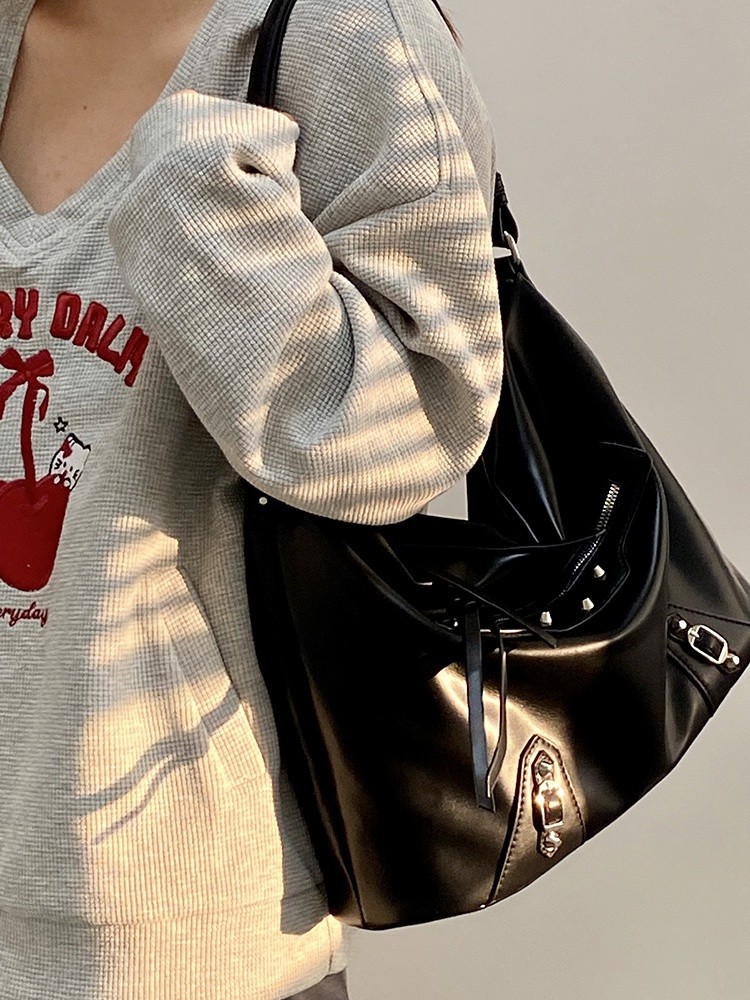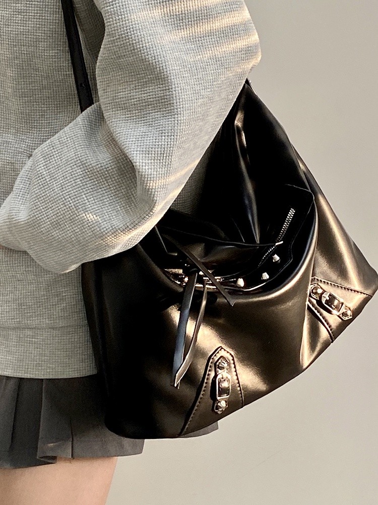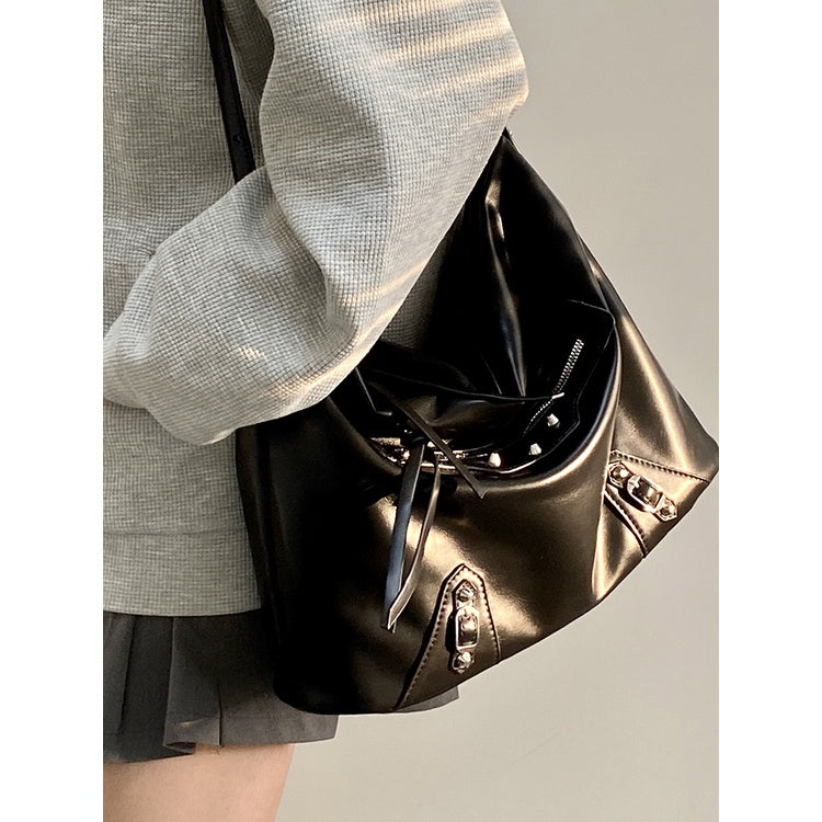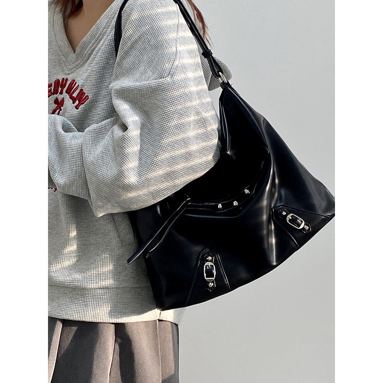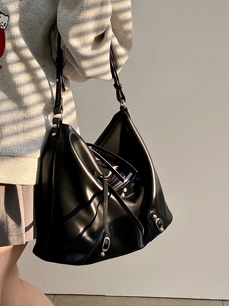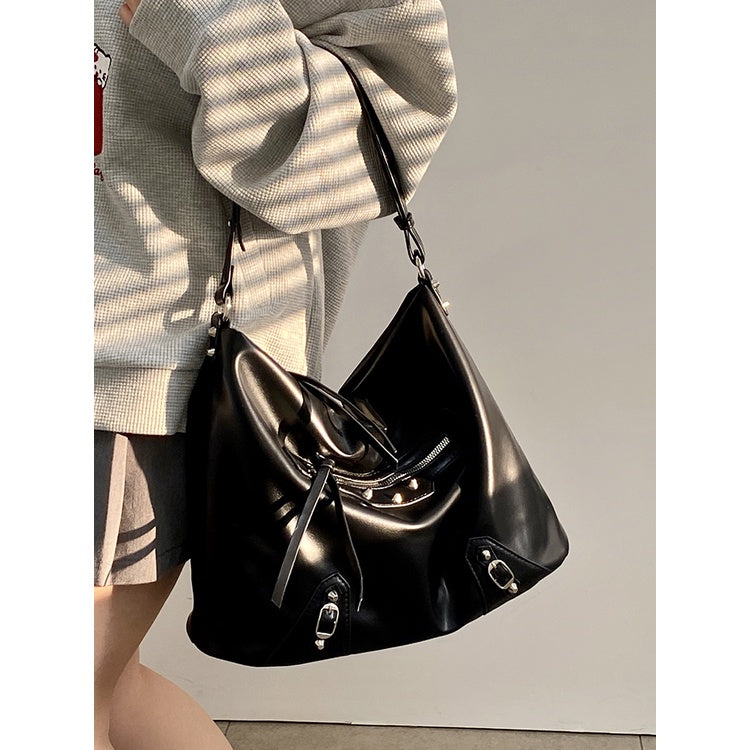 Ielgy Ladies Large-Capacity Motorcycle Bag Cool Shoulder Diagonal Portable Commuter Bag