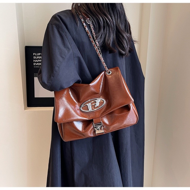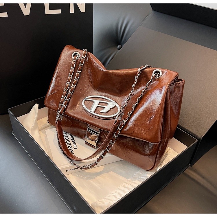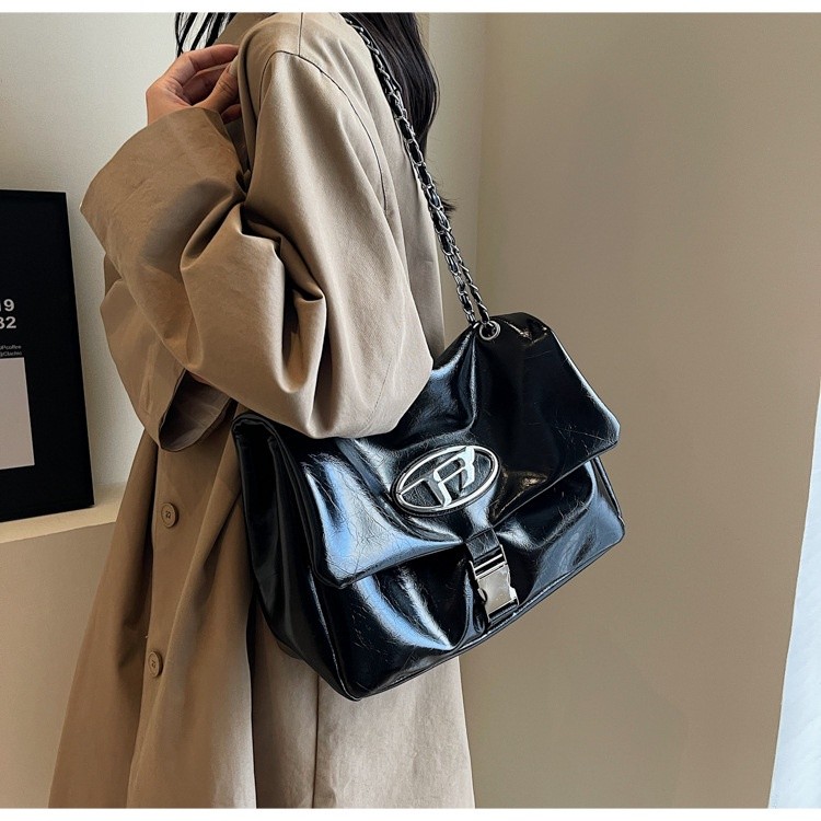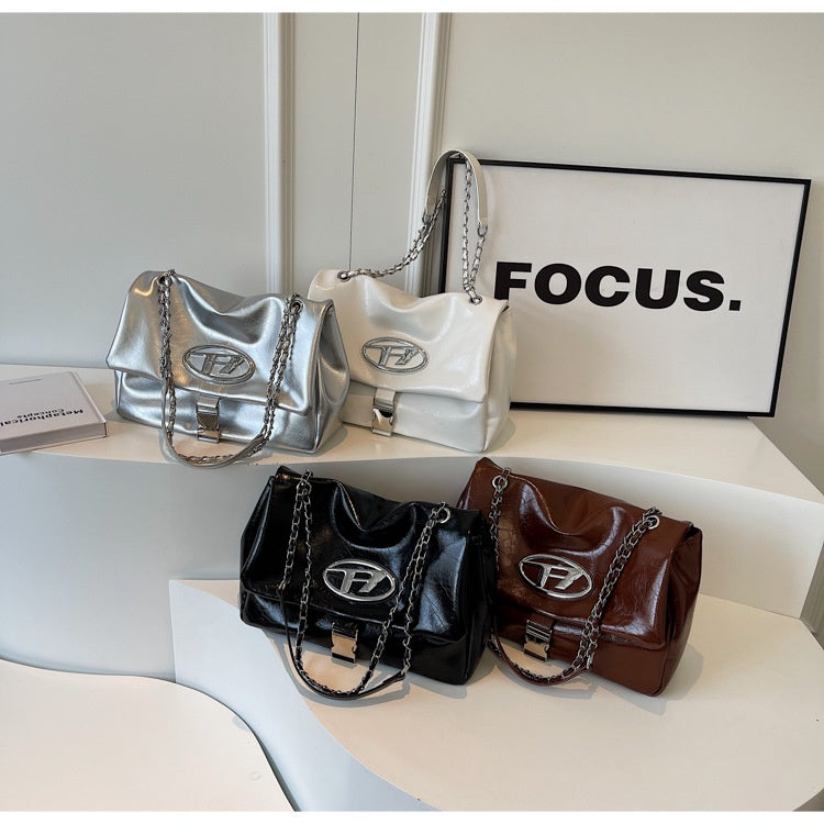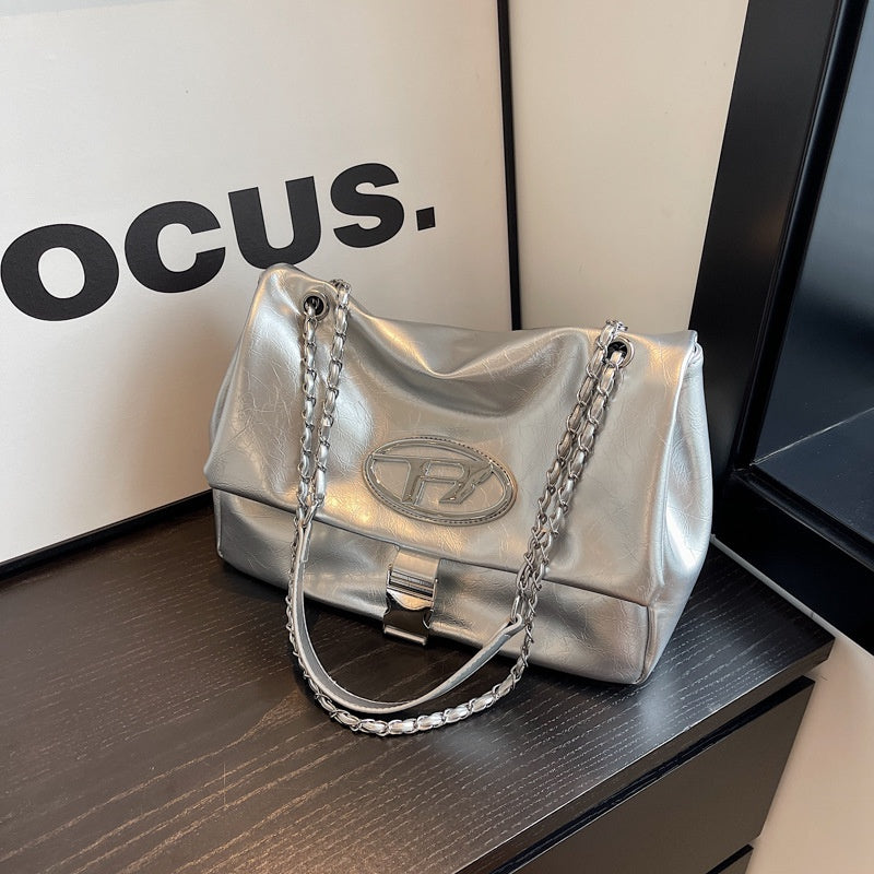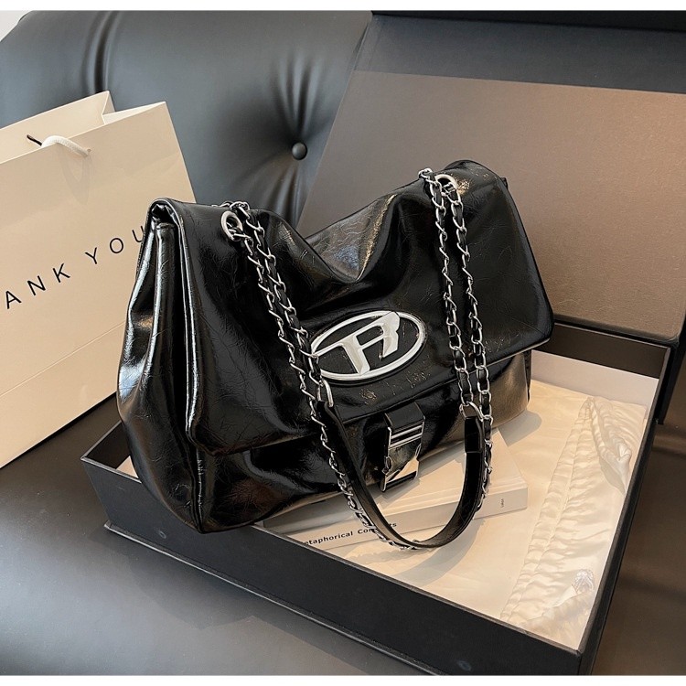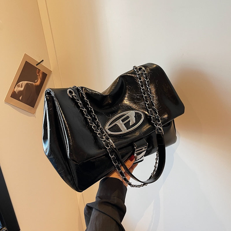Ielgy Ladies Large-Capacity One-Shoulder Messenger Tote Bag Temperament Jingle Bag Chain St