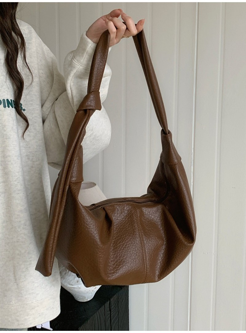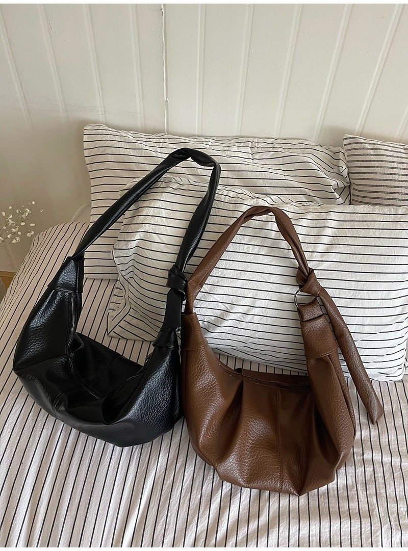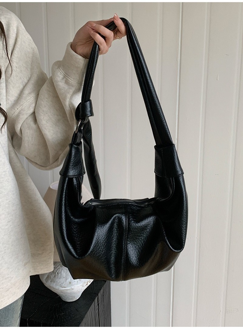 Ielgy Ladies Large-Capacity Retro Soft Leather Pleated Dumpling Bag Lazy Style Casual All-Match Croissant Shoulder Mess