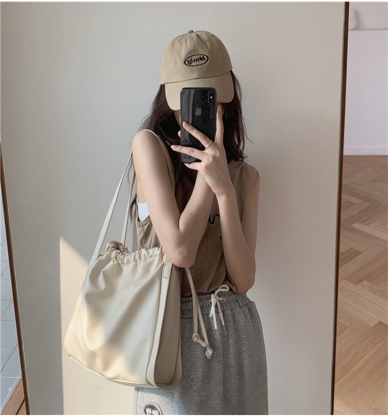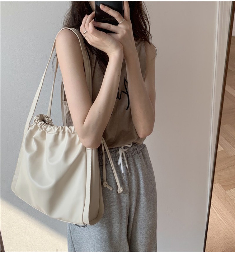 Ielgy Ladies Large Capacity Women Casual Cream White Bucket Bag Shoulder Tote Bag