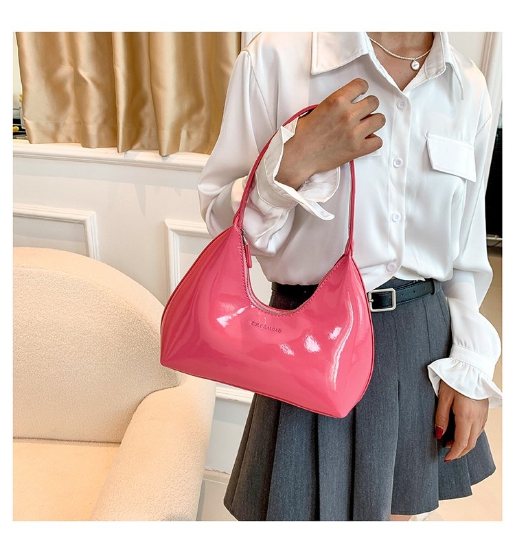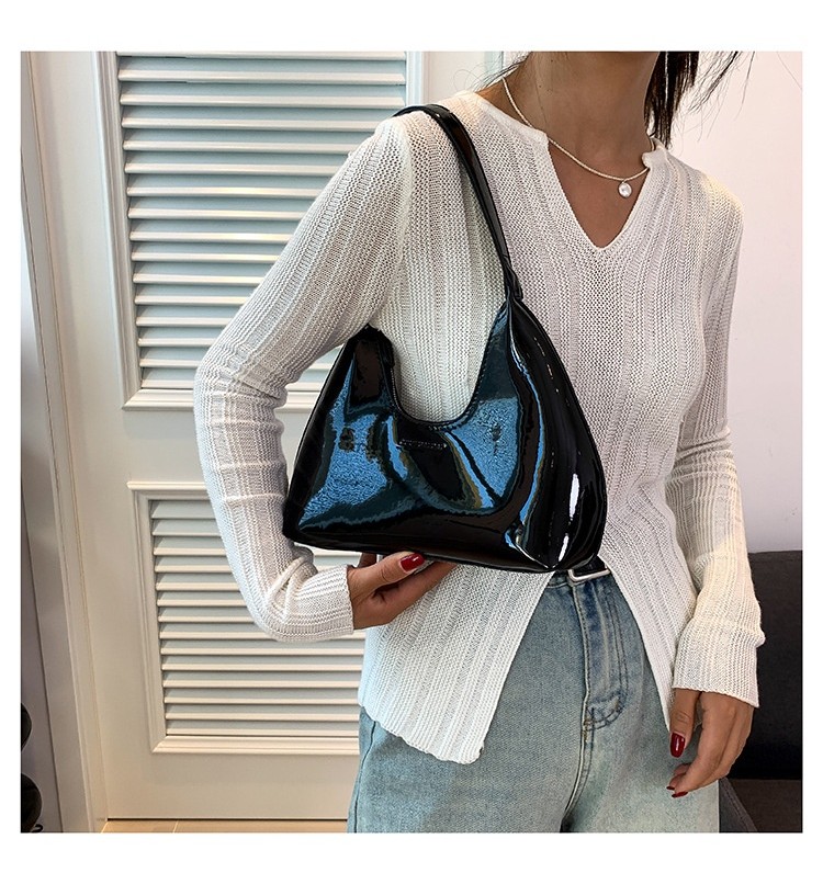 Ielgy Ladies Patent Leather Bag Baguette Crescent Bag Ladies Shoulder Handbag Texture Fashion Underarm Bag