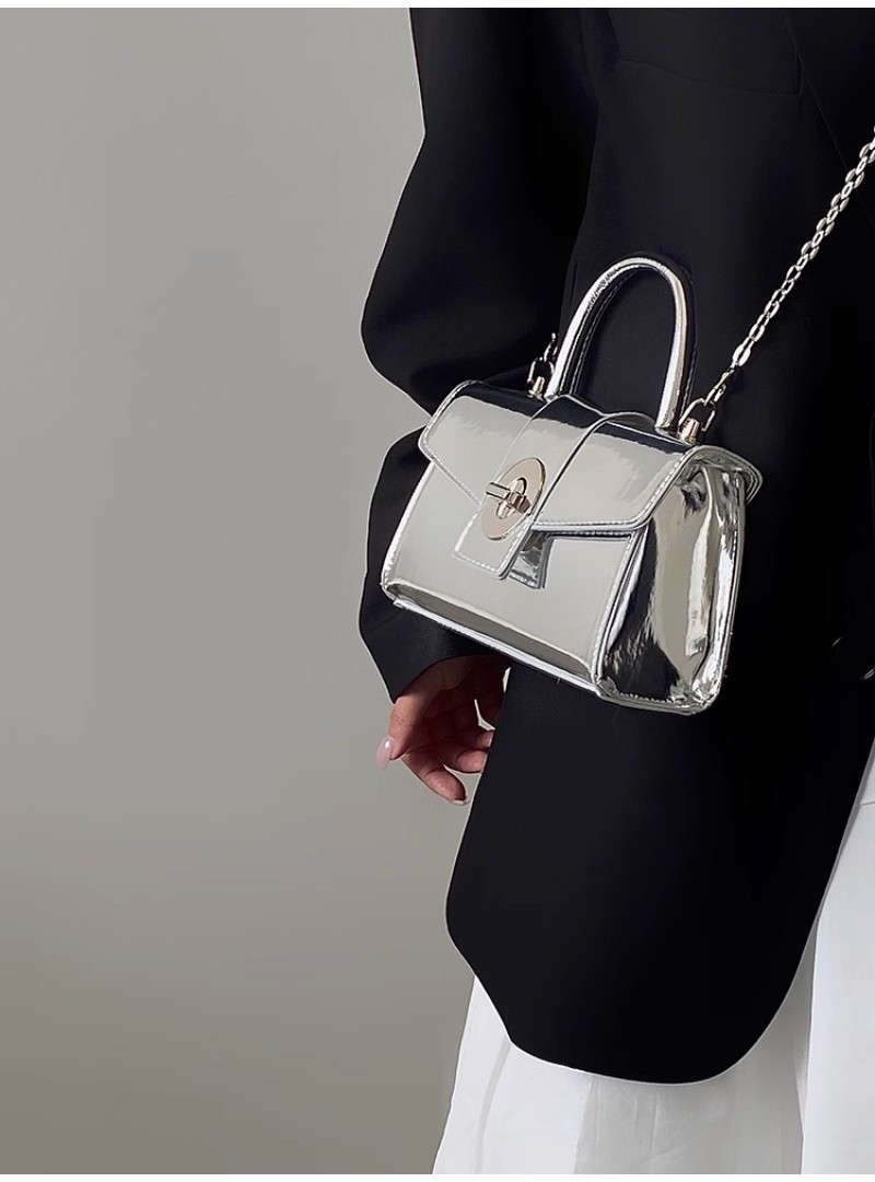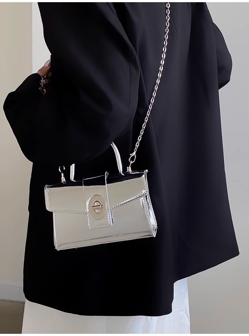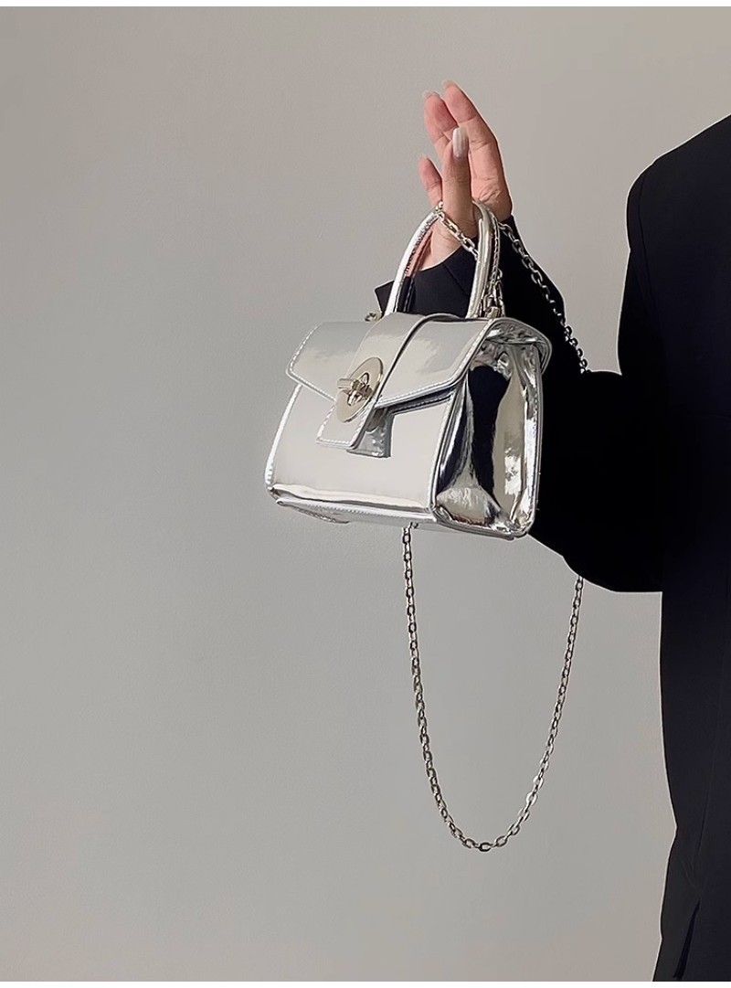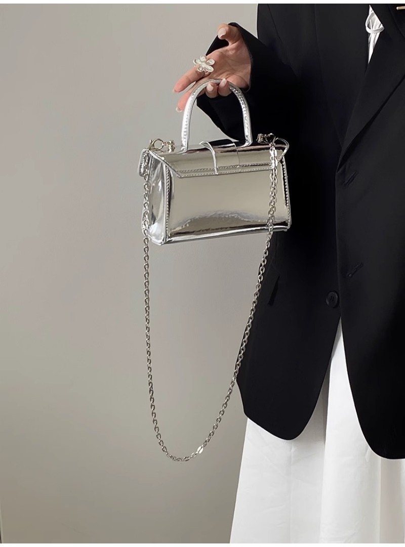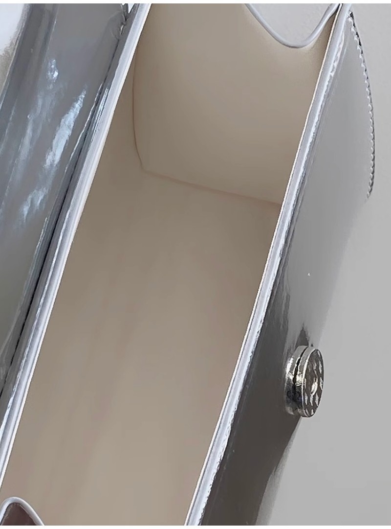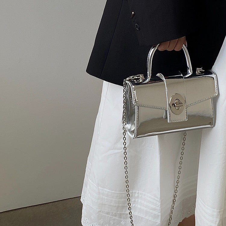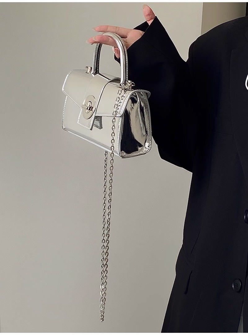 Ielgy Ladies Patent Leather Silver Locomotive Small Square Bag Hot Girl Fashion All-Match One-Shoulder Messenger Bag