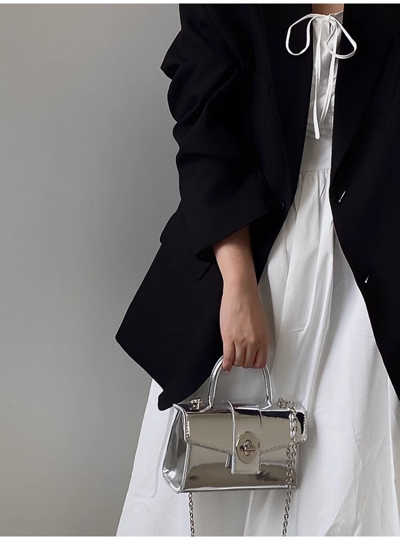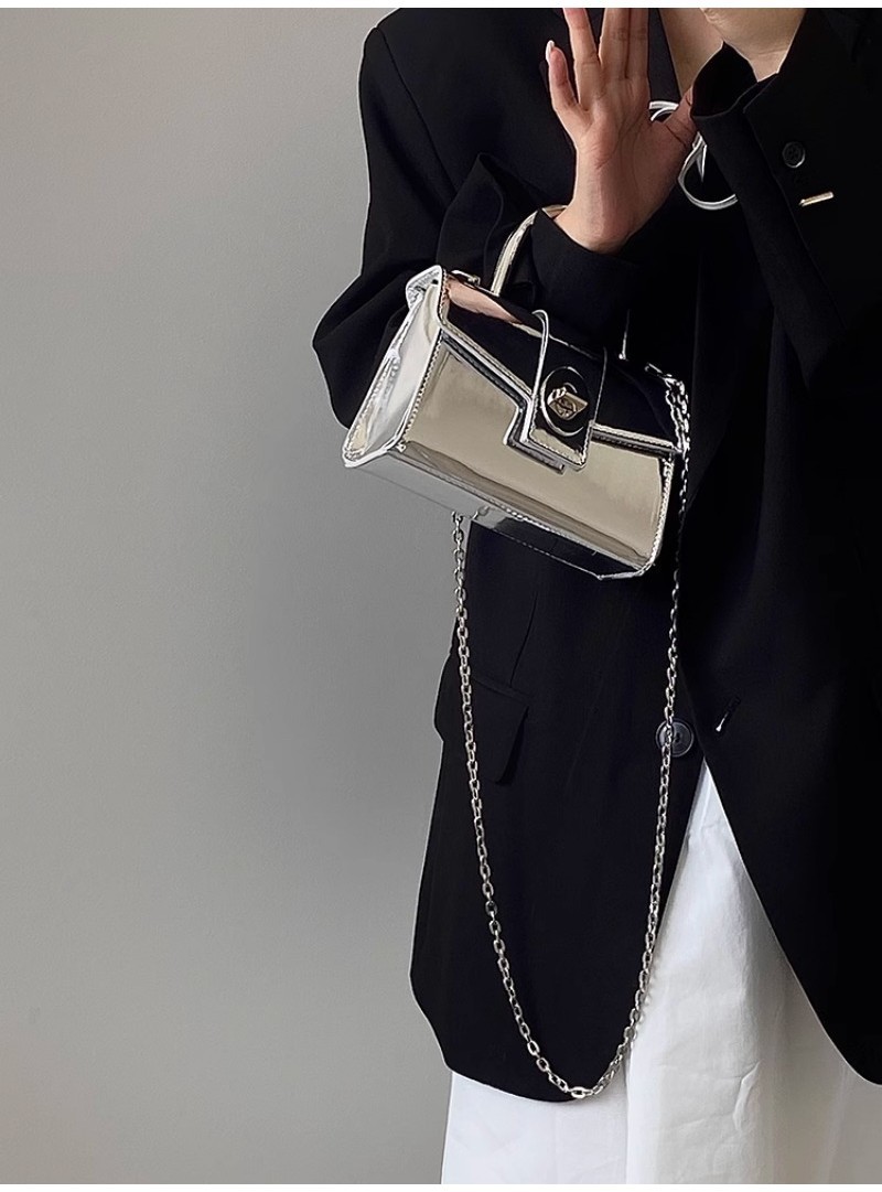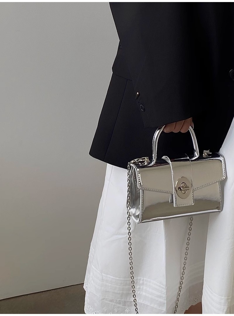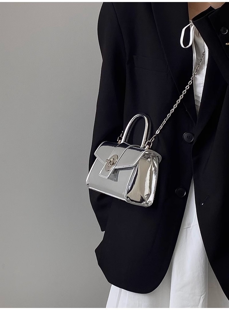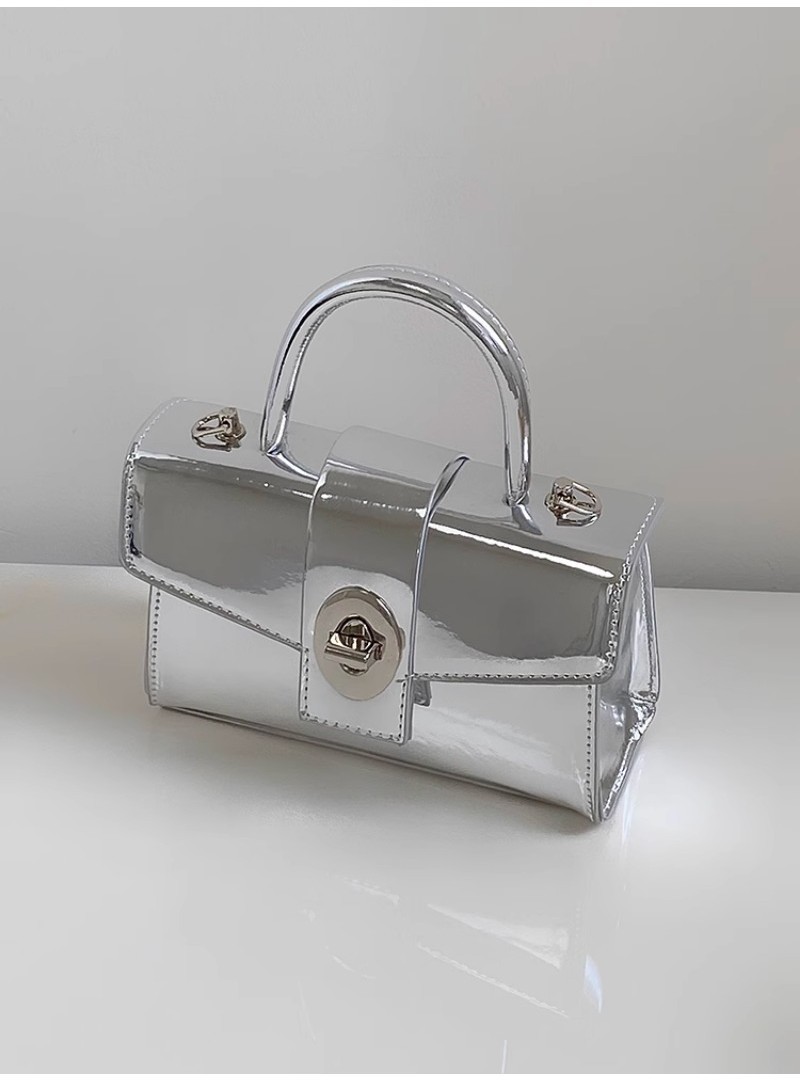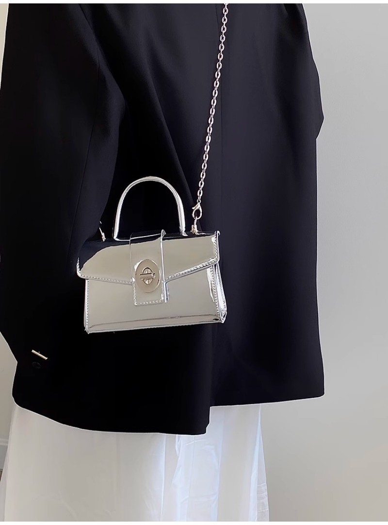Ielgy Ladies Patent Leather Silver Locomotive Small Square Bag Hot Girl Fashion All-Match One-Shoulder Messenger Bag