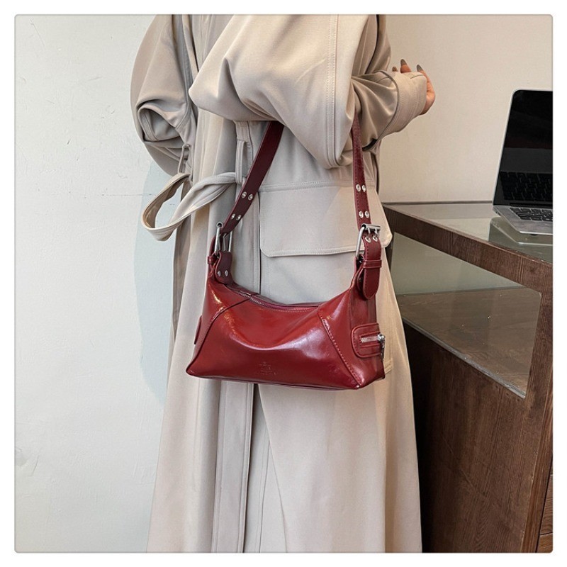 Ielgy Ladies Red High-End Feeling One-Shoulder Underarm Bag Cross-Body Commuter
