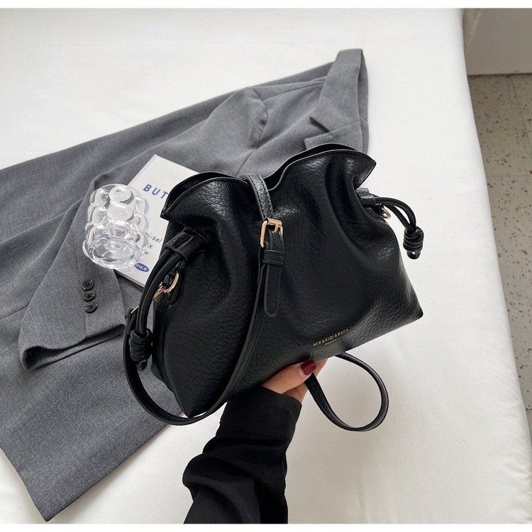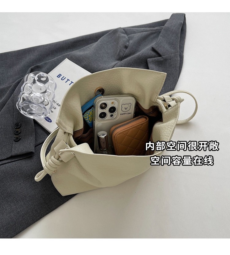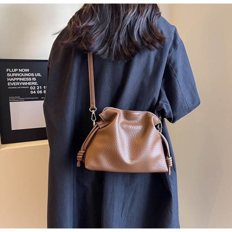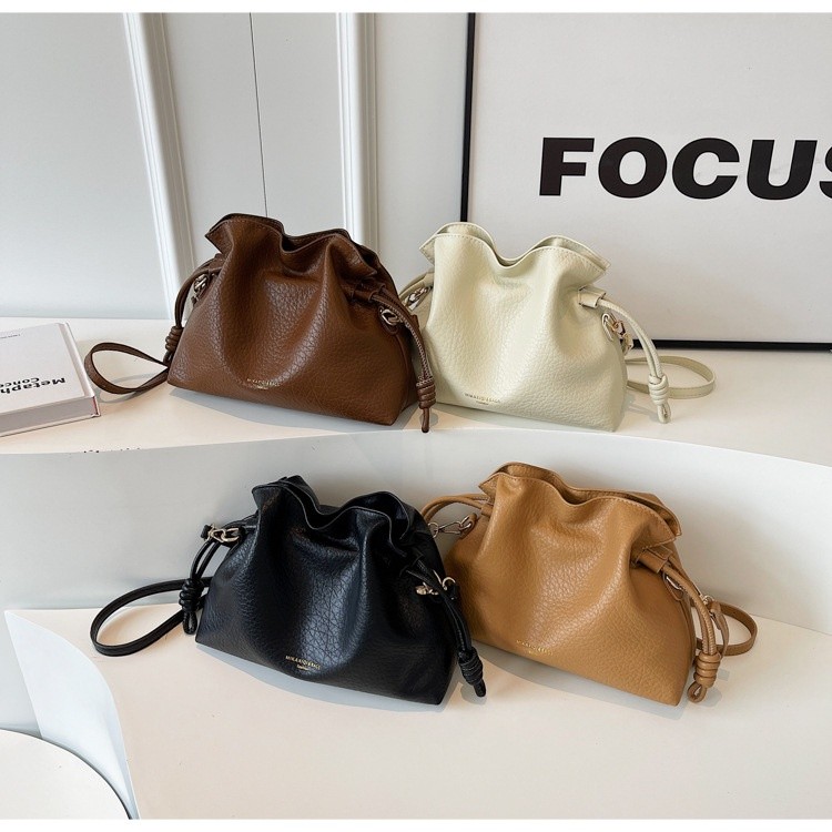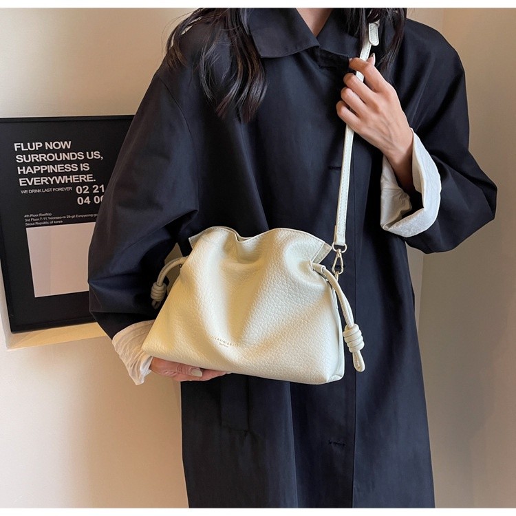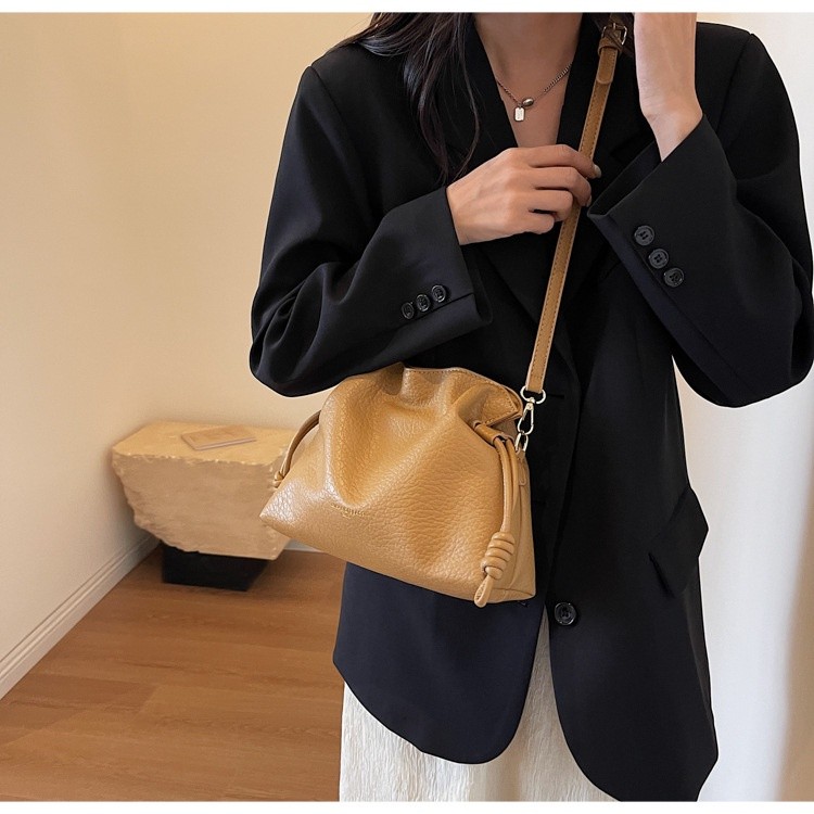 Ielgy Ladies Retro Fashion Pleated Cloud Bag Niche Texture Cross-body Bucket Bag