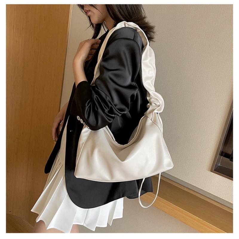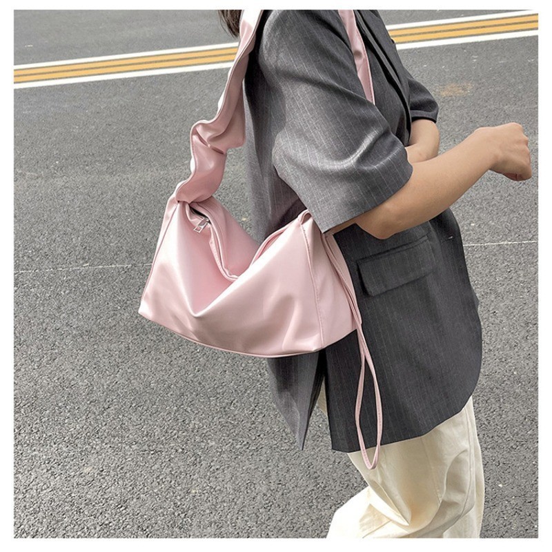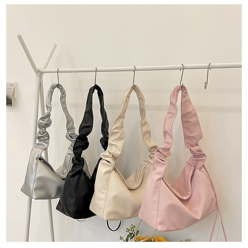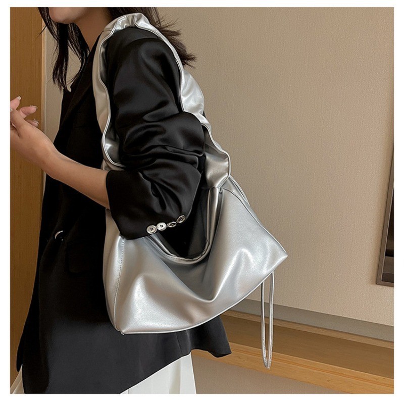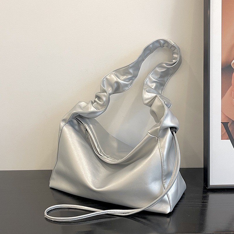 Ielgy Ladies Silver All-Match Underarm Cloud Bag Simple Pleated Fashionable One-Shoulder Dumpling Bag
