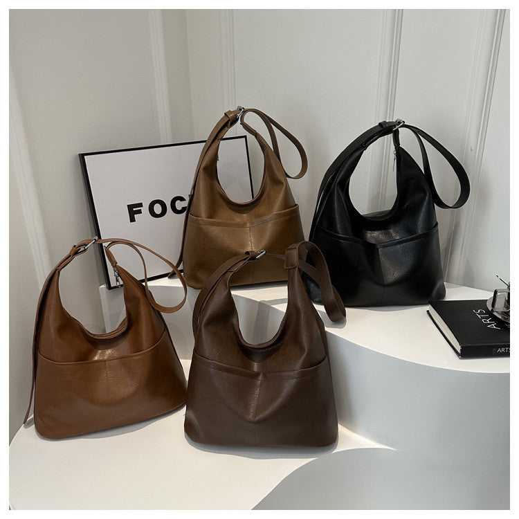 Ielgy Ladies Simple Commuter Underarm Bag Large Capacity Shoulder Tote Bag