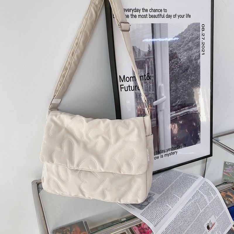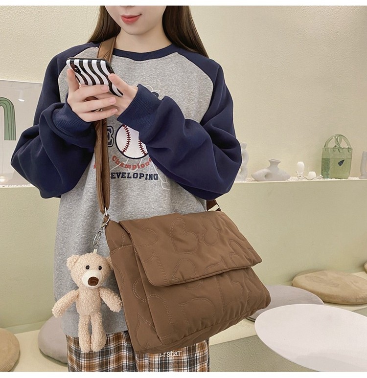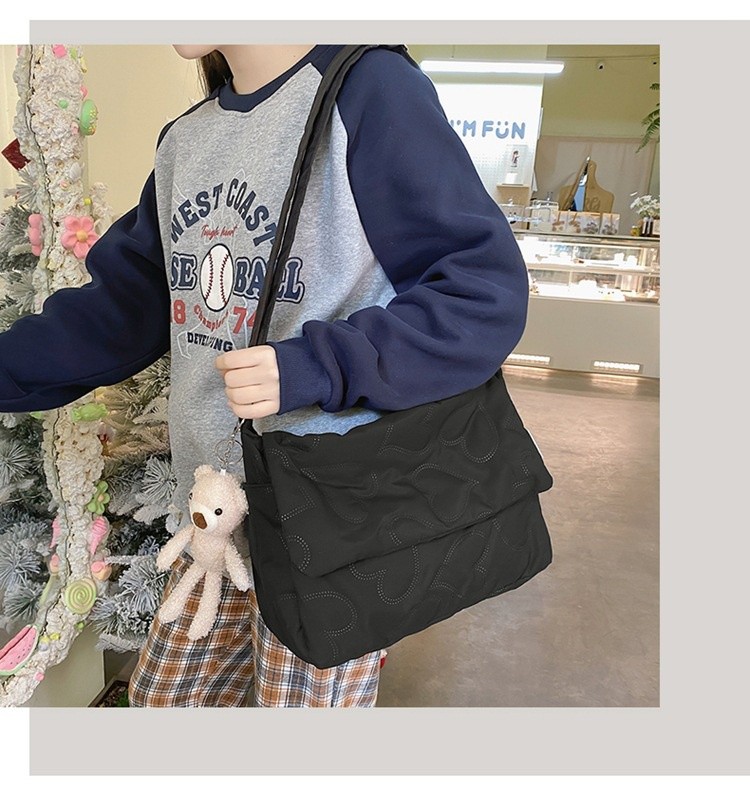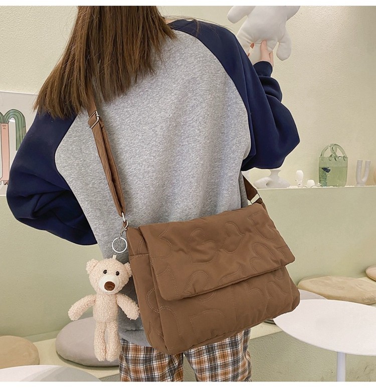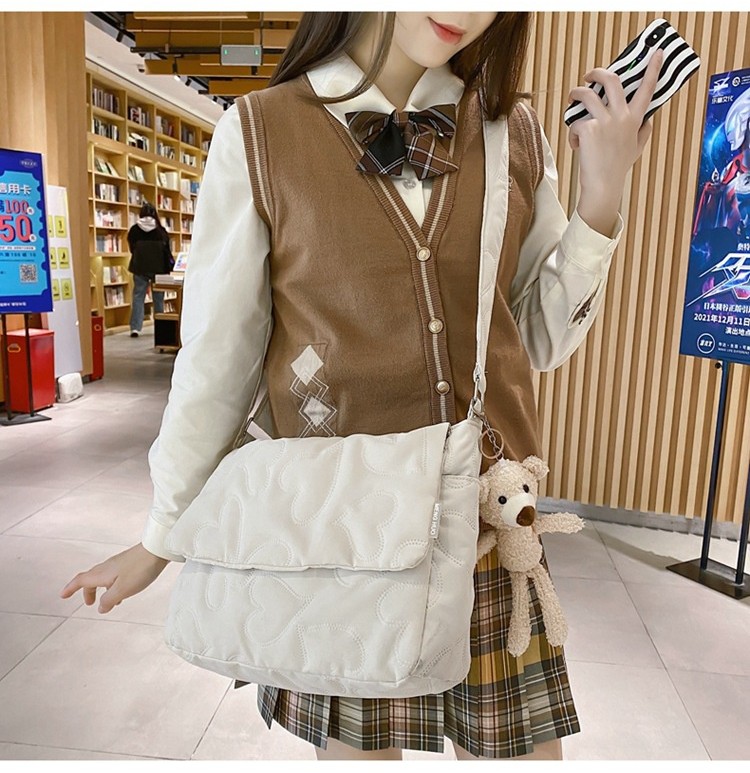 Ielgy Ladies Simple Rhombus Art Large-Capacity Fresh All-Match Messenger Bag (without Pendant)