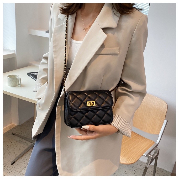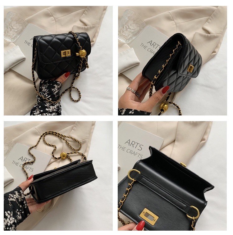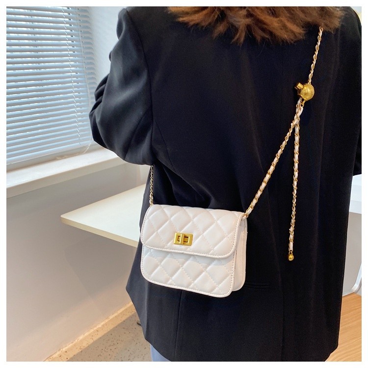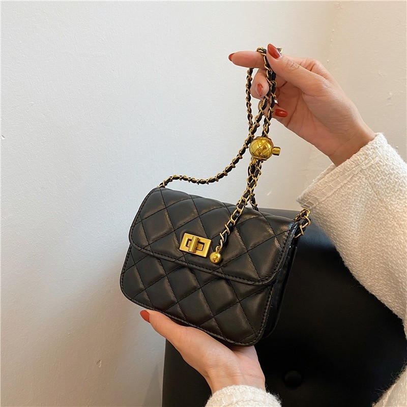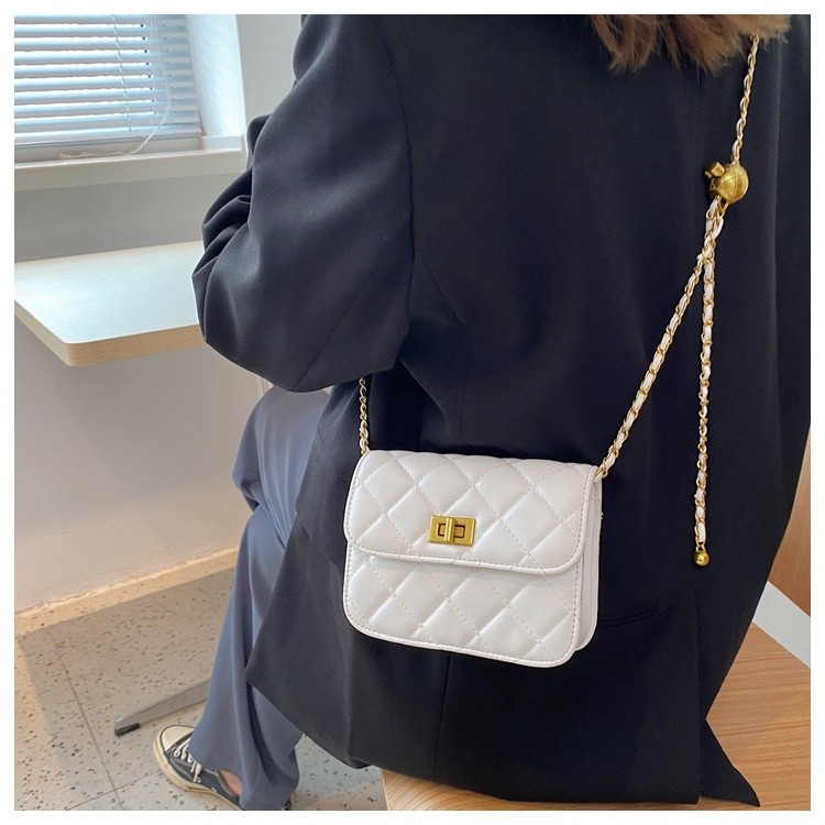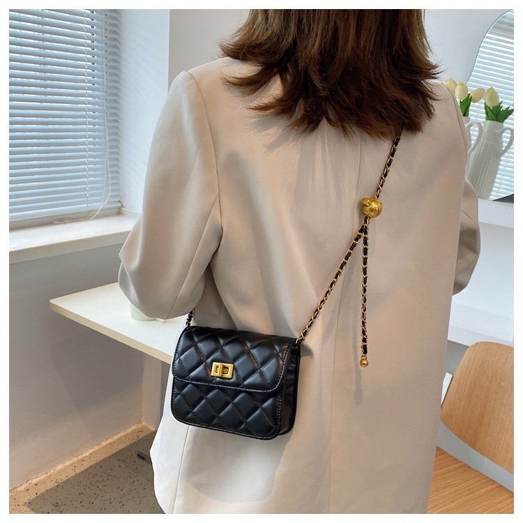 Ielgy Ladies Small Golden Ball Chain Small Square Bag Shoulder Fashion Trend Cross-body Mobile Phone Bag