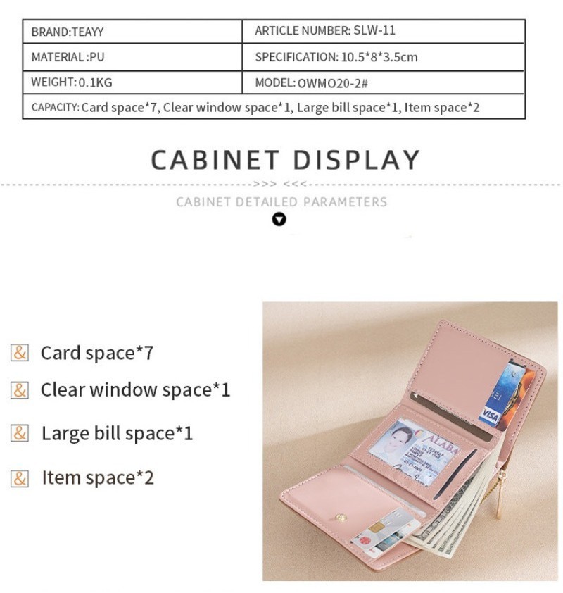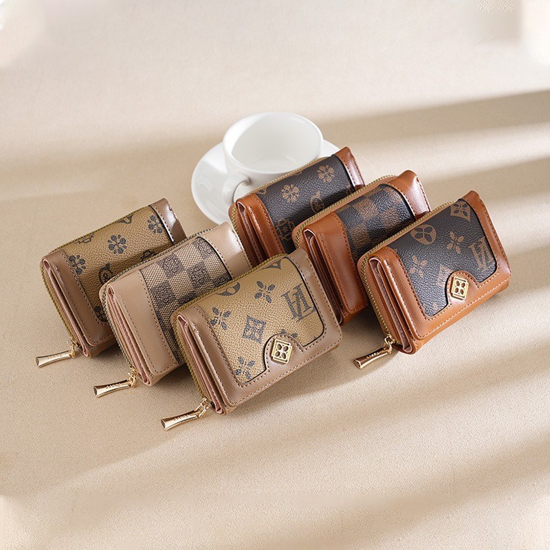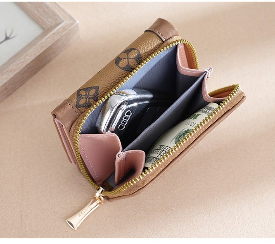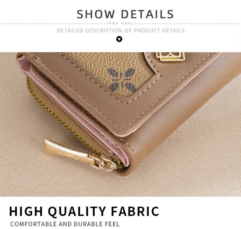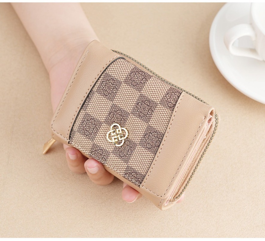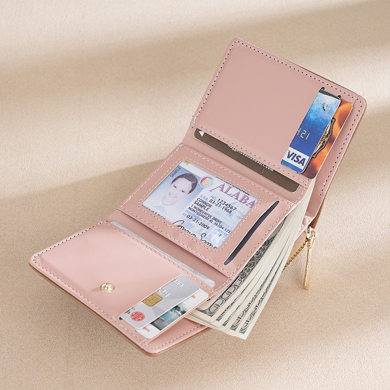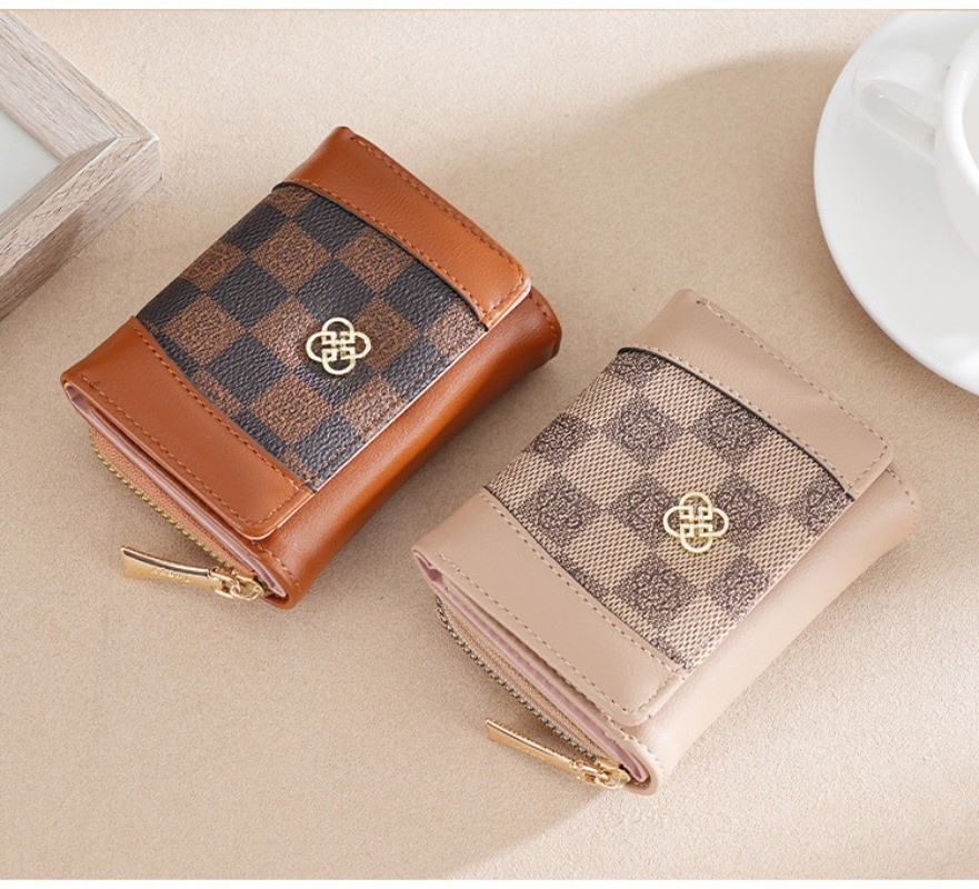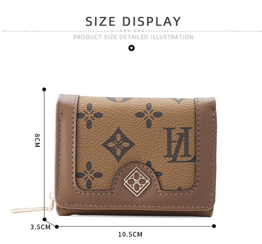 Ielgy Ladies Wallet Short Tri-Fold Card Holder All-Match Classic Presbyopic Coin Purse Fashion Small Wallet
