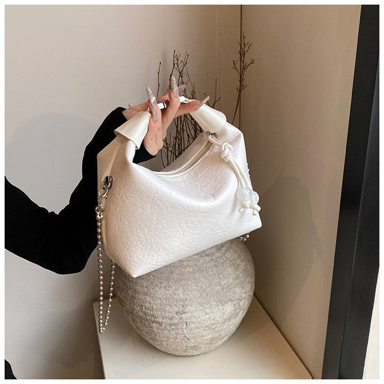 Ielgy Ladies White All-Match Shoulder Messenger Bag Niche Design Chain Small Shoulder Bag