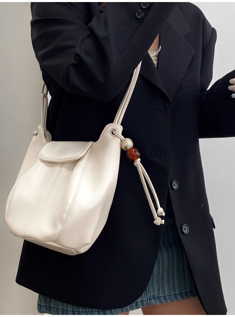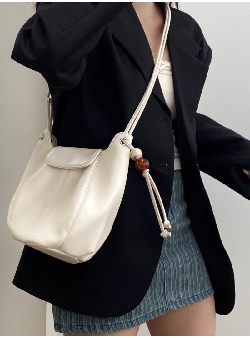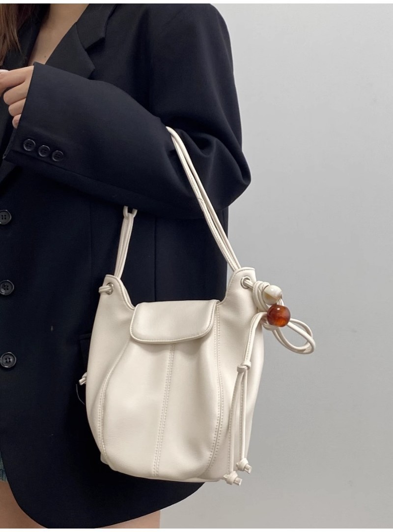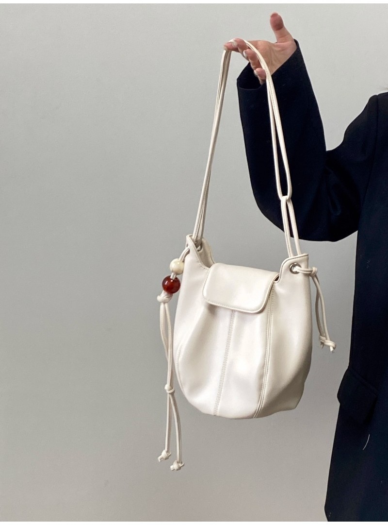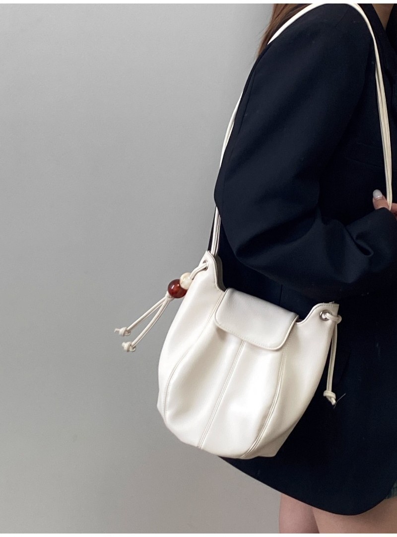 Ielgy Ladies White Simple All-Match Preppy Style High-End Bucket Shoulder Messenger Bag